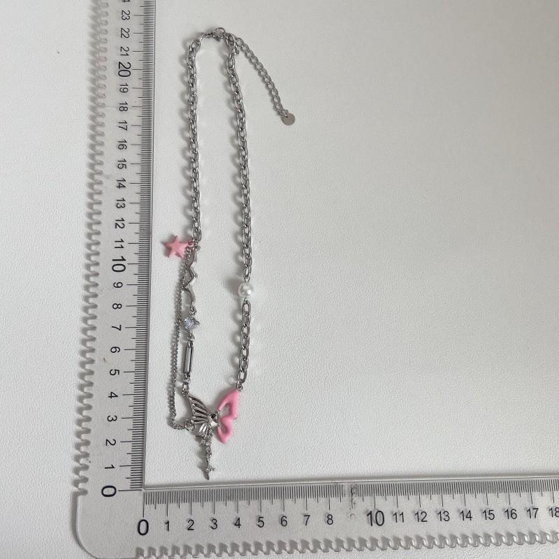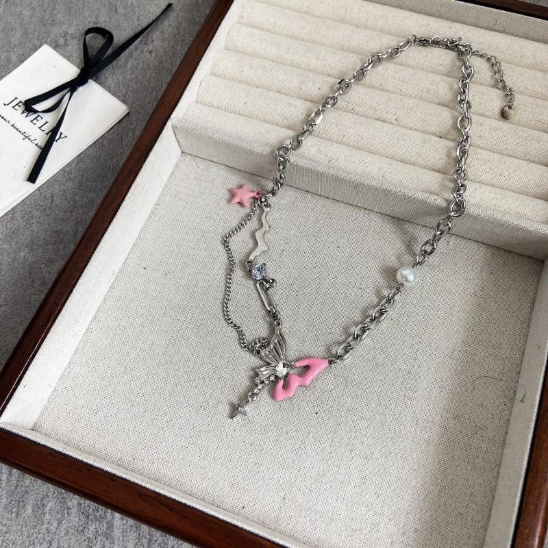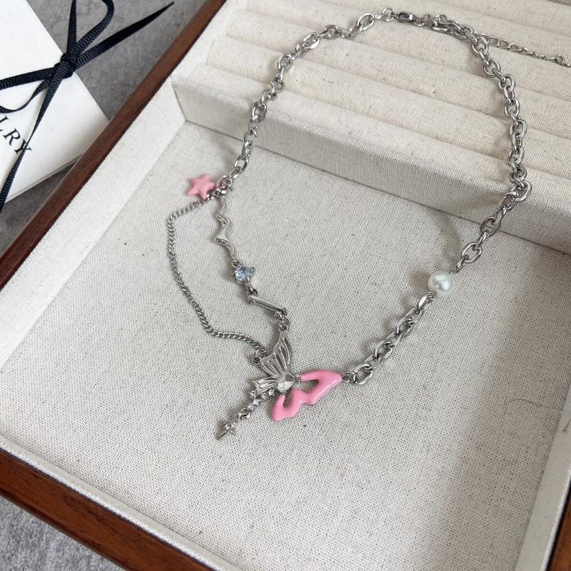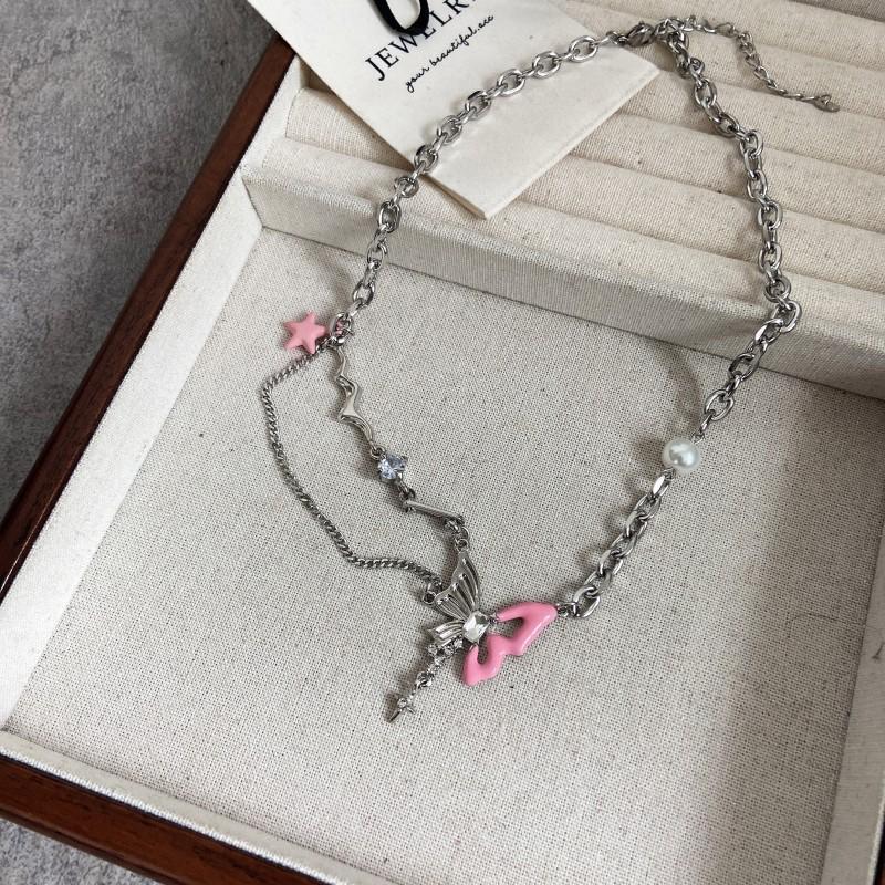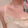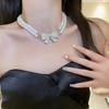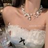 Collar de alta calidad con cadena de clavícula, cadena de perlas, estrella, lazo de diamantes y moda moderna y fresca para mujer.
