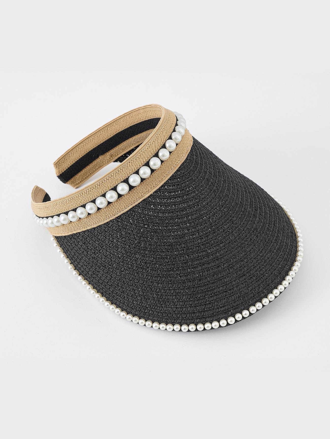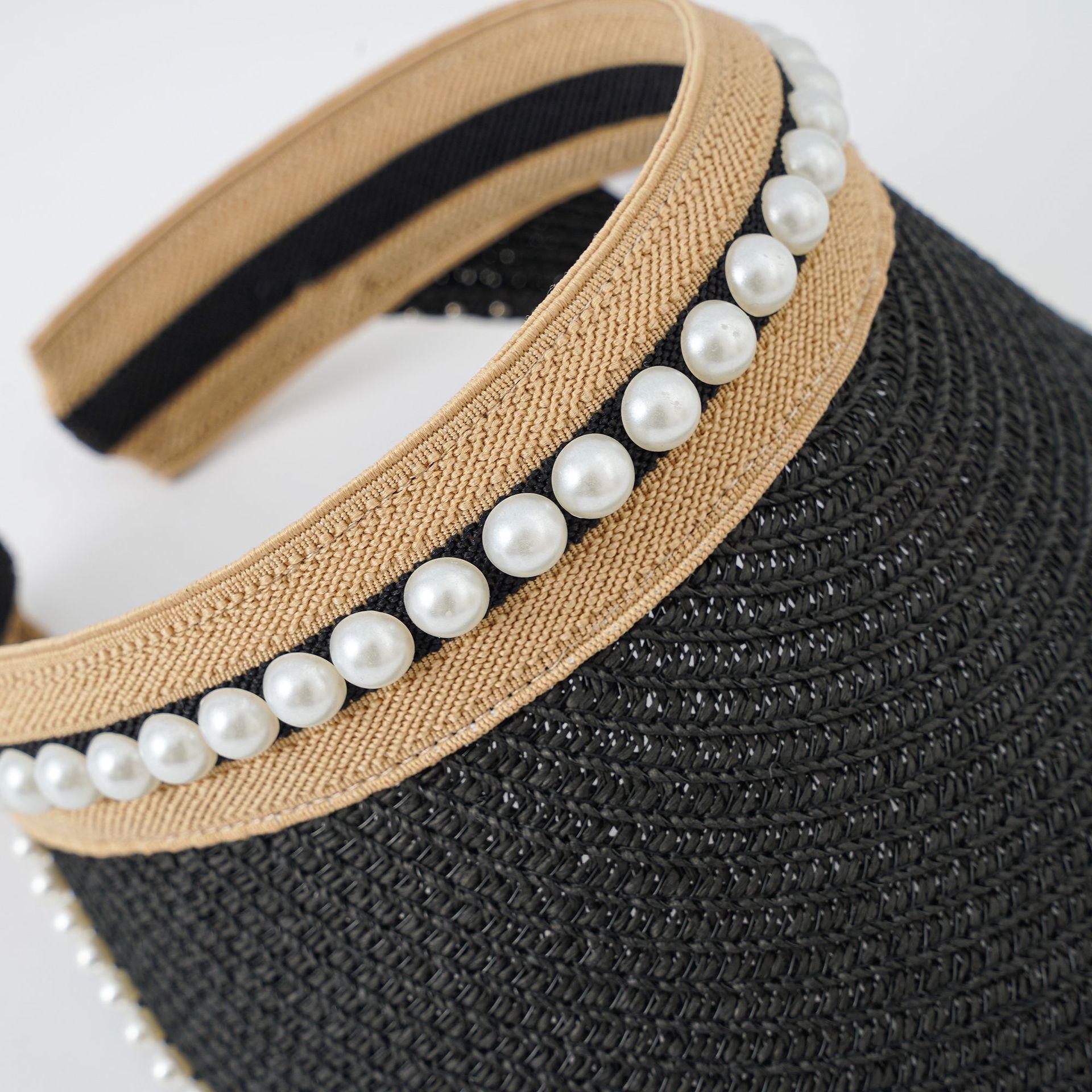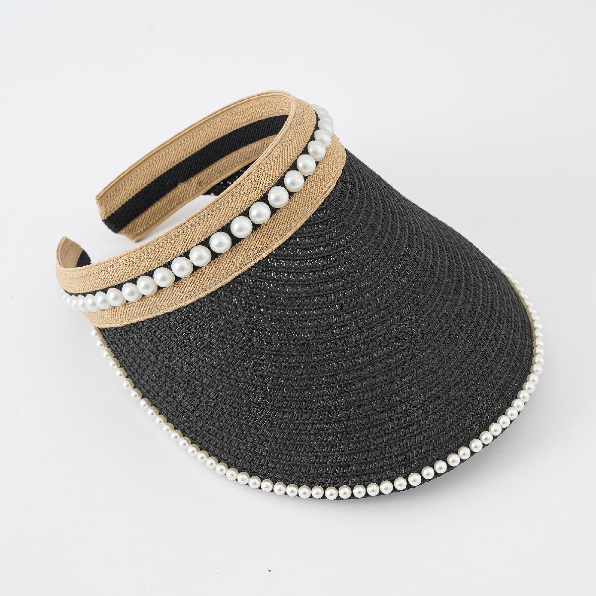 Sombrero de paja con parte superior vacía y perla popular en Internet para mujer, sombrilla de verano, protector solar, sombrero de playa de moda, diadema de ala grande, sombrero para el sol de moda