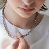 Platinum: bead + wave pattern metal necklace
