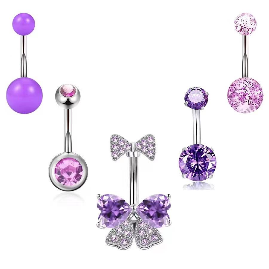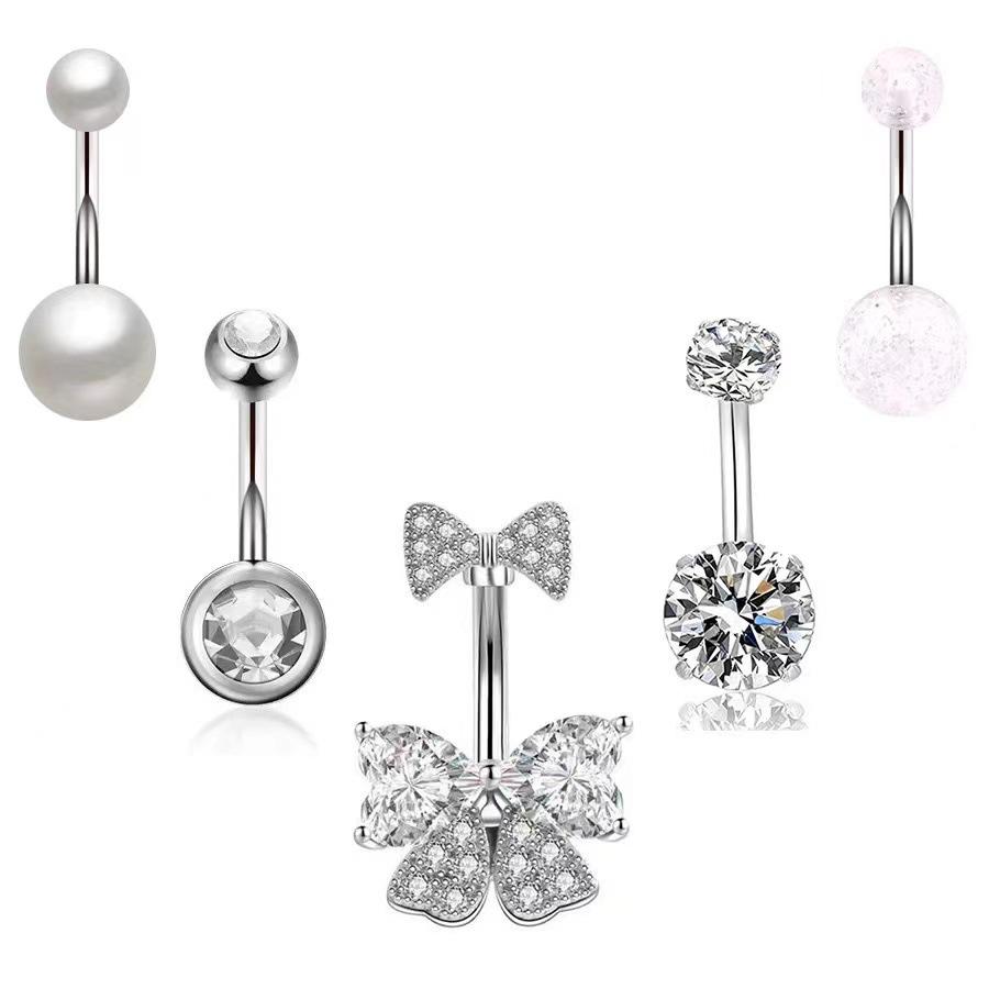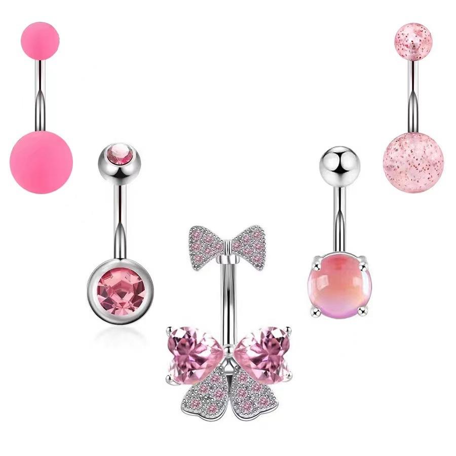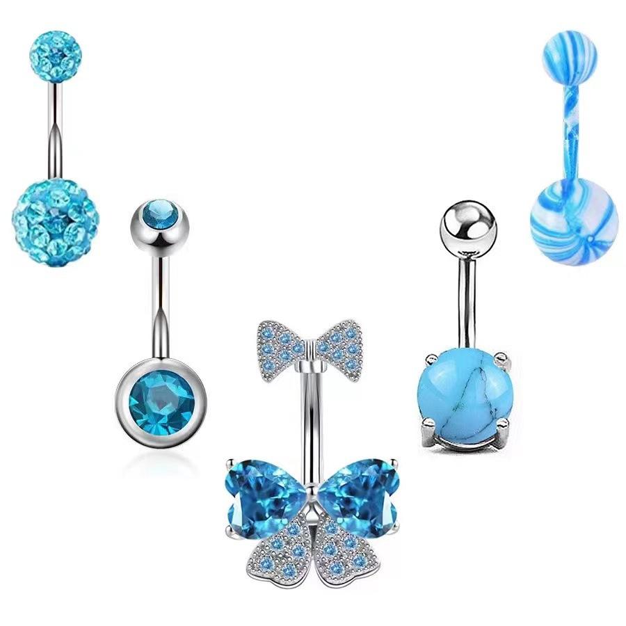 Juego de 5 anillos para el ombligo tipo lazo, con personalidad europea y americana, joyería para el ombligo con perforación transfronteriza, venta al por mayor.