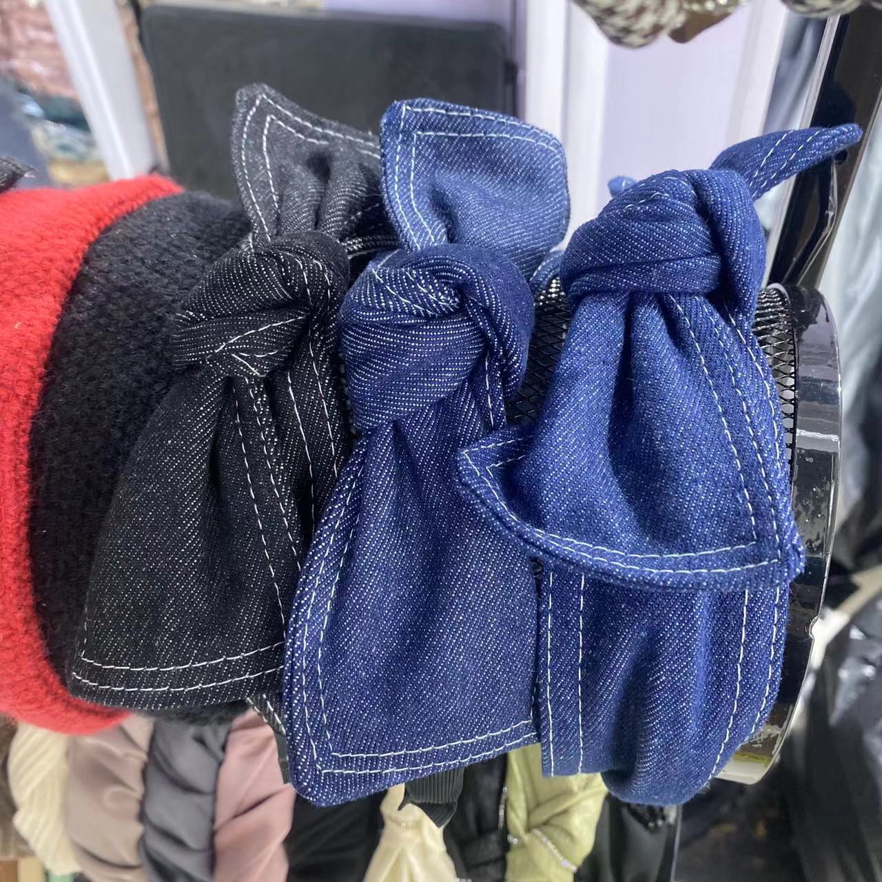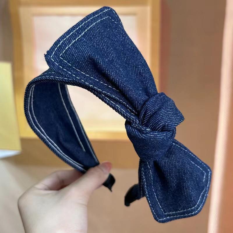 Diadema con lazo para mujer, diadema de mezclilla de ala ancha, diadema para lavar la cara, horquilla de celebridad de Internet, tocado, coleta para el cabello, simple, Corea del Sur, combina con todo, para salir