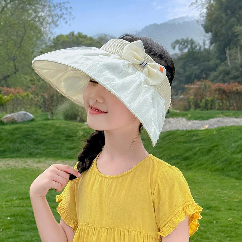 Sombrero de verano nuevo con protección solar, resistente a los rayos UV, de doble propósito, con alero grande y parte superior vacía, para mujer, bebé, de viaje, con dibujos animados, con forma de concha
