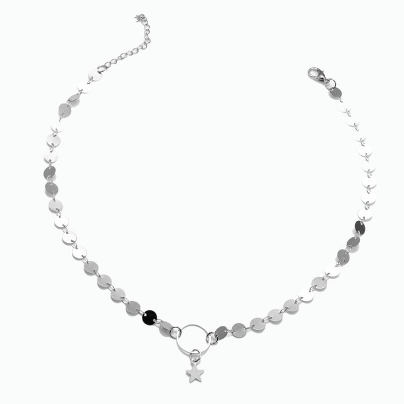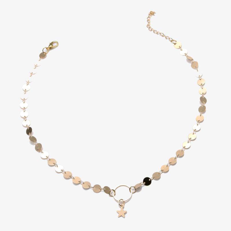 Collar de temperamento frío para damas, joyería transfronteriza europea y americana, cadena simple hecha a mano con lentejuelas y estrella de cinco puntas.