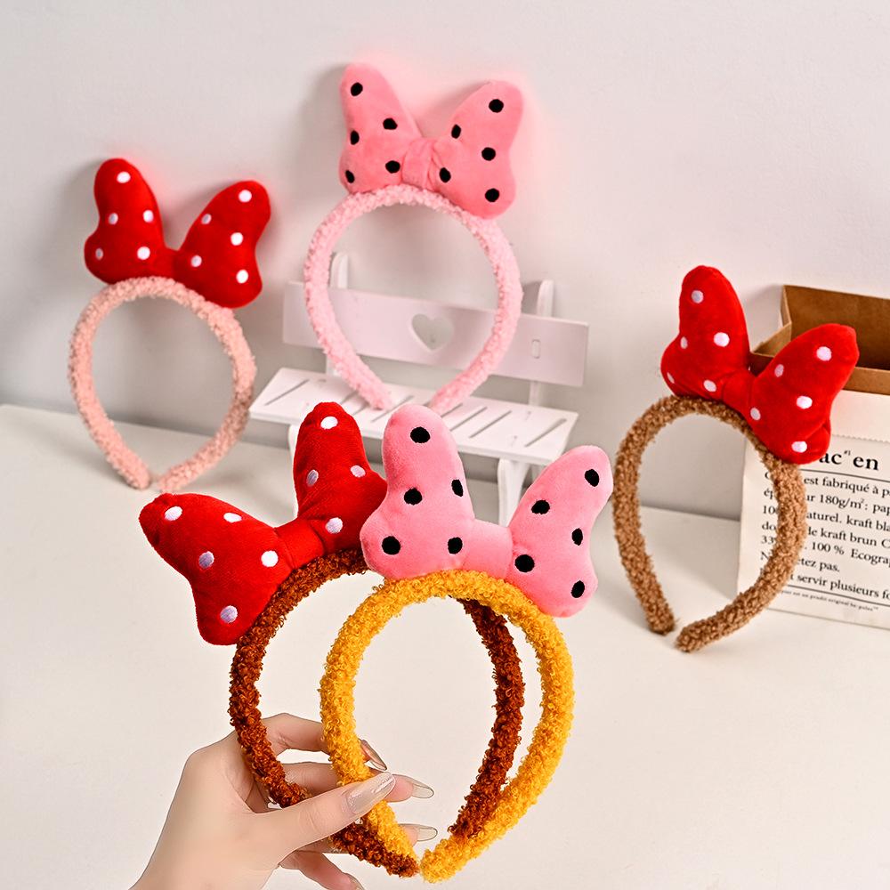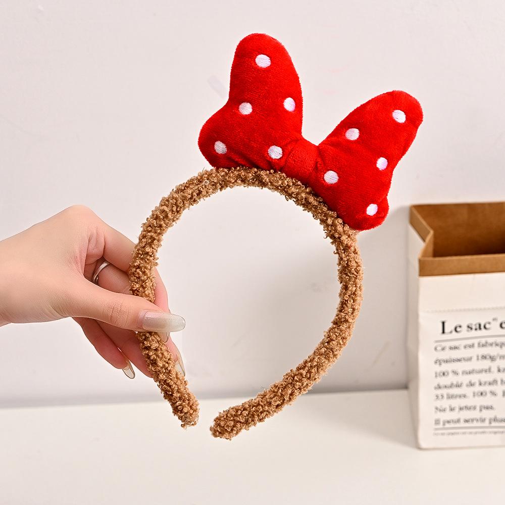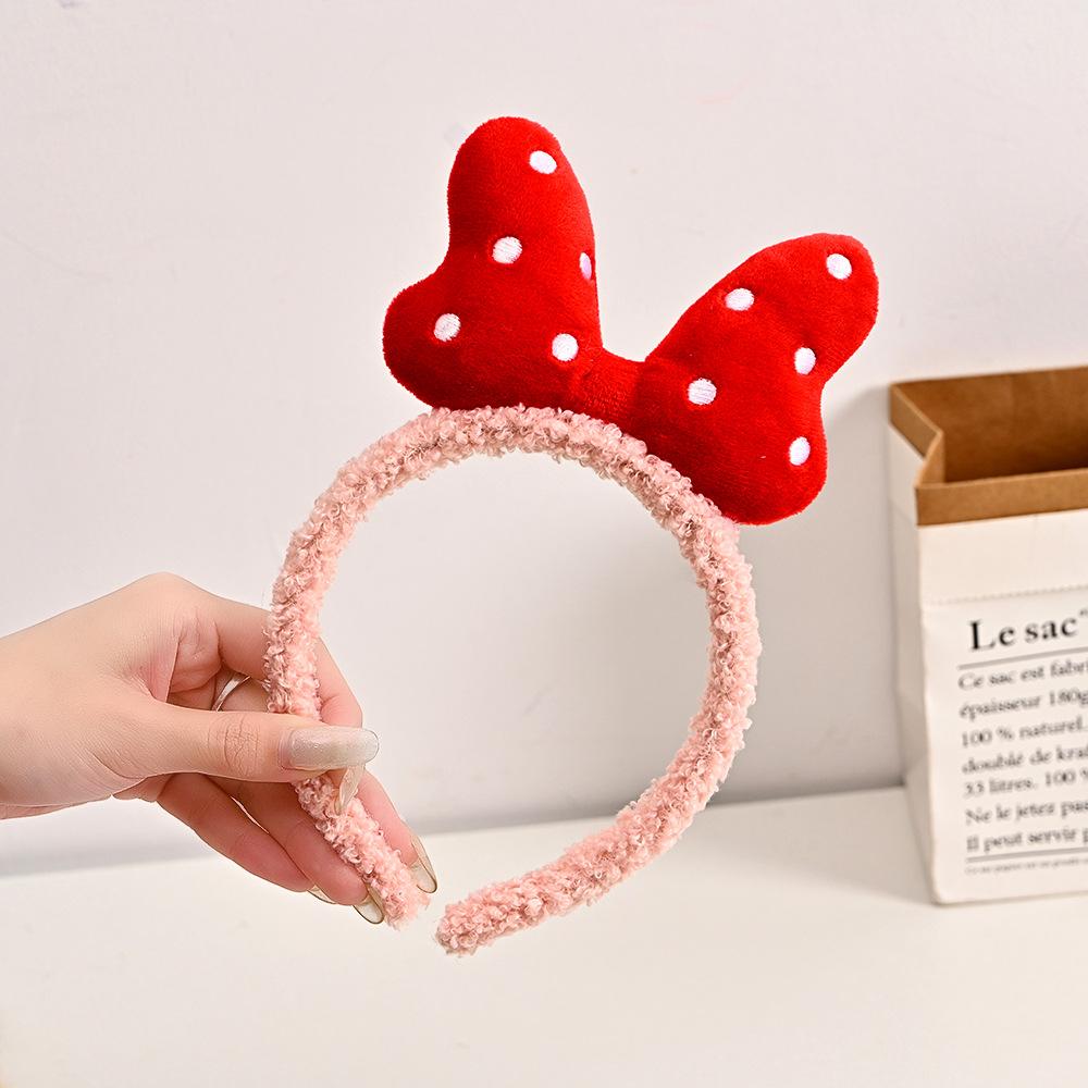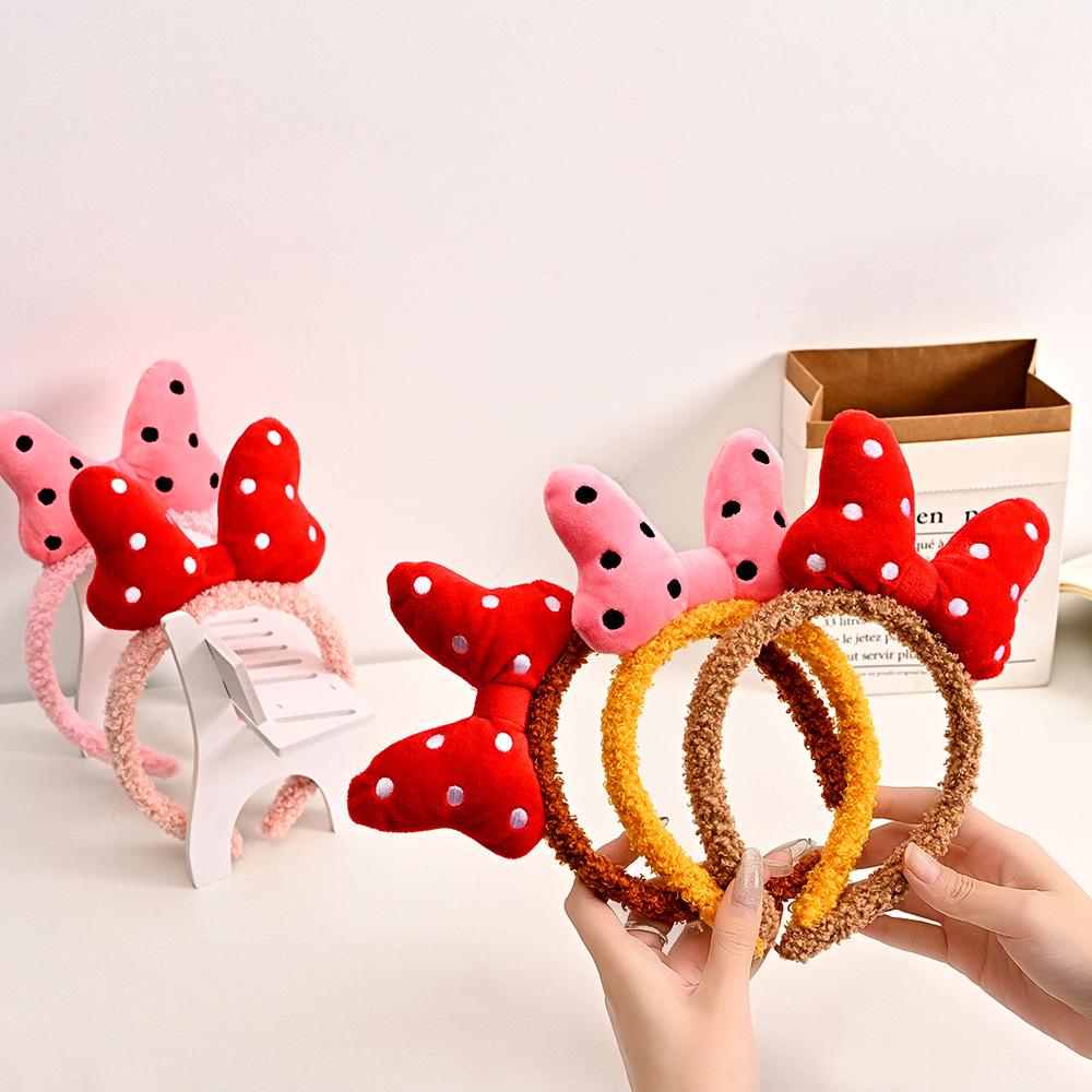 Diadema con lazo rojo de lunares de celebridades de Internet, maquillaje coreano, lavado de cara, anillo para el cabello, banda para el cabello de felpa de moda para mujeres.