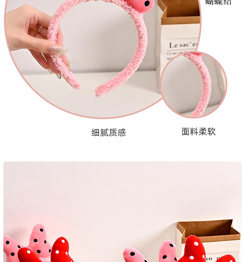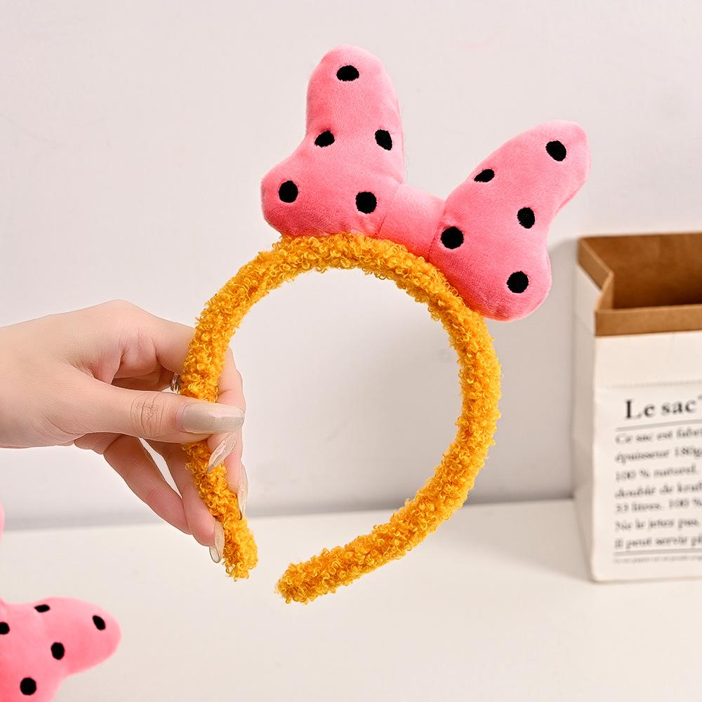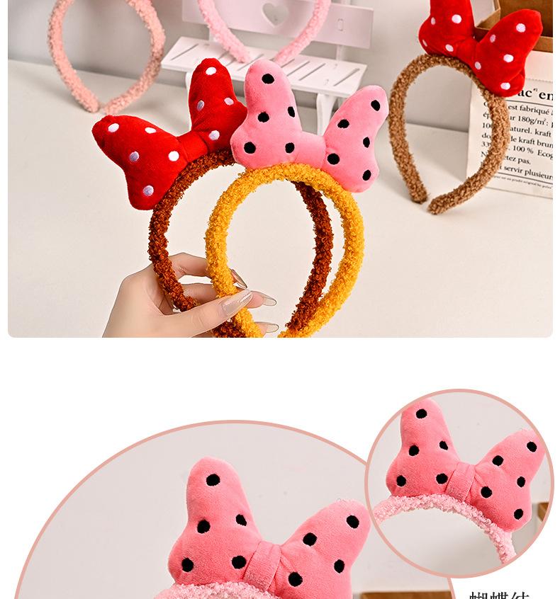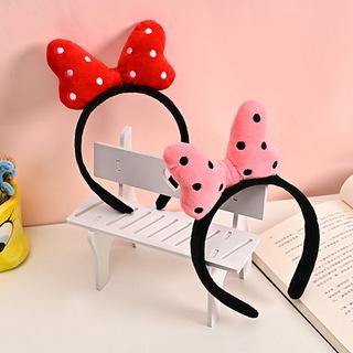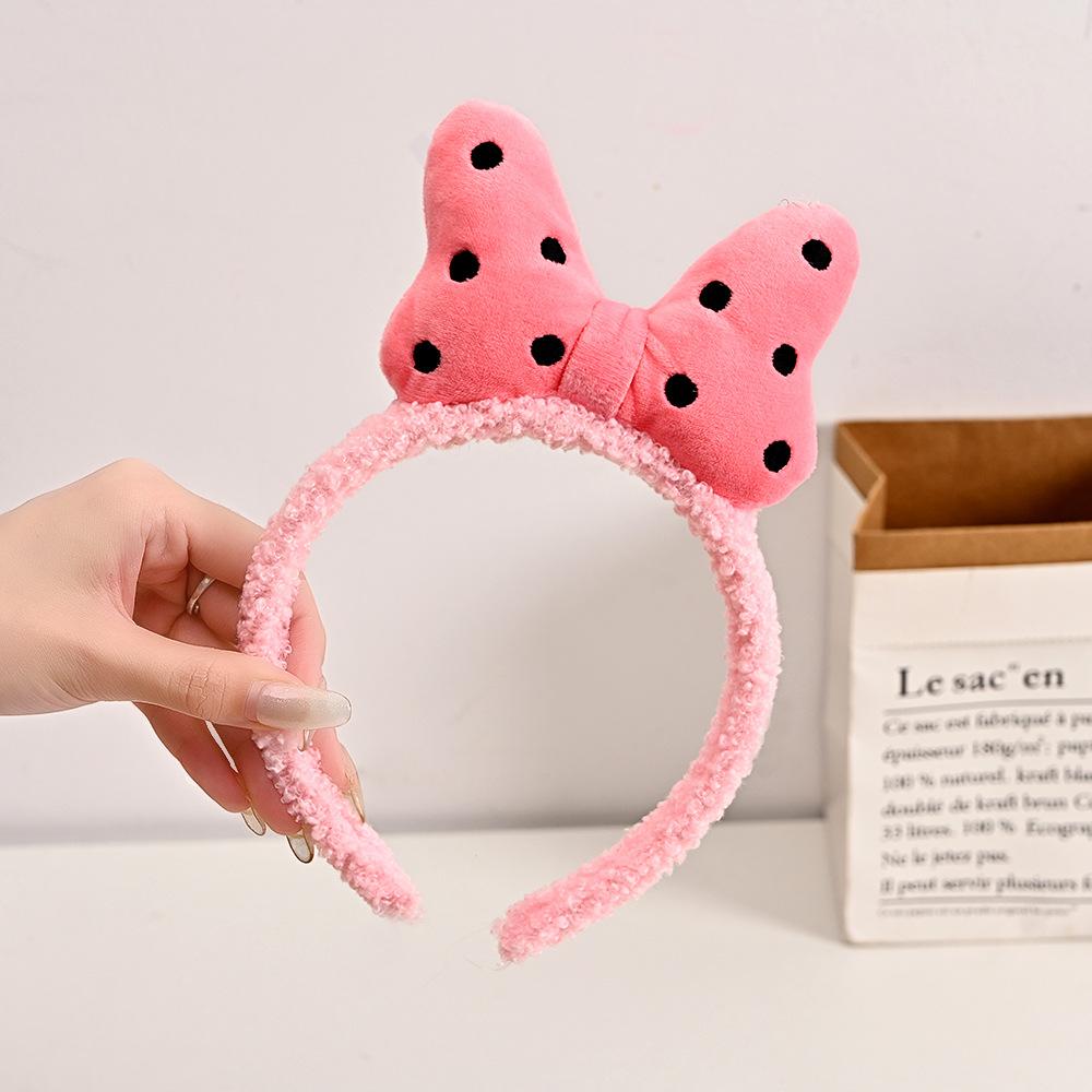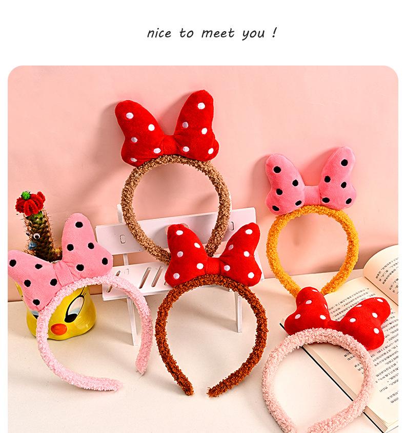 Diadema con lazo rojo de lunares de celebridades de Internet, maquillaje coreano, lavado de cara, anillo para el cabello, banda para el cabello de felpa de moda para mujeres.