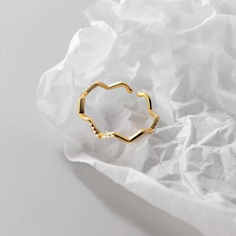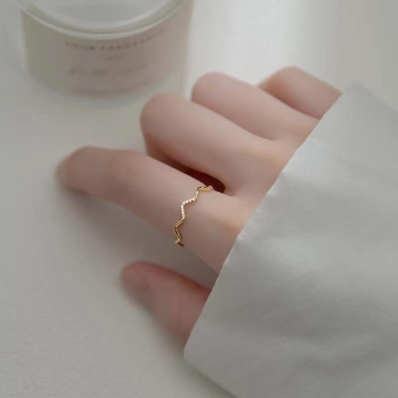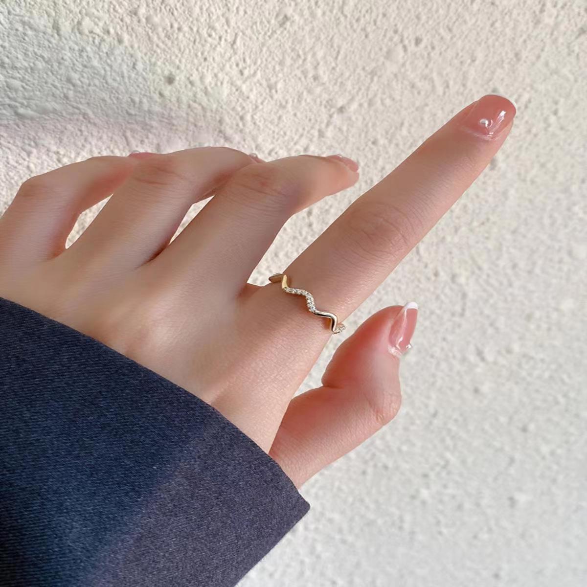 Anillo de onda para mujer, diseño de nicho, anillo de dedo con estilo frío moderno, anillo abierto, ajustable, personalidad de moda, dedo.