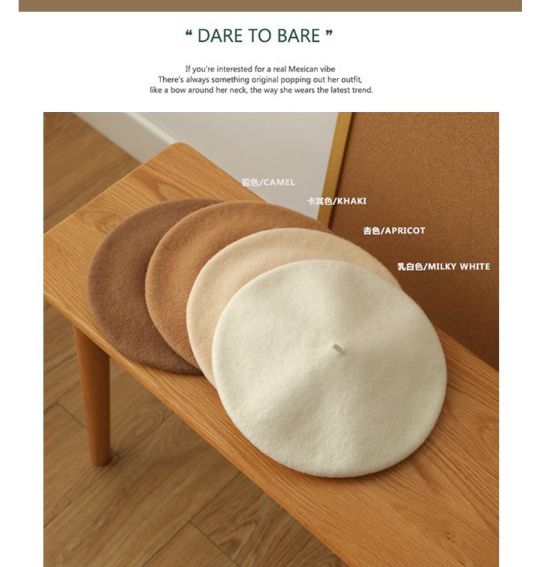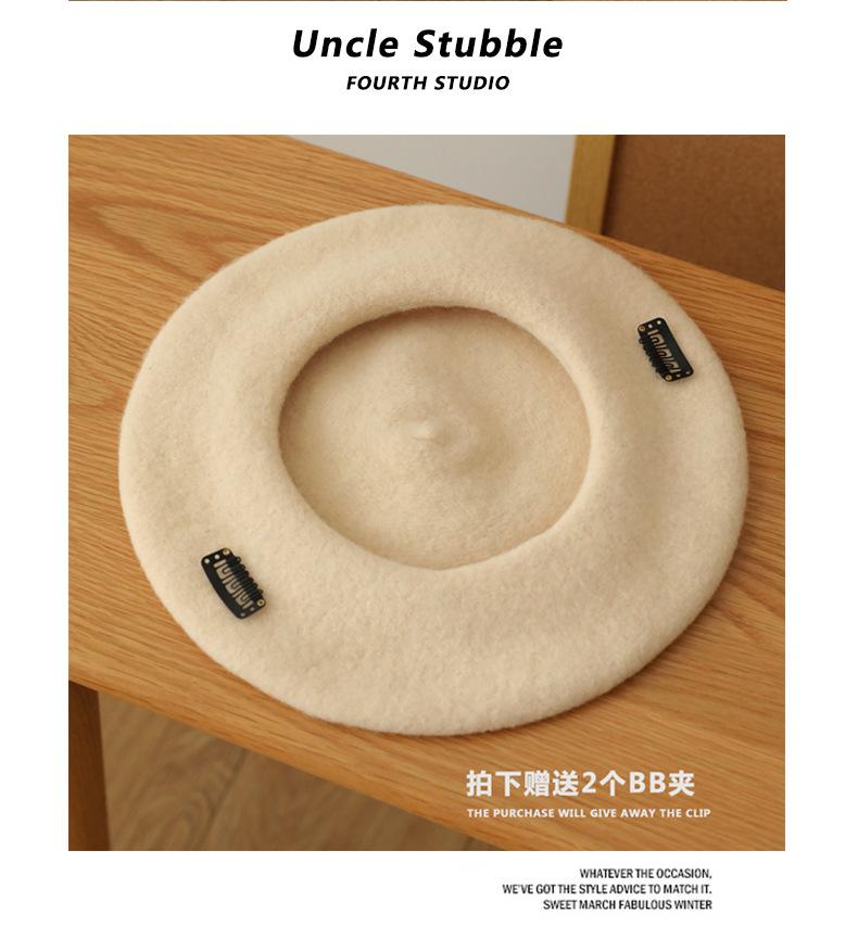 Boina de lana de color liso/estilo running para niña, boina versátil de invierno, sombrero de pintor retro artístico de estilo japonés