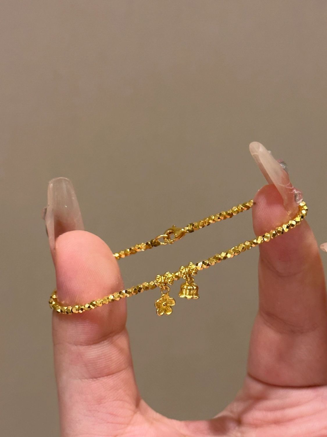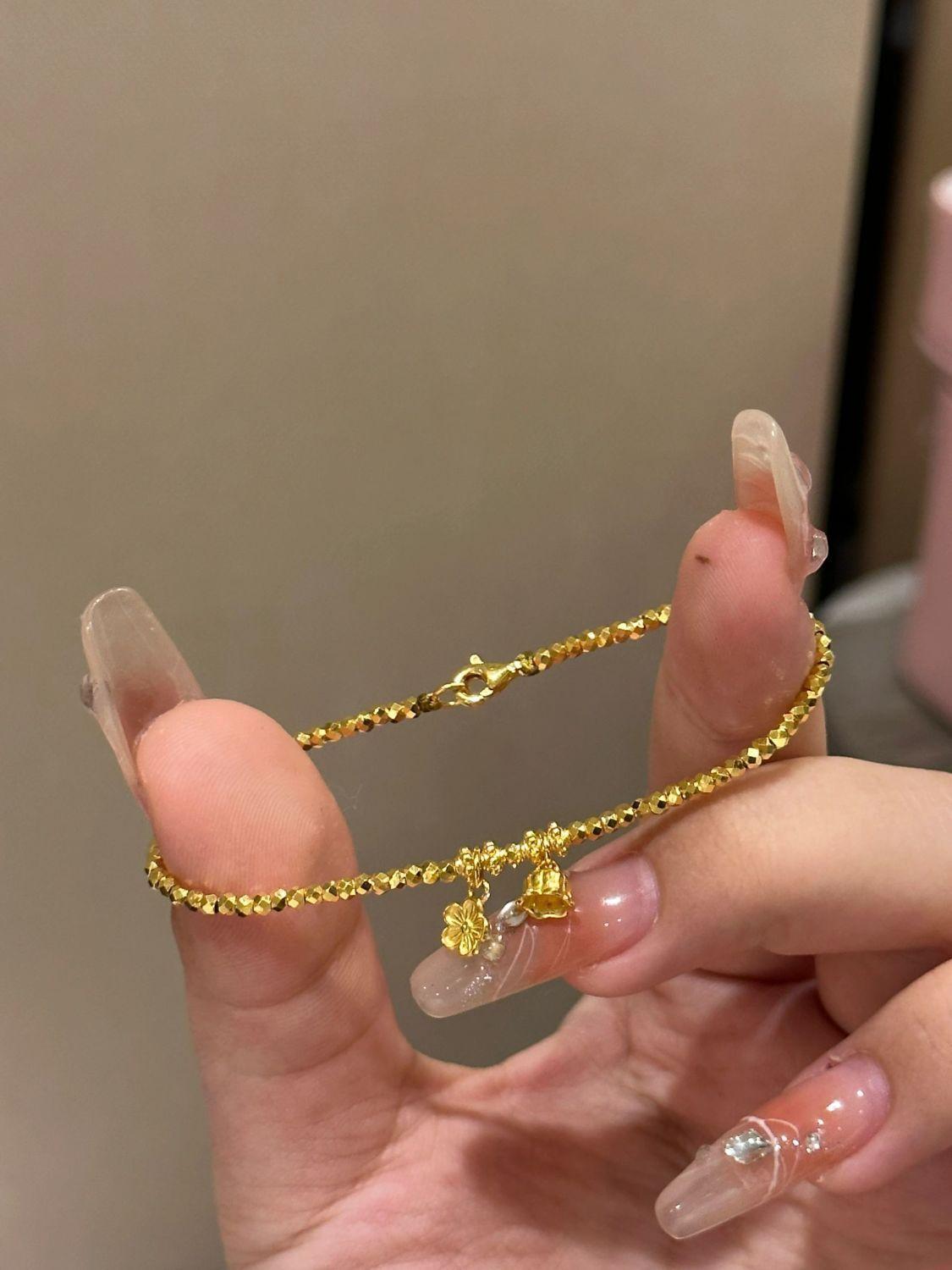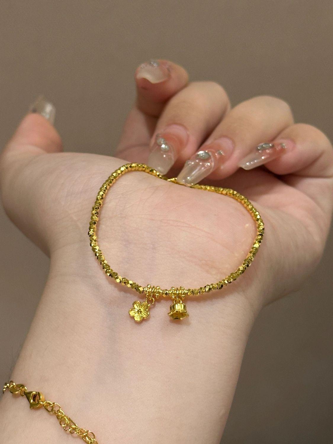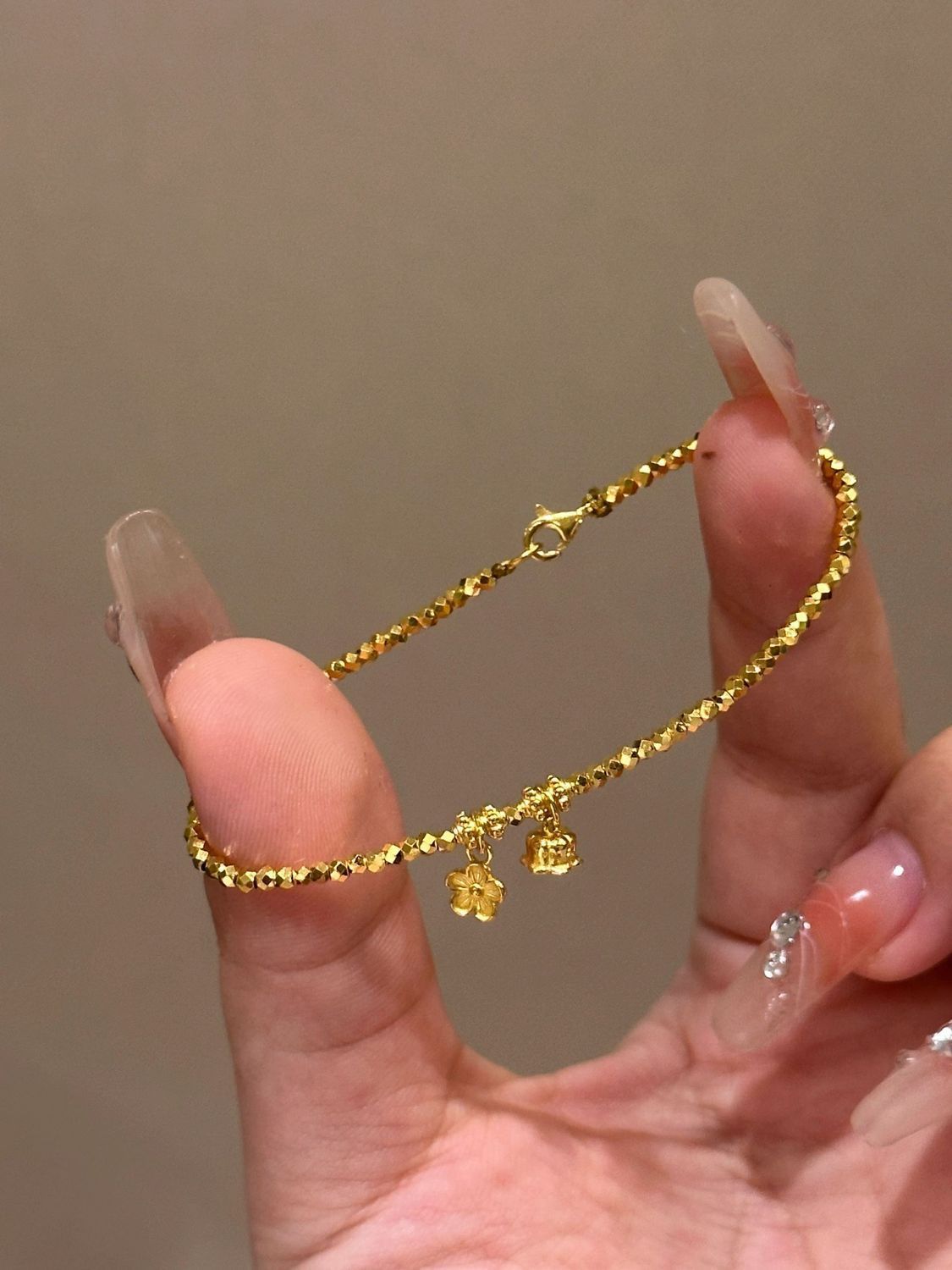 Pulsera dorada de flor pequeña campana bola de discoteca femenina diseño nicho ins de alta gama lujo ligero combinable regalo Qixi