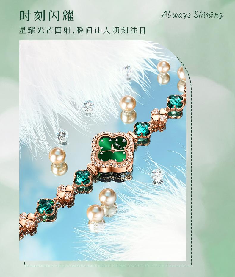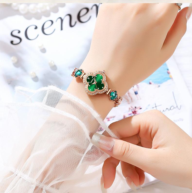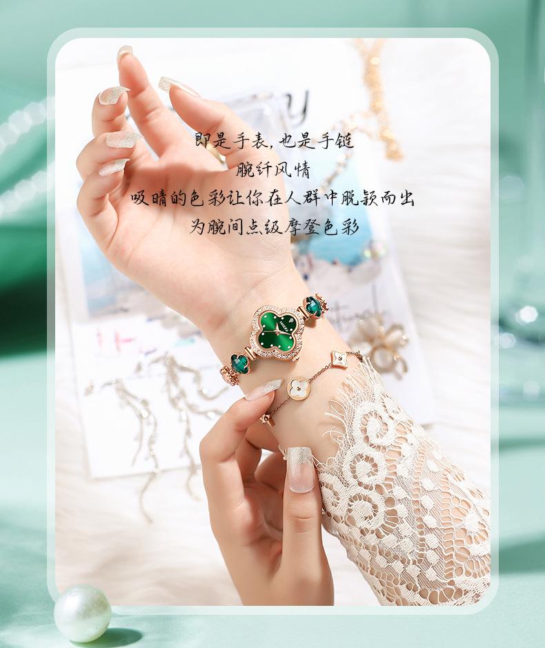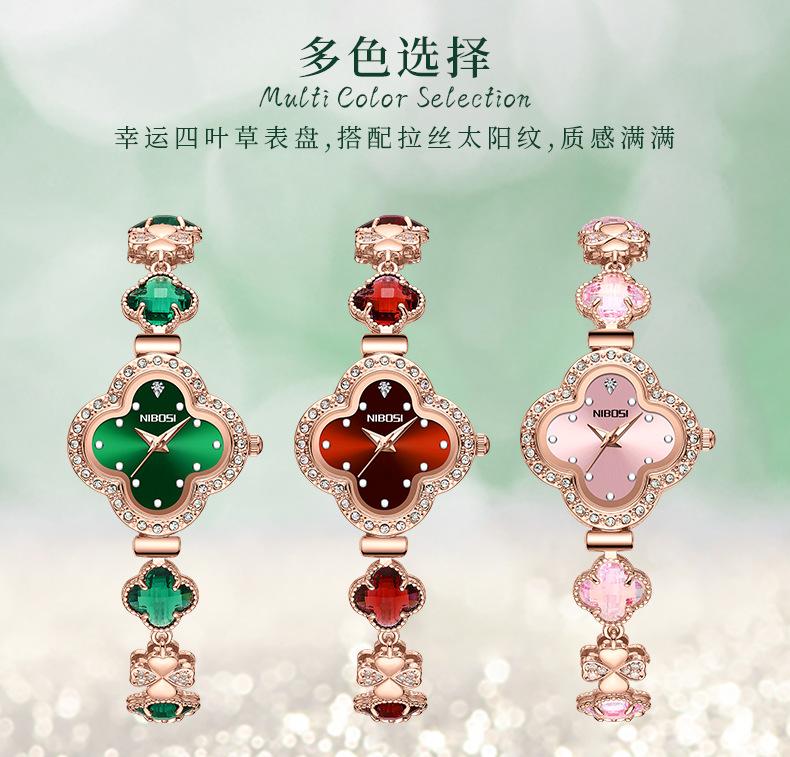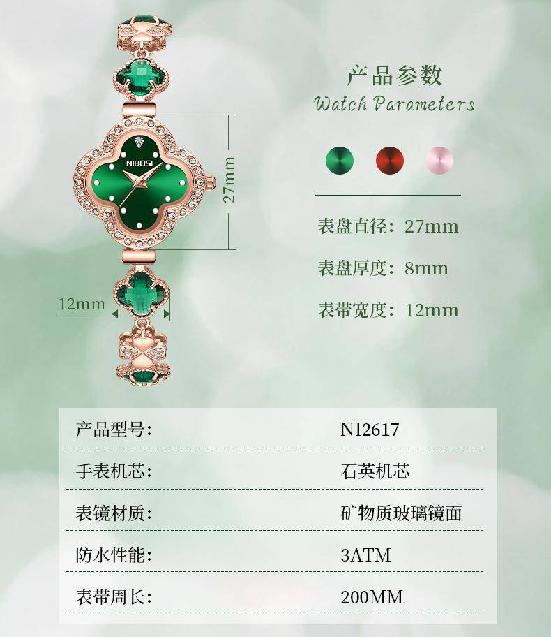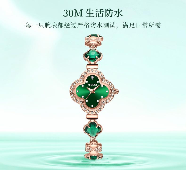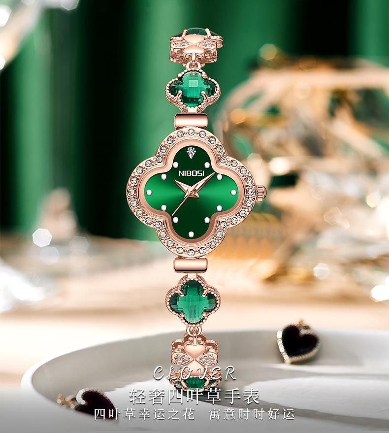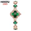Reloj de dama nibosi sudamérica soporte autorizado trébol de cuatro hojas reloj pequeño verde placa de piedra esmeralda reloj de mujer