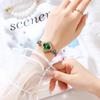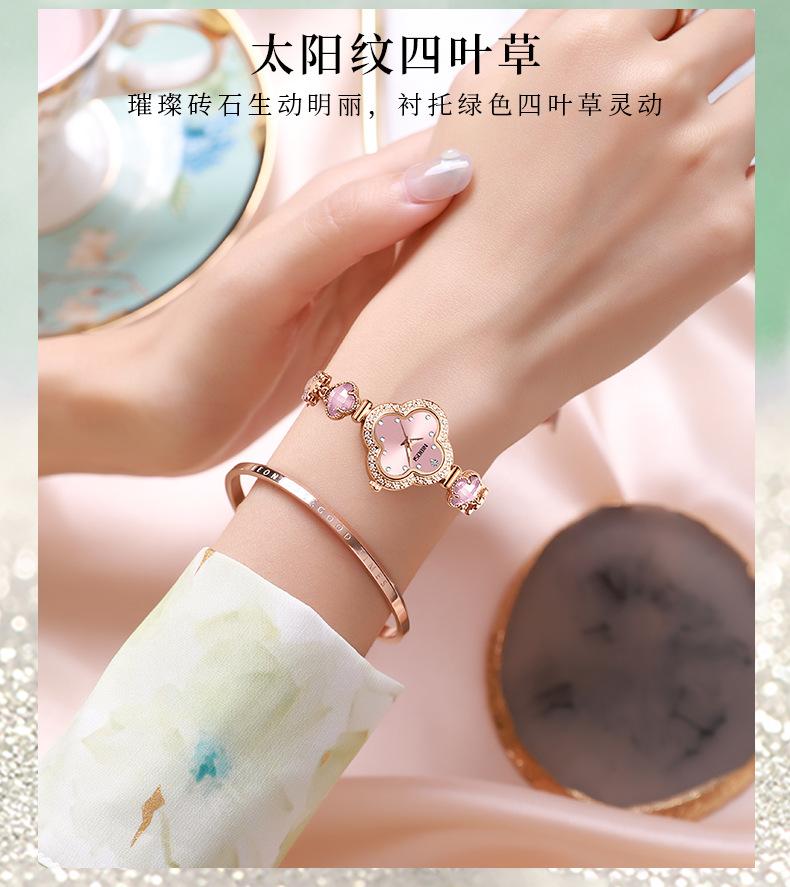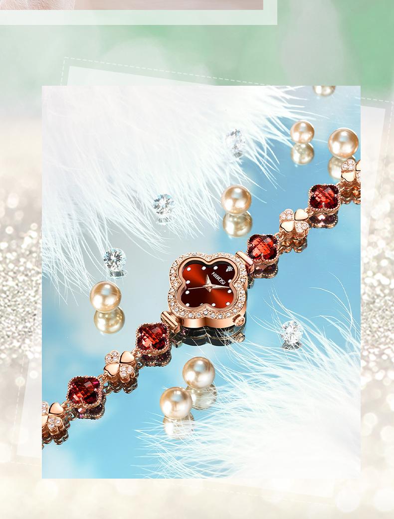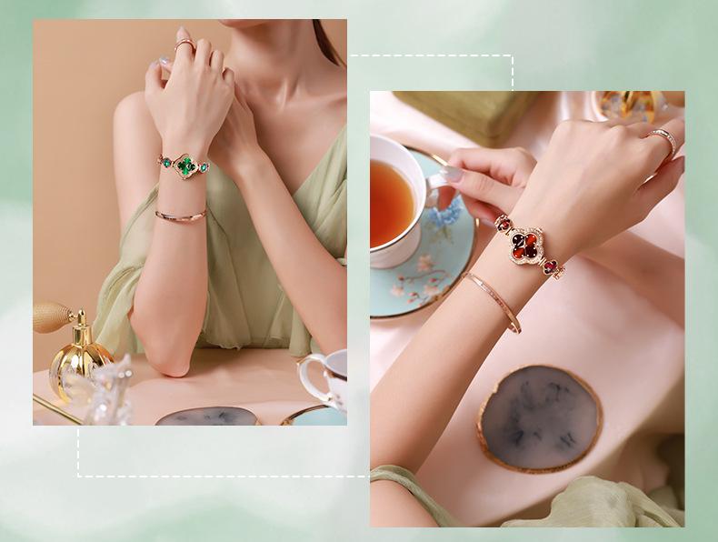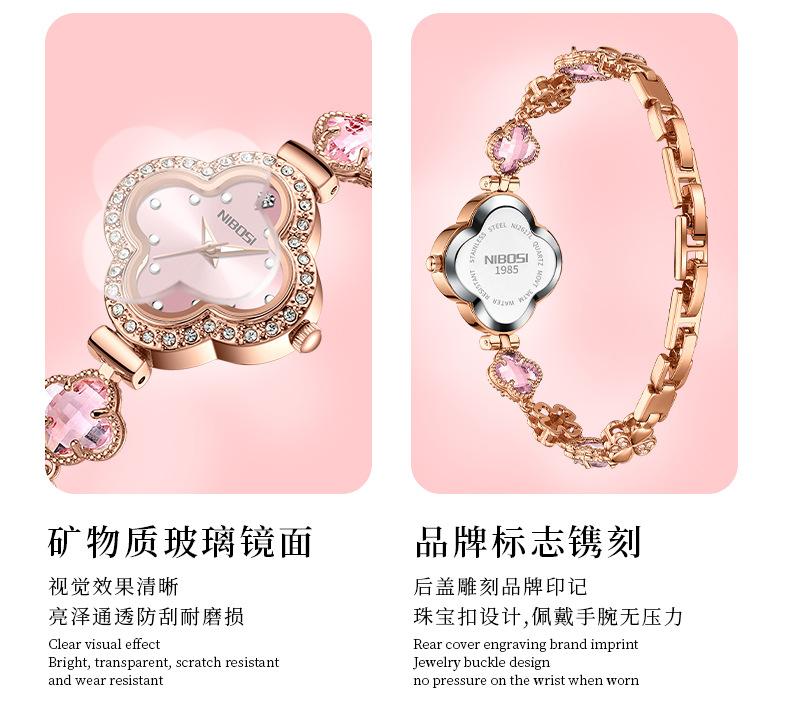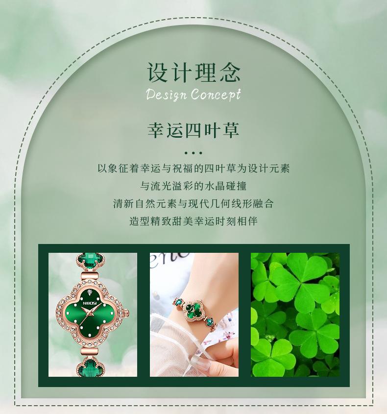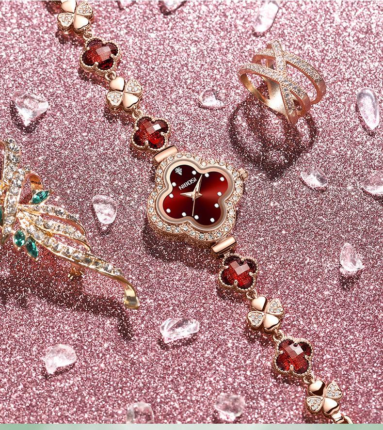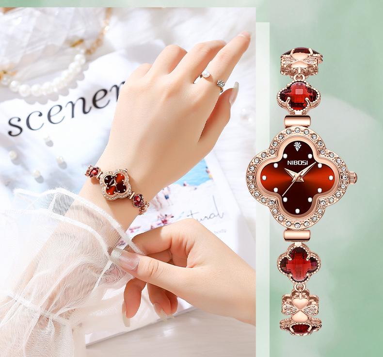 Reloj de dama nibosi sudamérica soporte autorizado trébol de cuatro hojas reloj pequeño verde placa de piedra esmeralda reloj de mujer