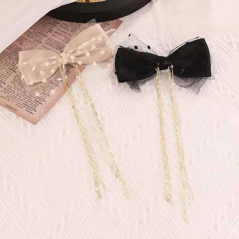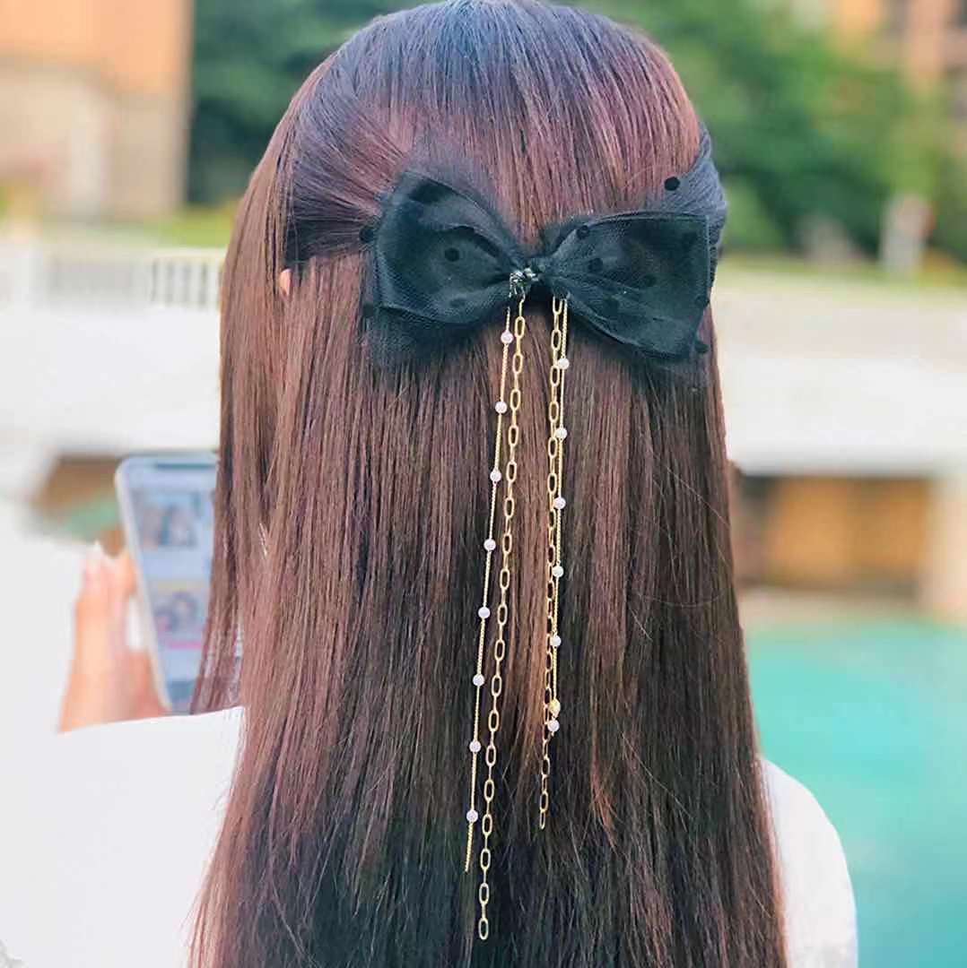2021 nuevos accesorios elegantes para el cabello de celebridades en línea con clip lateral, borla de perla, lazo de malla, horquilla, tocado