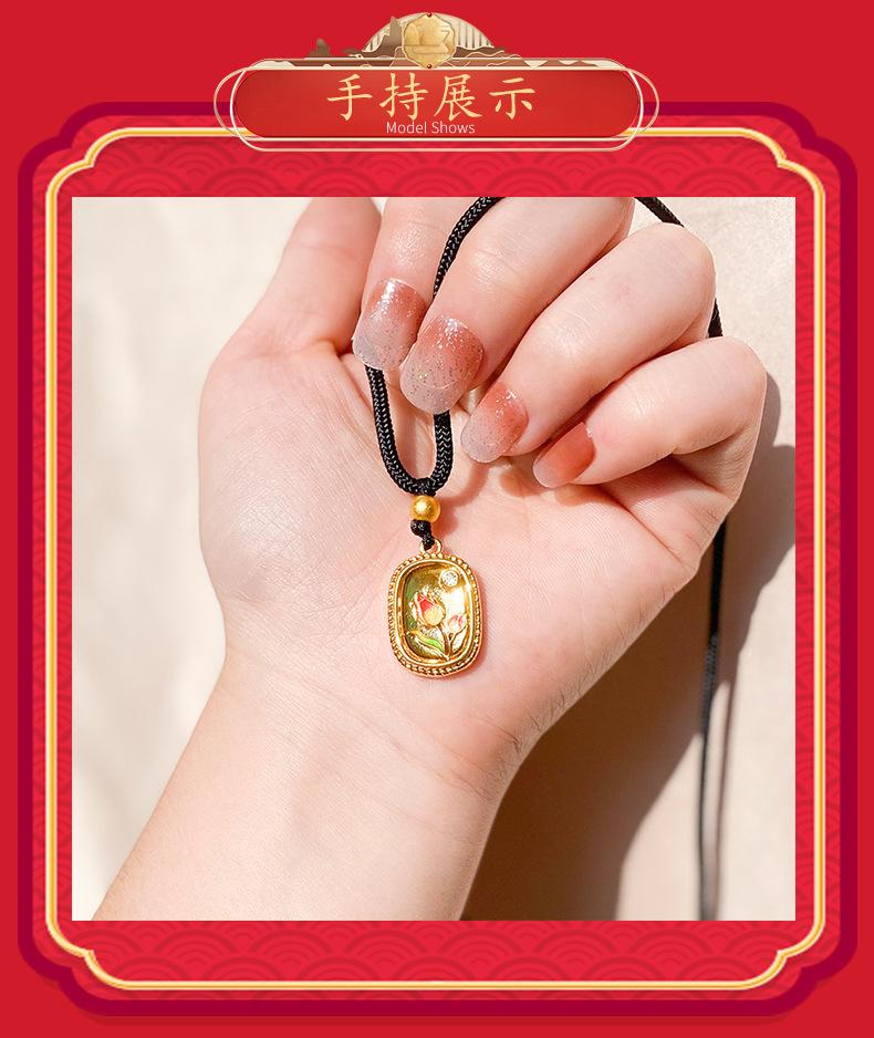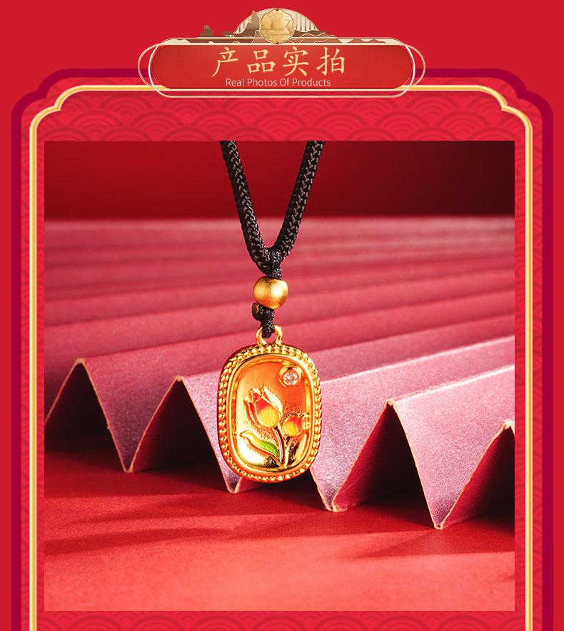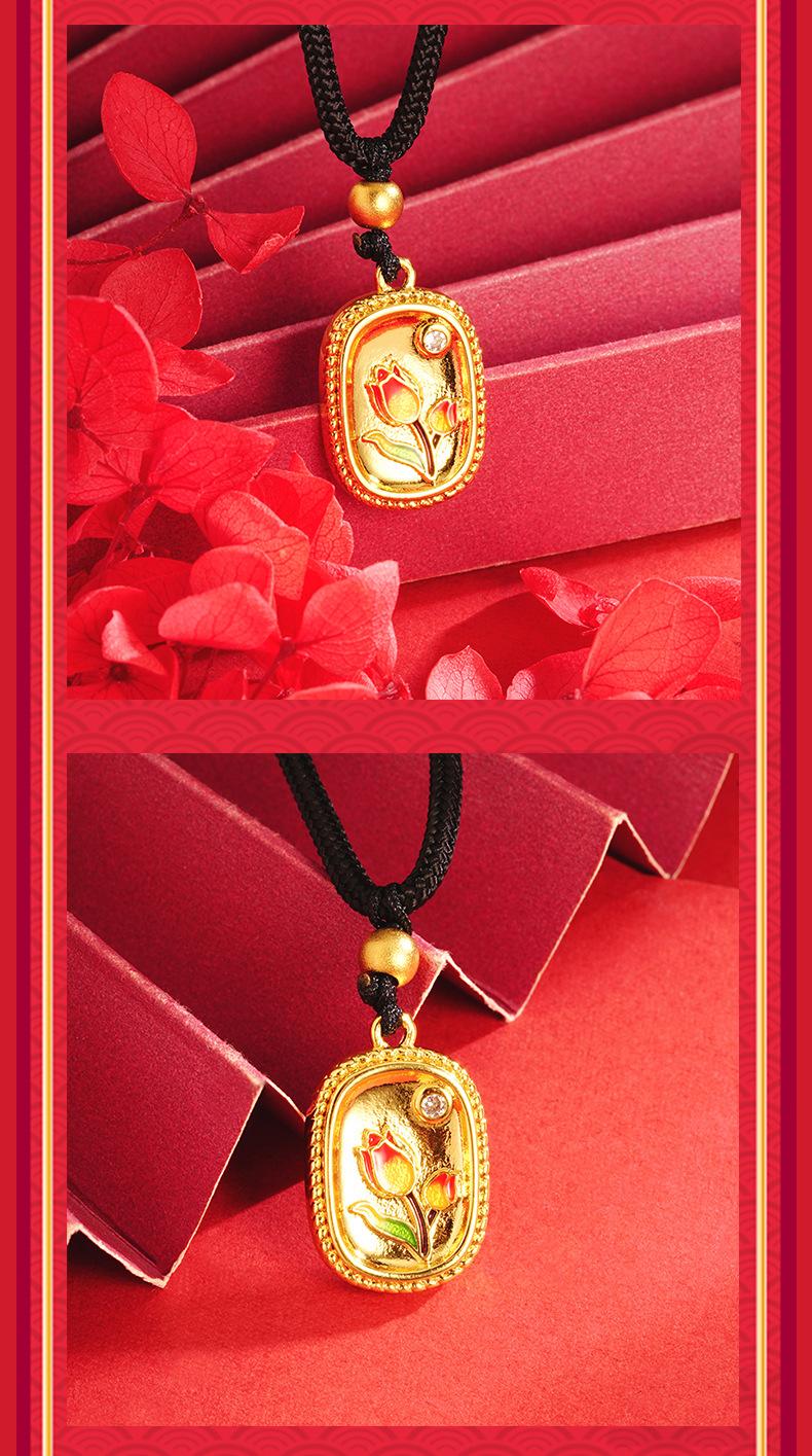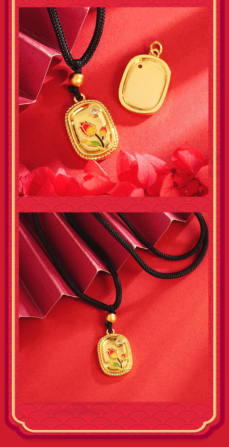 Collar cuadrado de oro rosa de Vietnam para mujer, cadena de clavícula de lujo ligera a la moda, colgante de flor, accesorios de joyería al por mayor