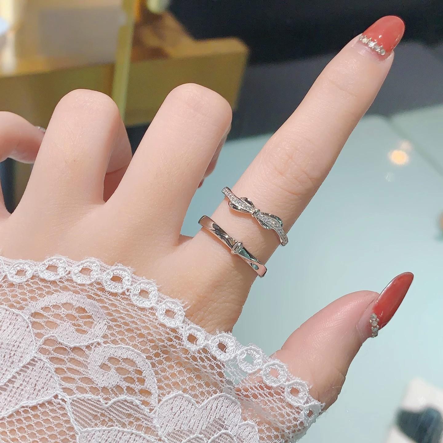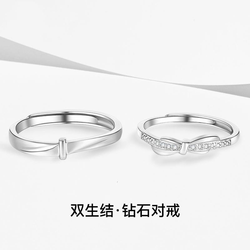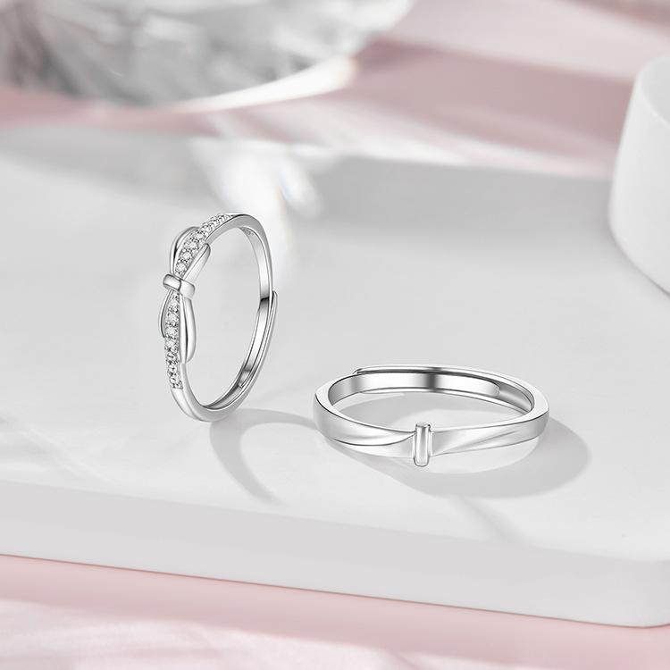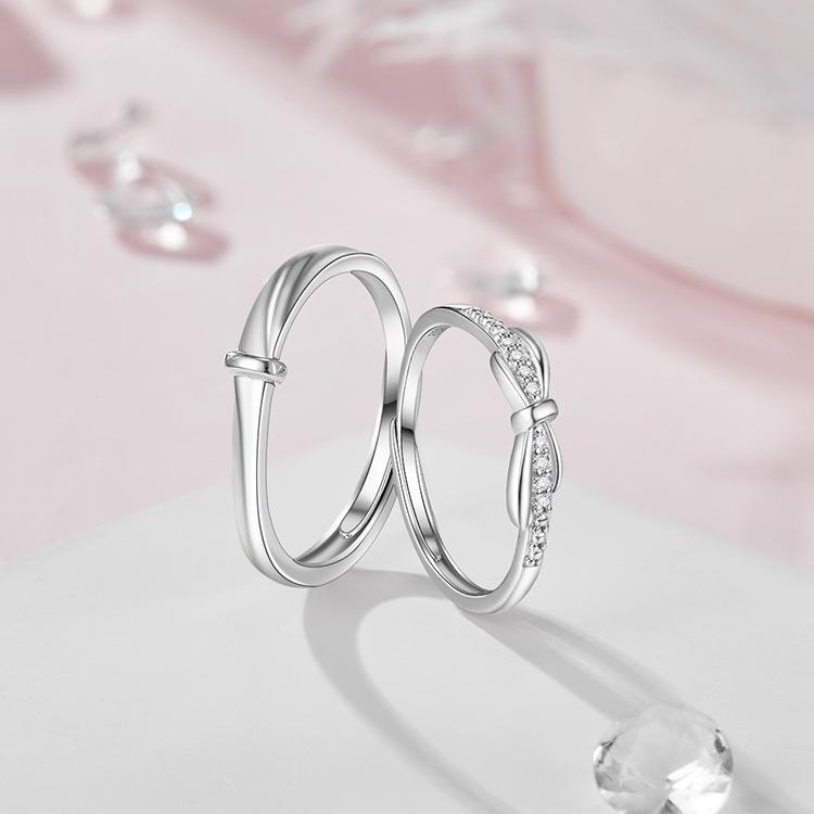Nuevo Anillo de Pareja de Nudo Doble Dulce con Diamante Amor a Distancia Par de Anillos Abiertos Regalo de San Valentín para Novia