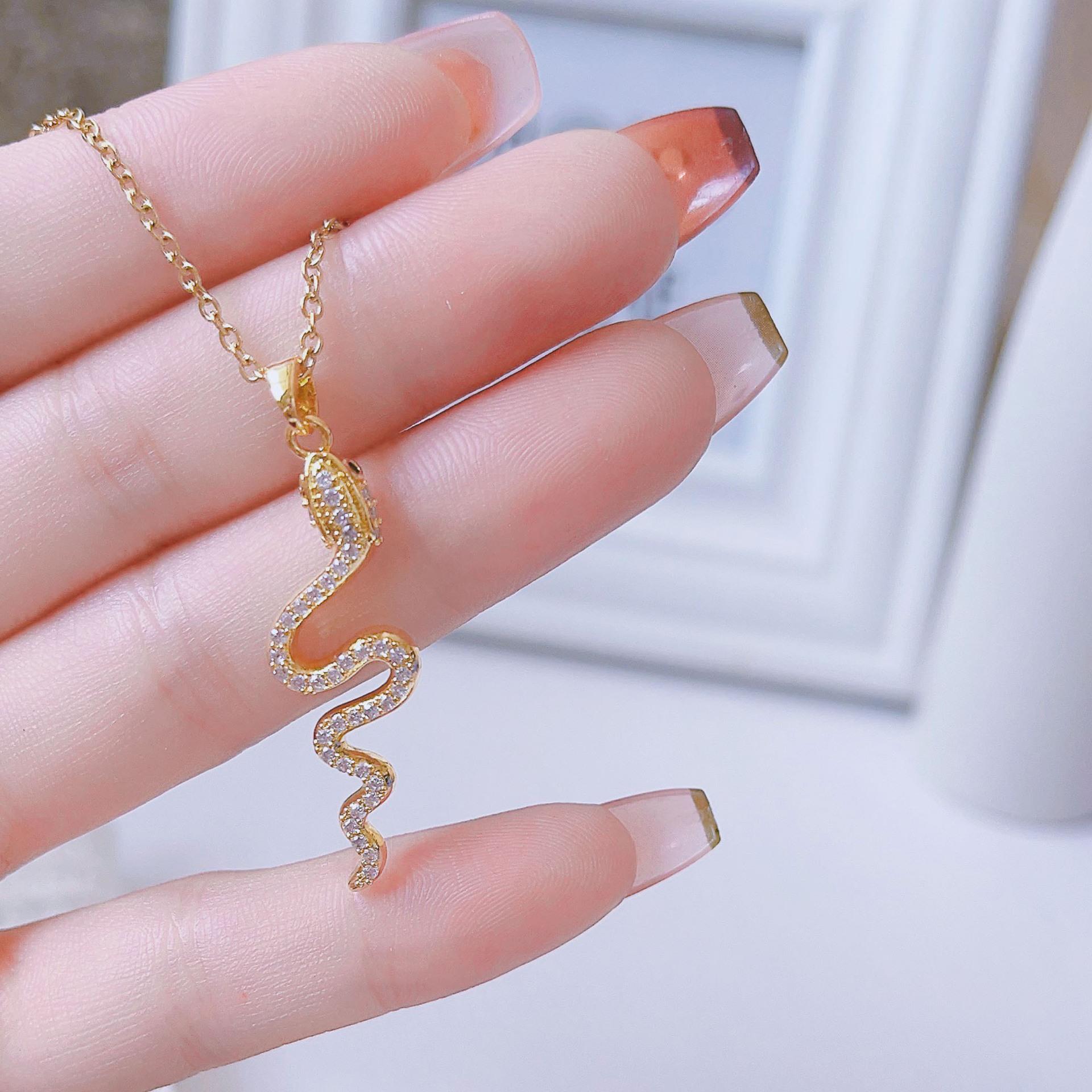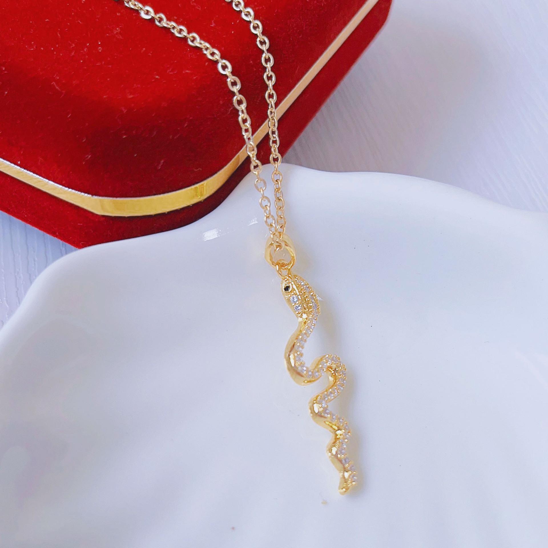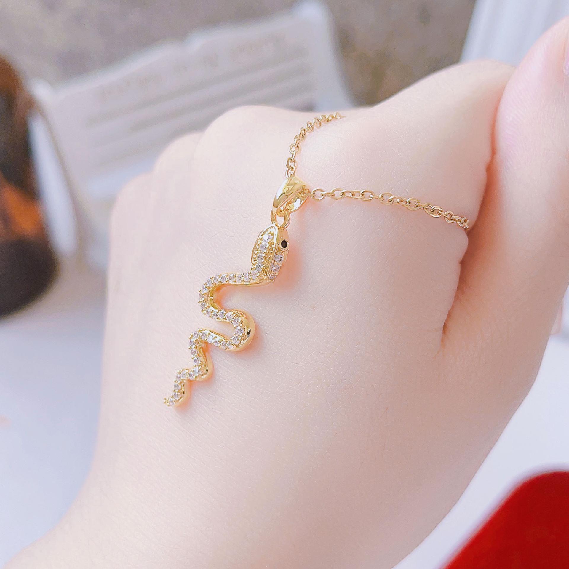 Serie Gráficos de Animales Cobre Zirconio Zodiaco S Collar de Serpiente Ins Viento Frío Tridimensional Lindo Cadena Clavicular de Serpiente Pequeña