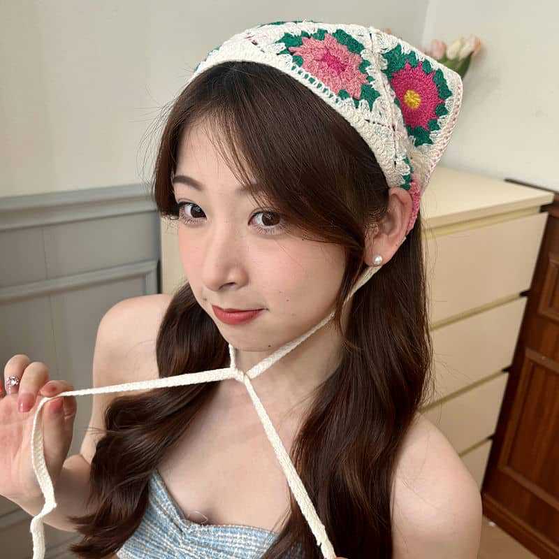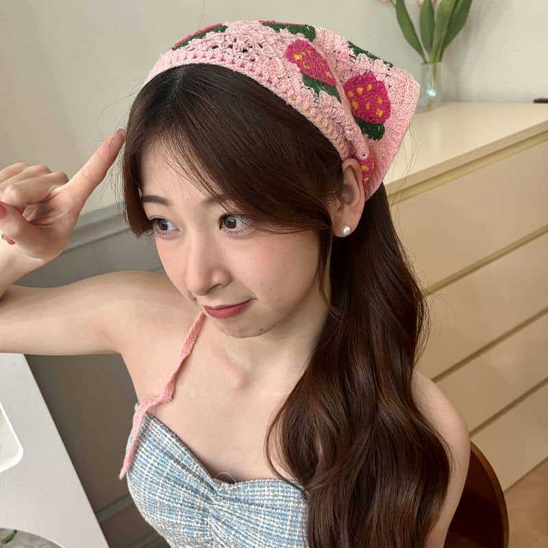 Banda para el cabello, accesorios para el cabello de mujer, bufanda triangular hueca de punto de ganchillo, pañuelo de flores estilo niña dulce y lindo para mujer