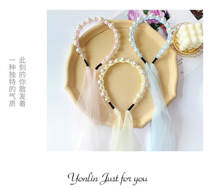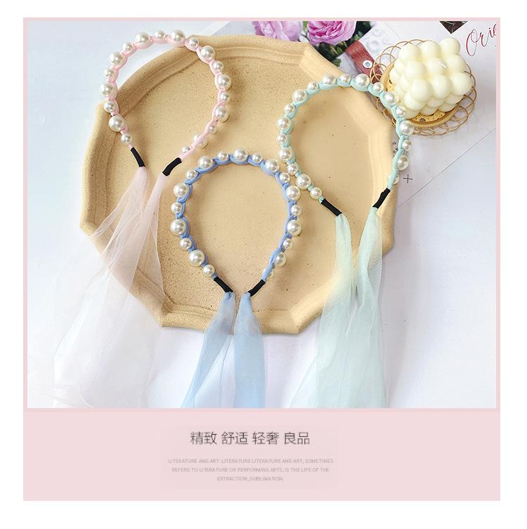 Banda para el cabello de hadas Banda para el cabello Lazo integrado Lazo para el cabello de mujer Cinta de encaje suave Súper Hada Trenza Cinta de perla Tocado