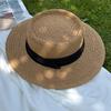Sombrero de paja de primavera y verano para mujer, de copa plana, estilo retro francés, pequeño, ideal para vacaciones en la playa o en el mar.