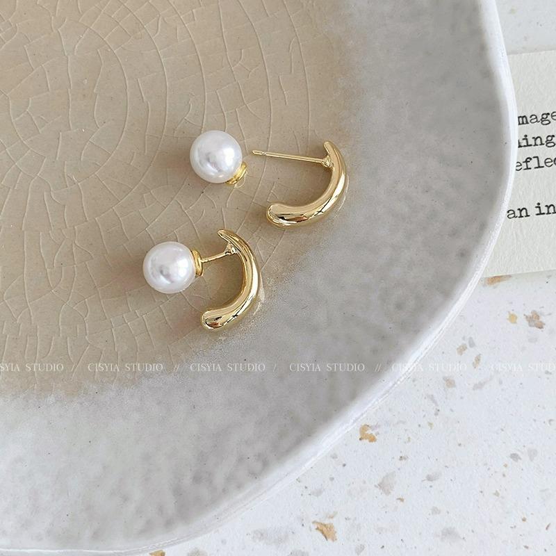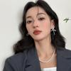Pendientes de perlas para mujer con dos delanteros y traseros, diseño de nicho de lujo ligero, sentido 2023, nuevo, elegante y simple, anillo de aguja de plata 925