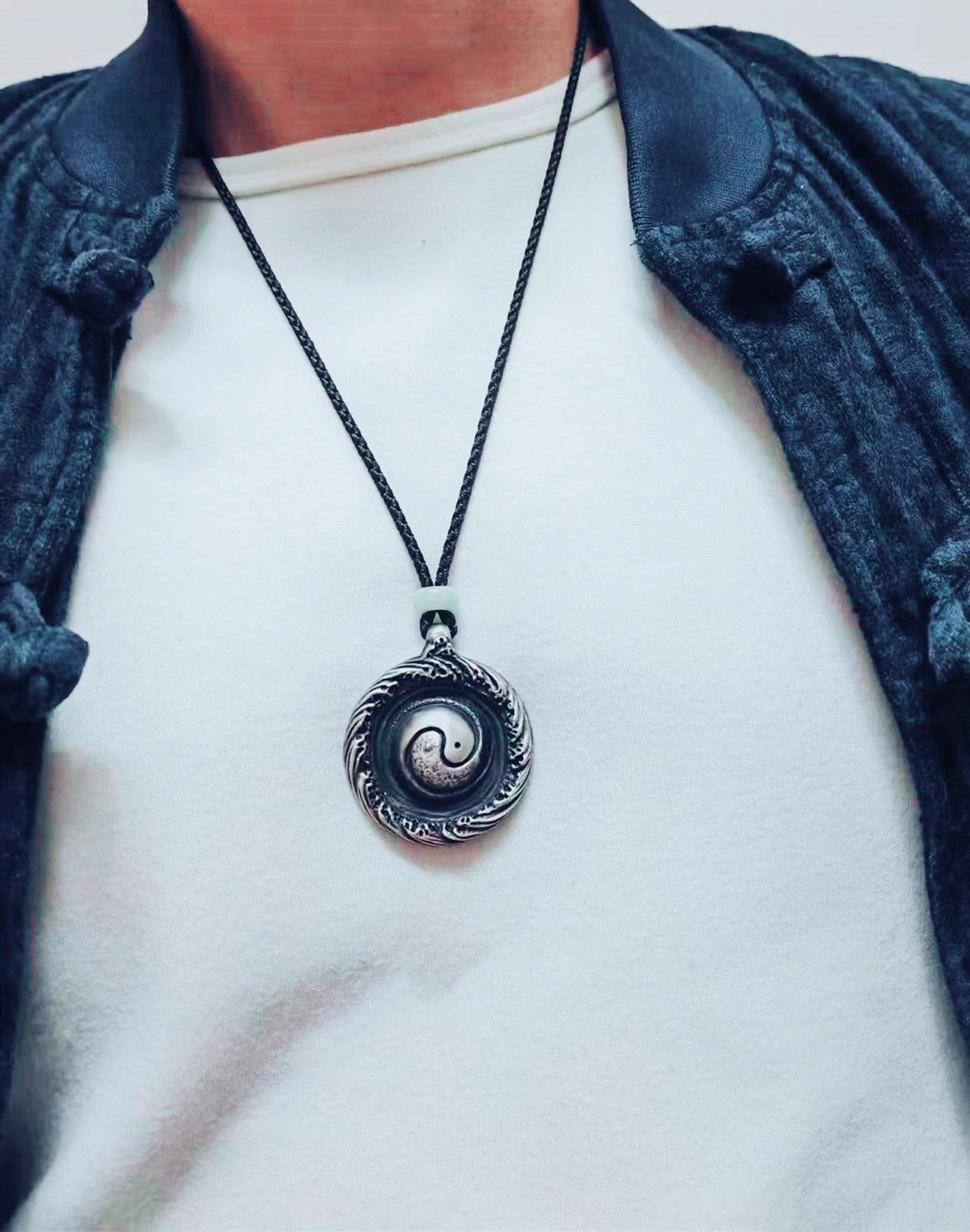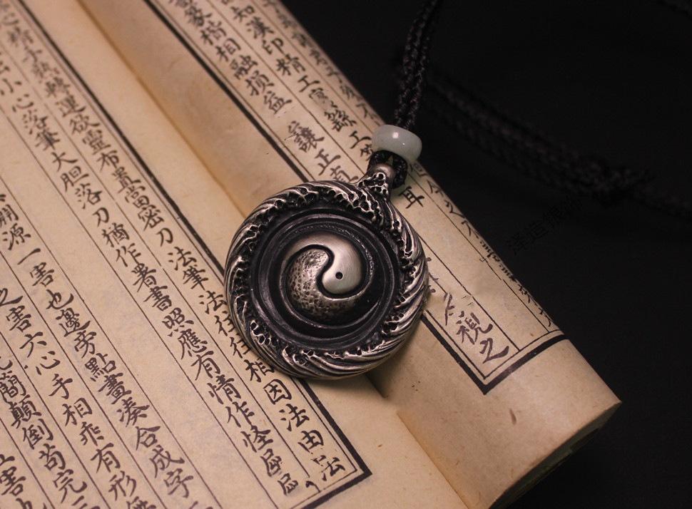 Colgante Chiba Original Plata Tailandesa Tai Chi Viento y Agua Joyería Tradicional Retro Marea Nacional Colgante Cultura Zhouyi