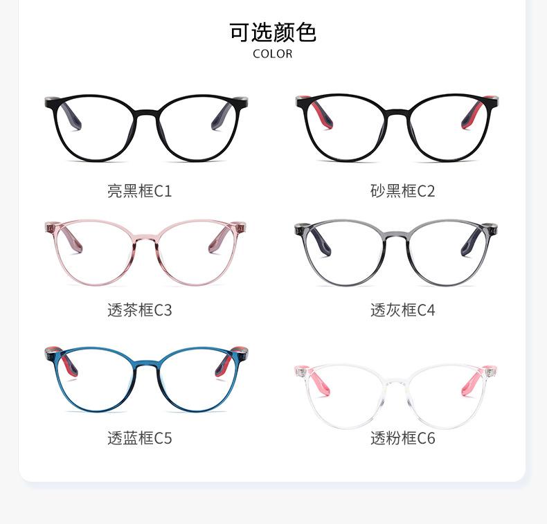 Bright black frame C1, Sand black frame C2, Transparent tea frame c3, Gray frame C4, Transparent blue frame c5...