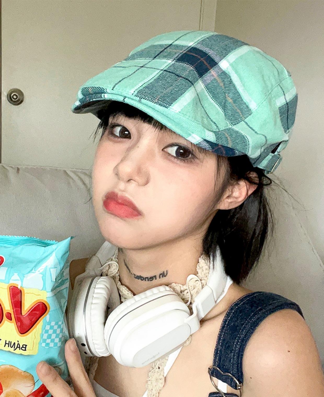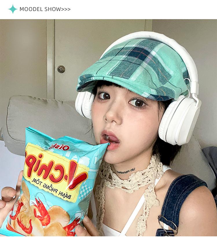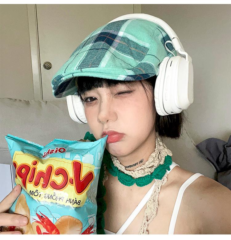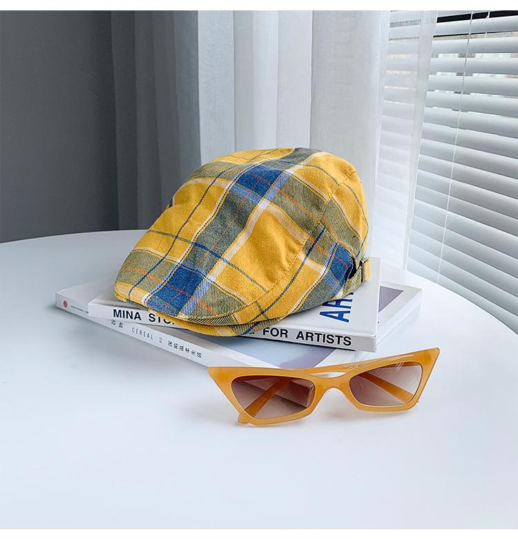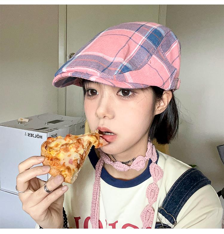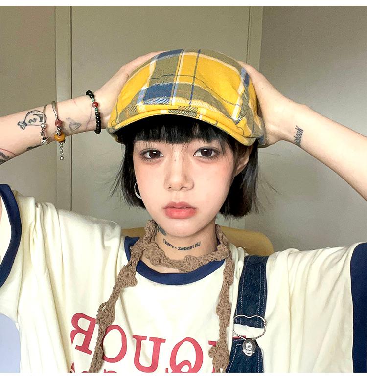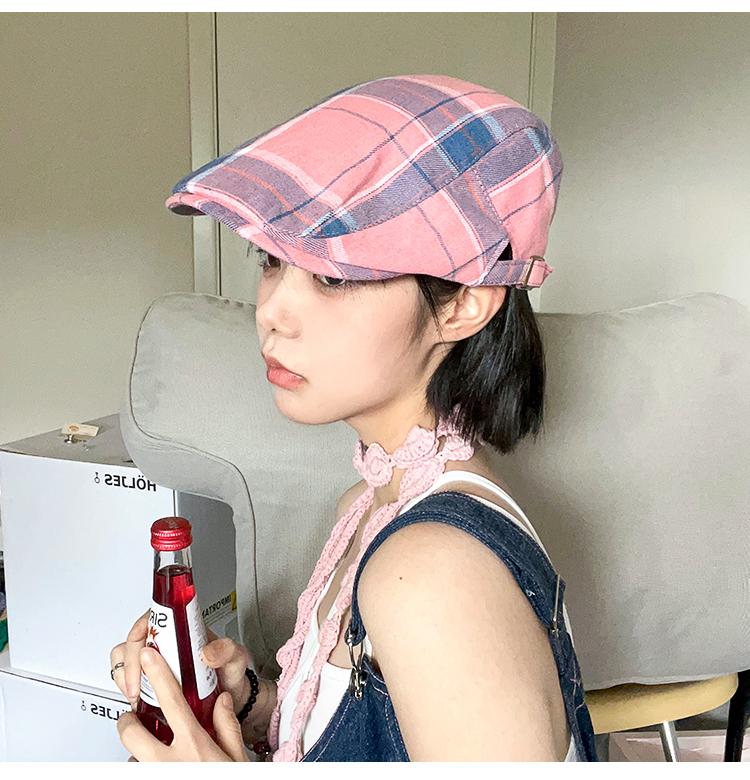 Sombrero antidesgaste de primavera y verano para mujer, estilo Spice Girl americano, estilo retro a cuadros finos, estilo vendedor de periódicos, sombrero antiguo para hombre.
