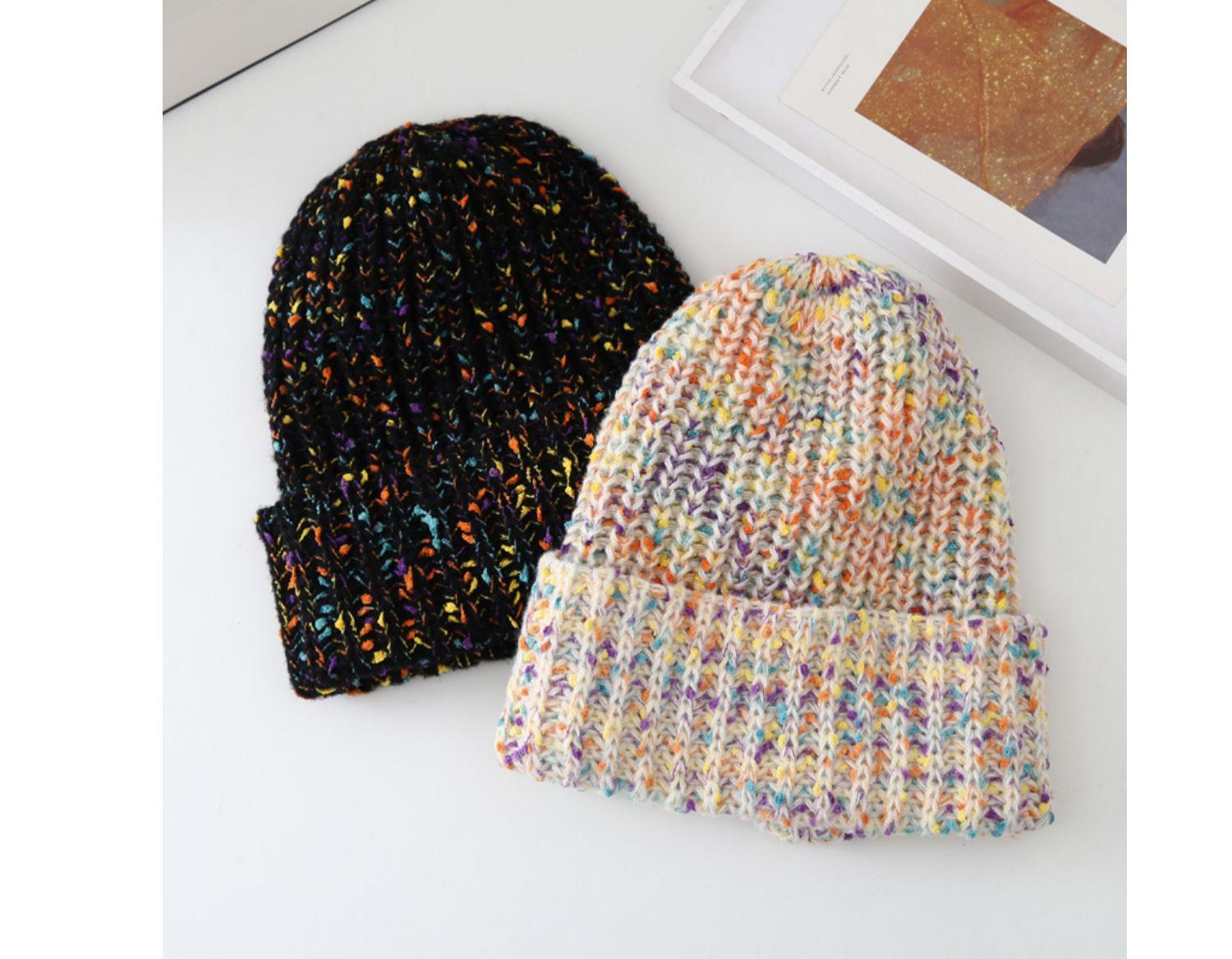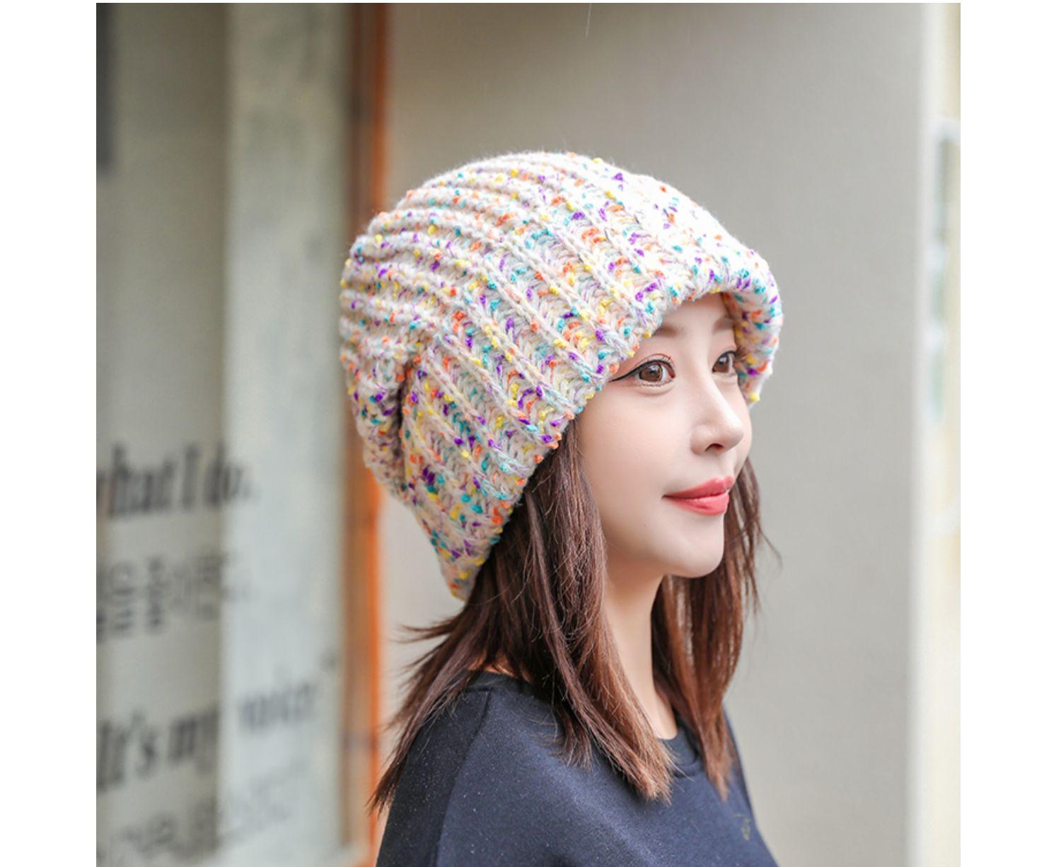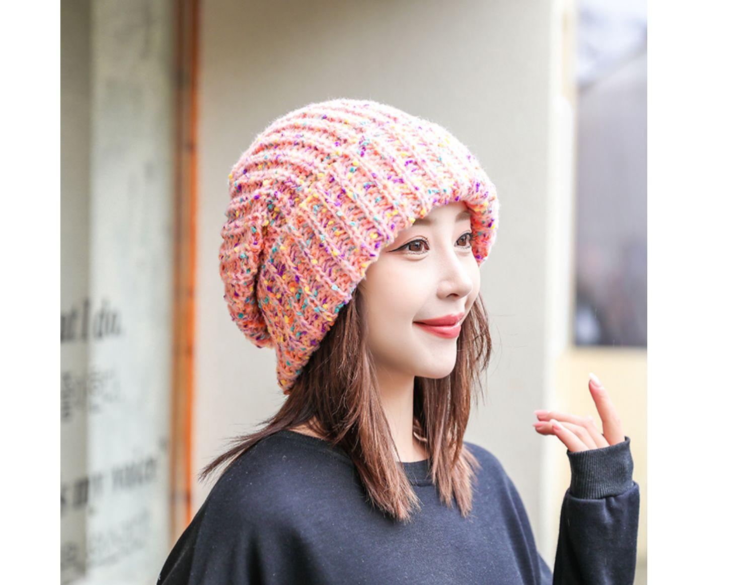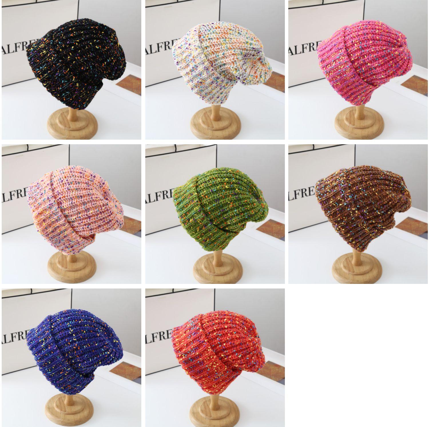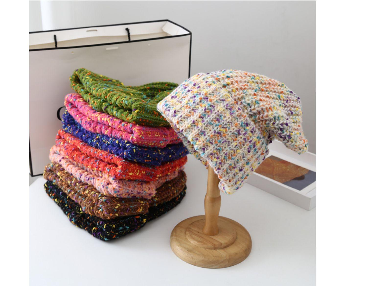 Black Mixed Color Wool Stack Cap, Pink mixed color wool pile cap, Beige Mixed Color Wool Stack Cap, Blue Mixed...