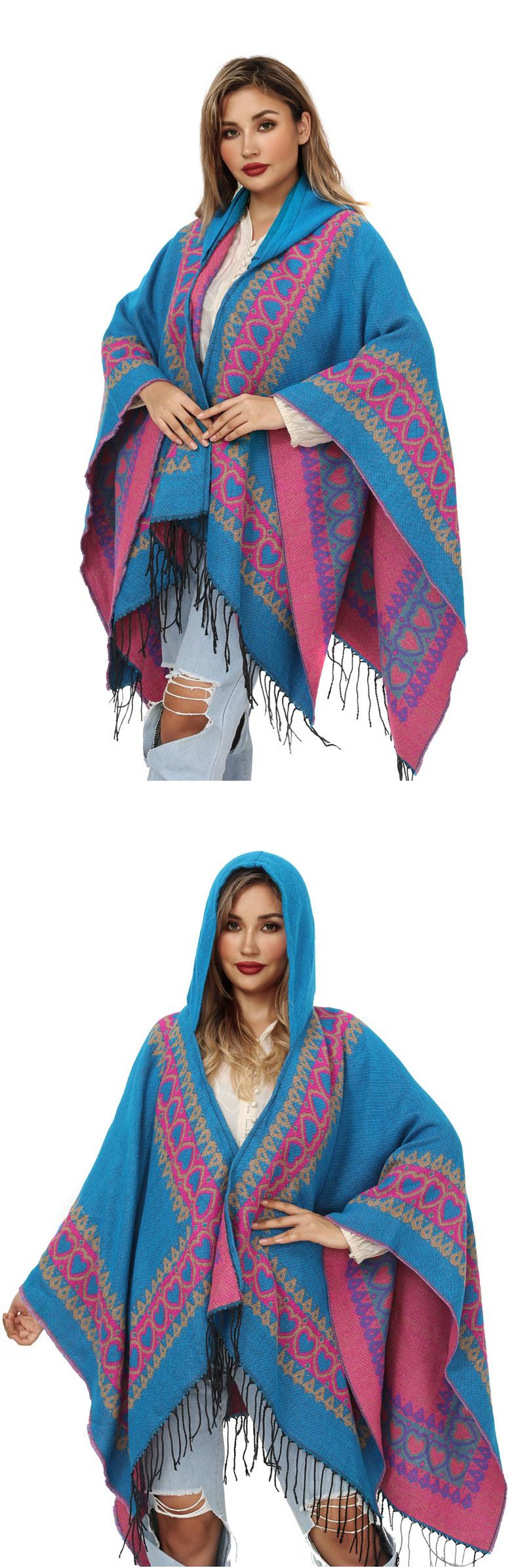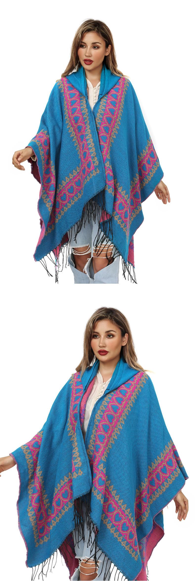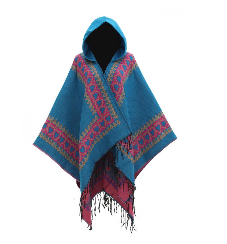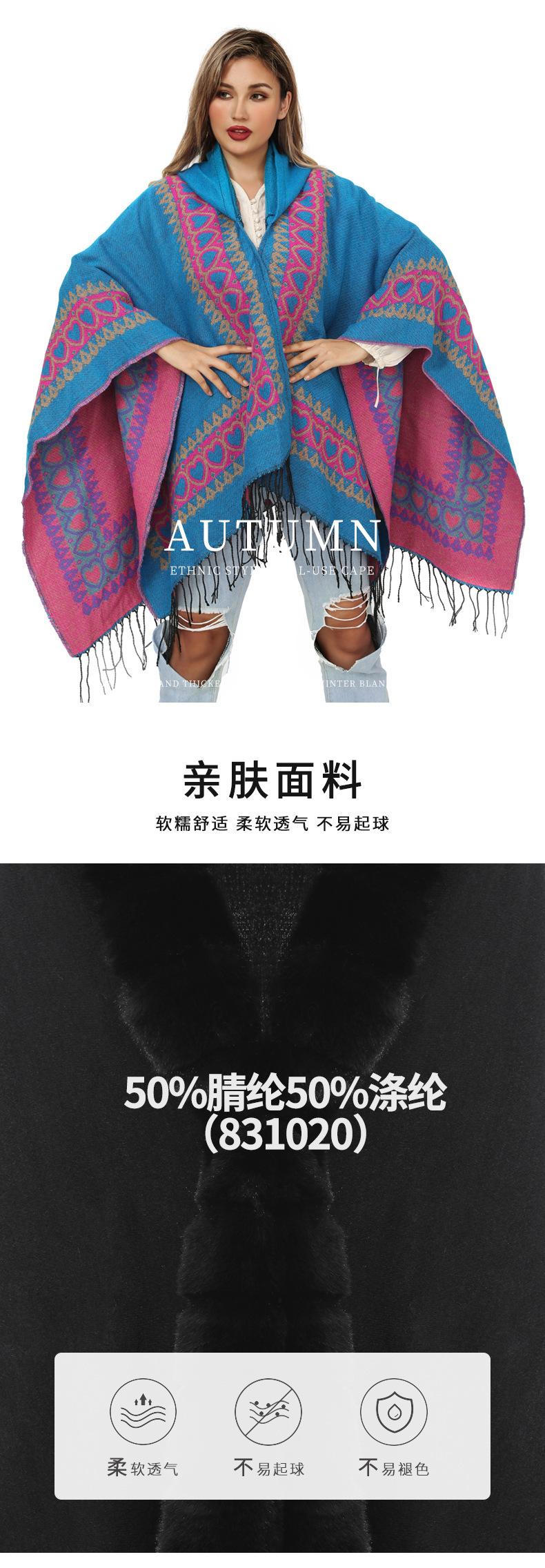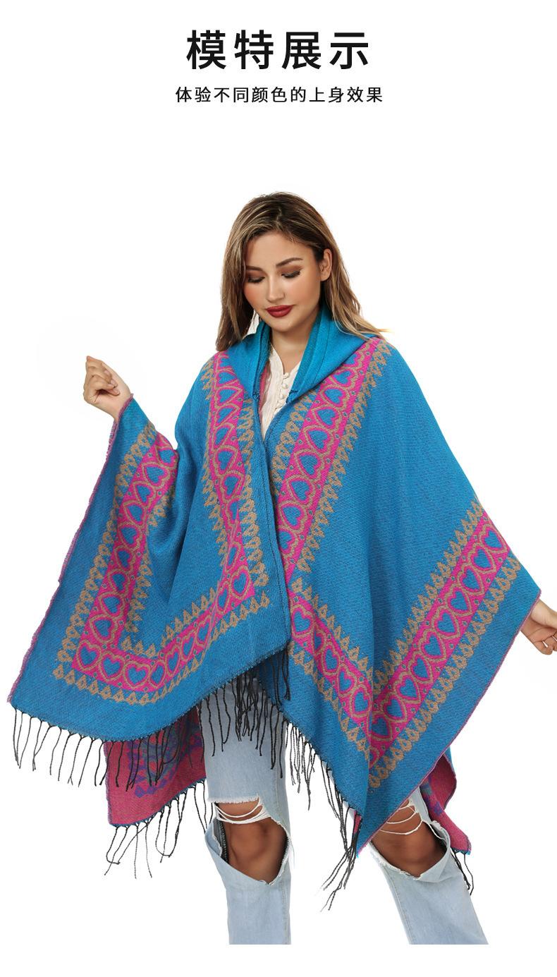 Otoño e invierno, sombrero europeo y americano, chal de punto, moda dividida, Amazonas, cálida capa con borlas, capa con borlas de comercio exterior