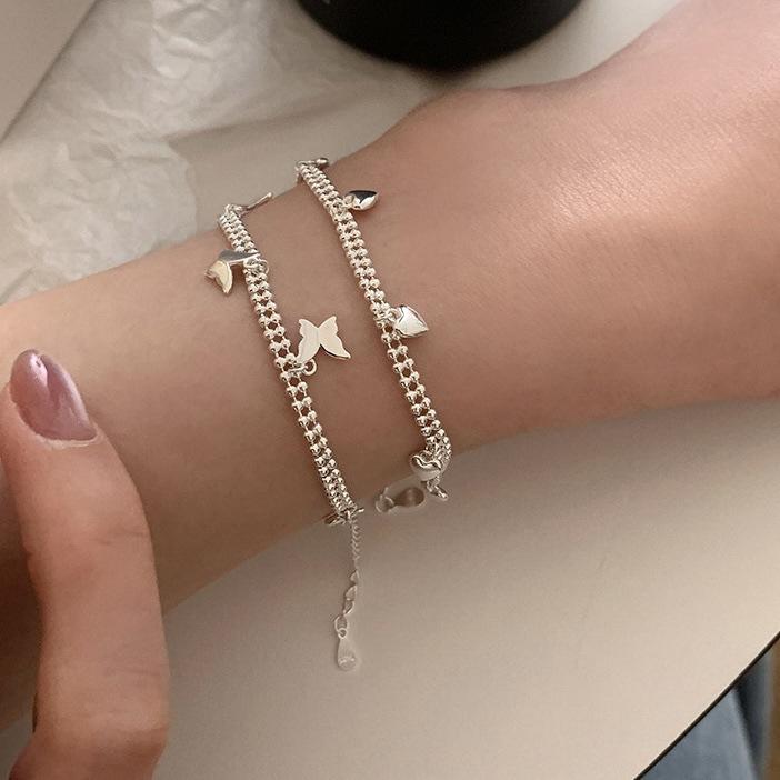 Pulsera de Lujo Ligero de Alta Gama Mariposa Amor Doble Capa para Mujer Ins Simple Diseño Nicho Pulsera Elegante