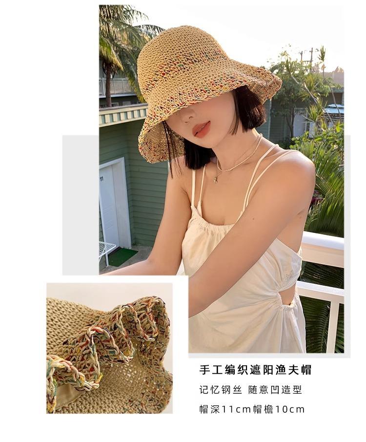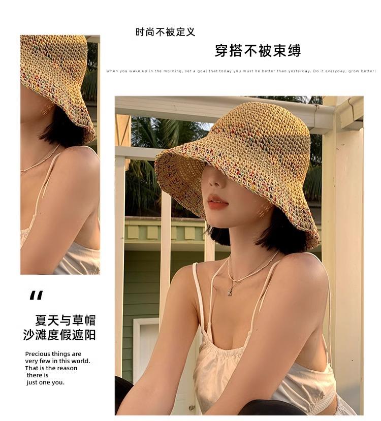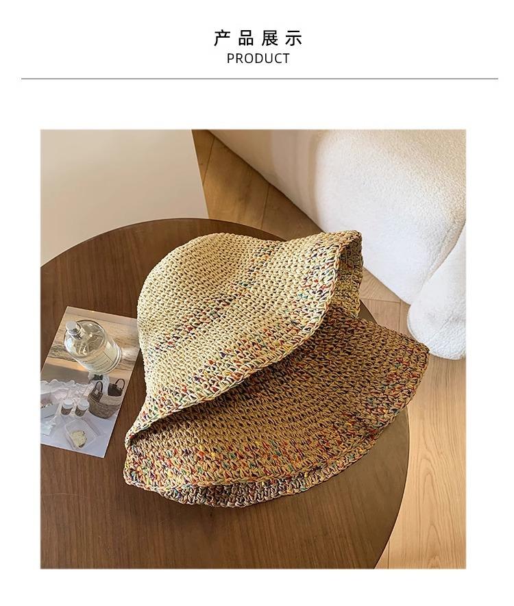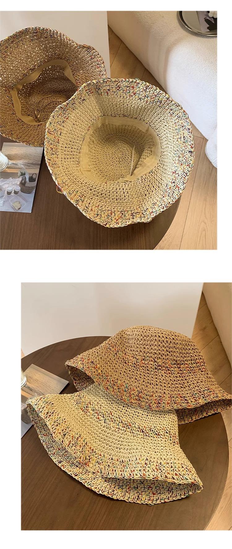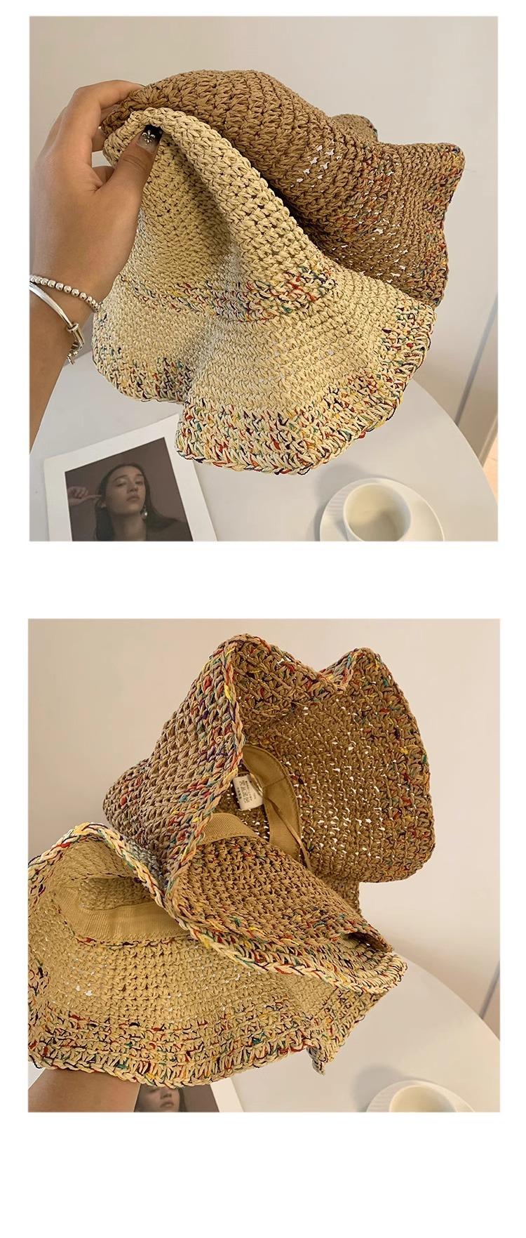 Sombrero de Pescador de Paja Nuevo 2024 para Mujer Verano Transpirable que Muestra la Cara Sombrero de Cubo Pequeño Ala Grande Protector Solar Sombrero de Paja para la Playa
