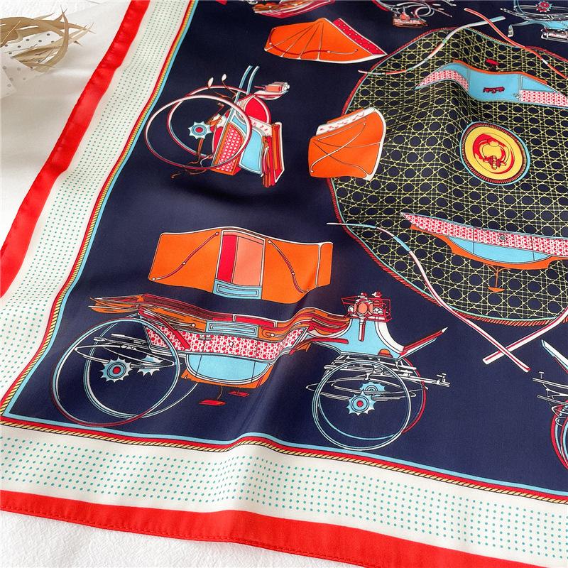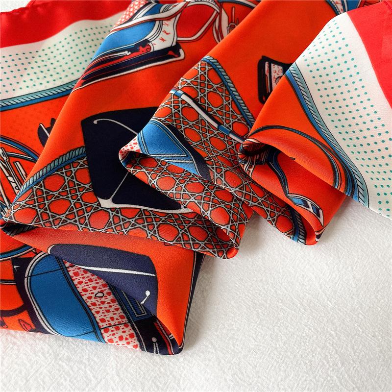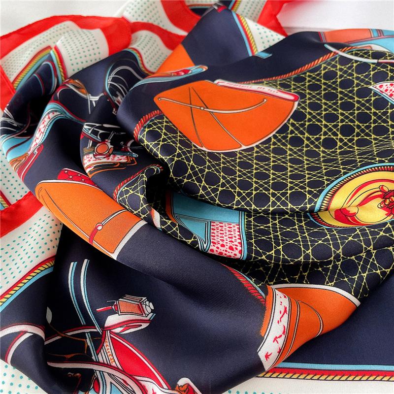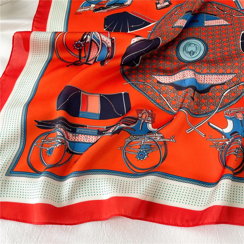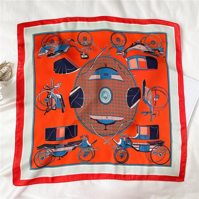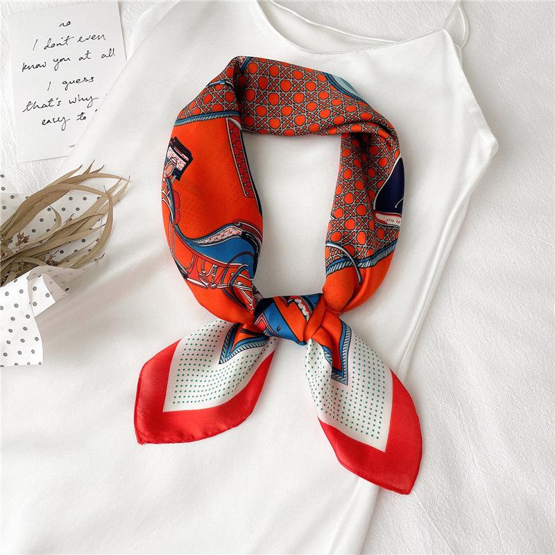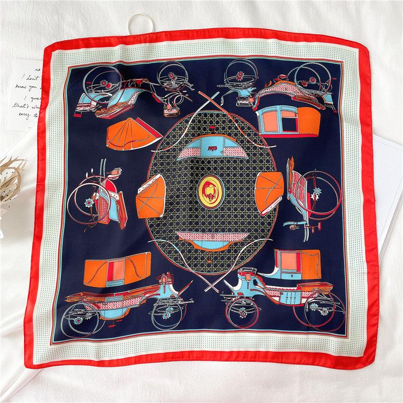 Pañuelo de seda estilo europeo y americano, pañuelo de moda para carruajes, pañuelo cuadrado pequeño de 70 cm, pañuelo de seda para viajes, protector solar de verano, pañuelo protector para el cuello para otoño e invierno.