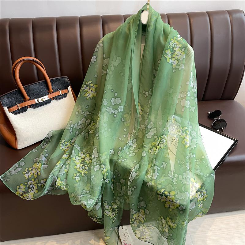 Bufanda grande de seda elegante con diseño floral para uso diario, ligera y de lujo, con protección solar, ideal para mujer.