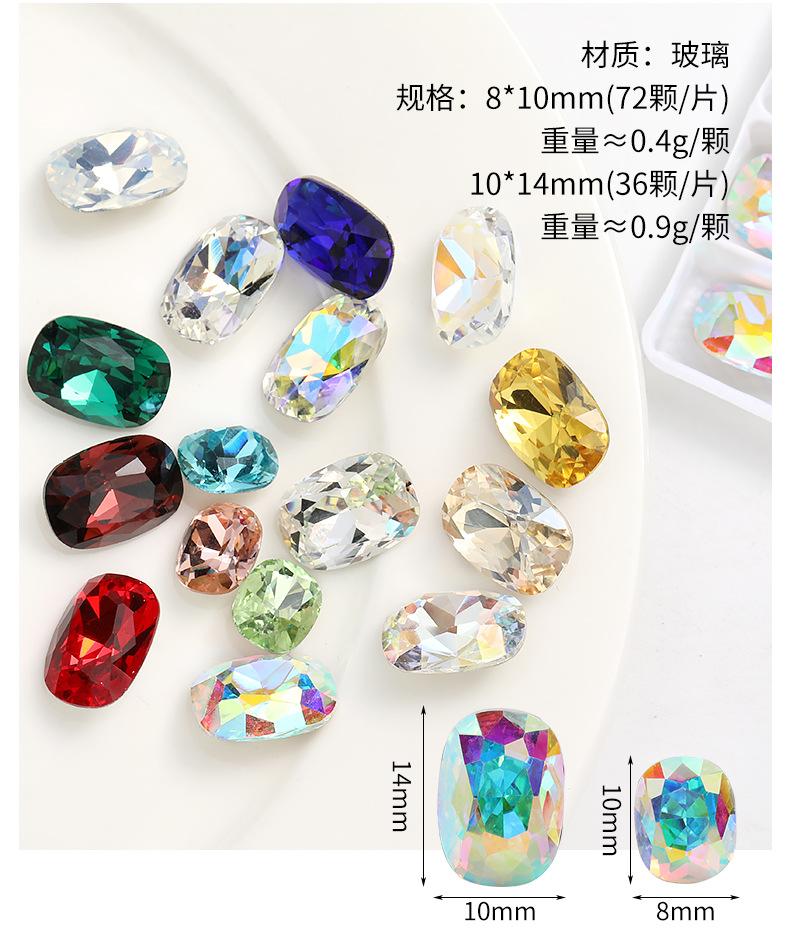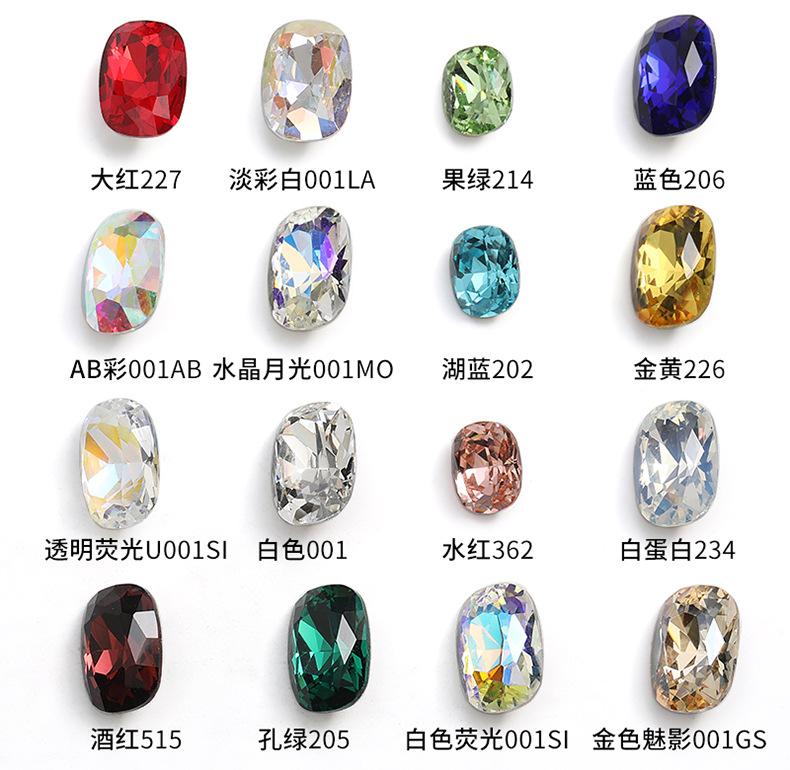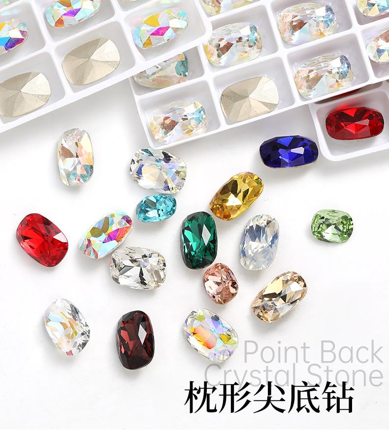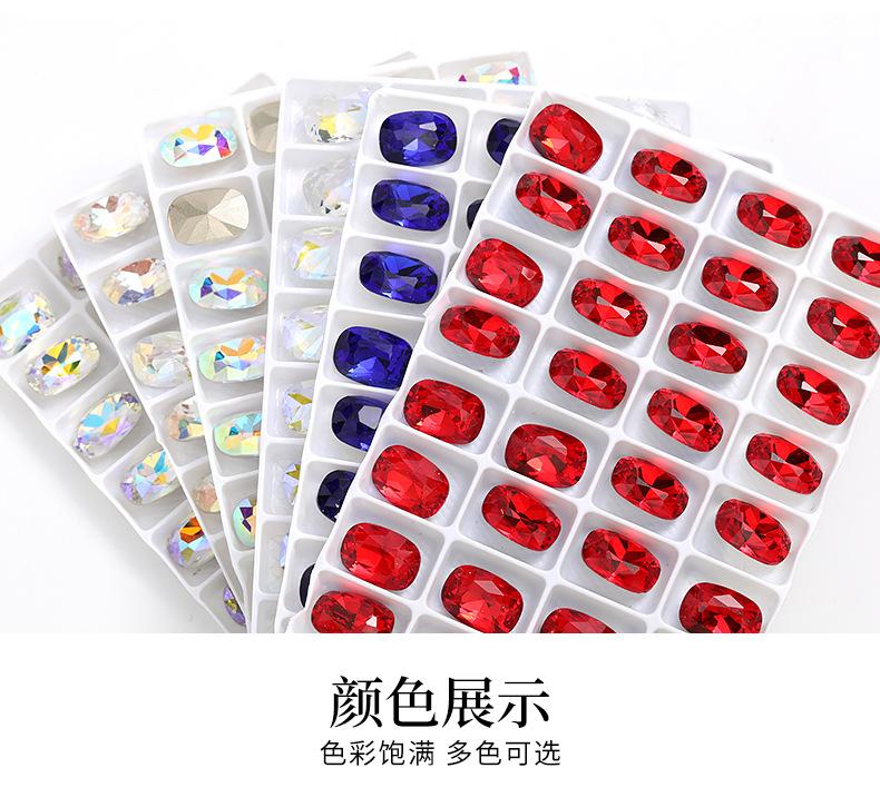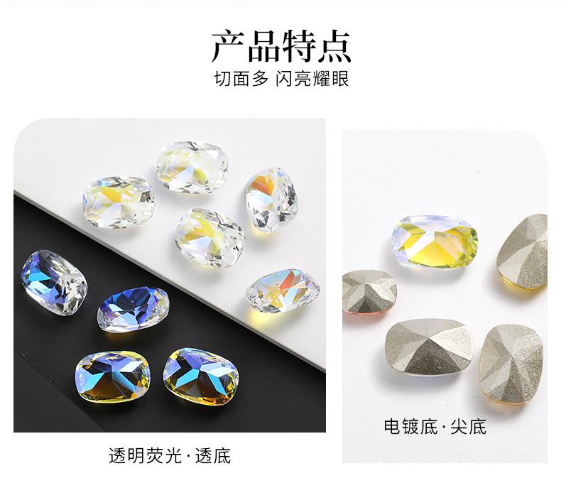 Taladro de uñas de diamante con base puntiaguda de almohada, rectangular, de ángulo redondo, de cristal, accesorios de joyería de diamante, pegatinas para fundas de teléfono hechas a mano