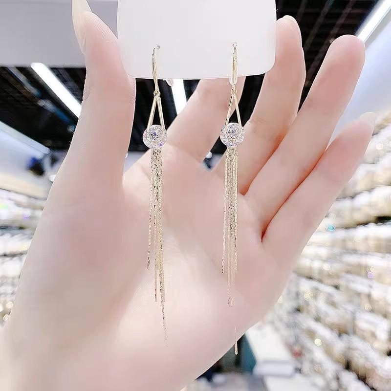Pendientes elegantes y ligeros de lujo con borlas y gotas de agua de circonita, versátiles, modernos y sencillos, de alta calidad, con gancho para la oreja para mujer.