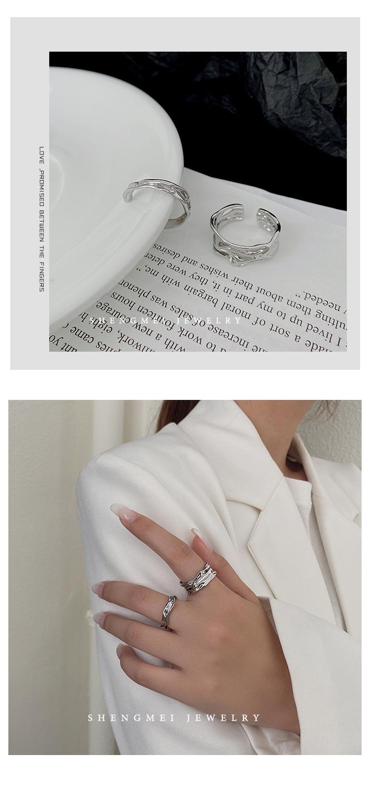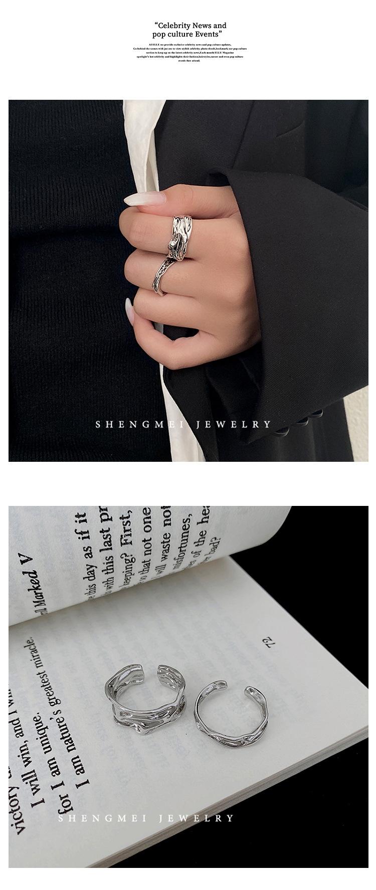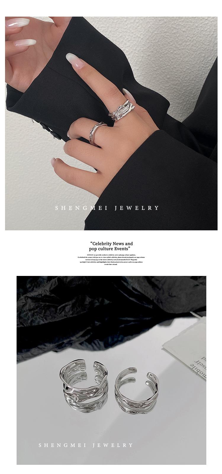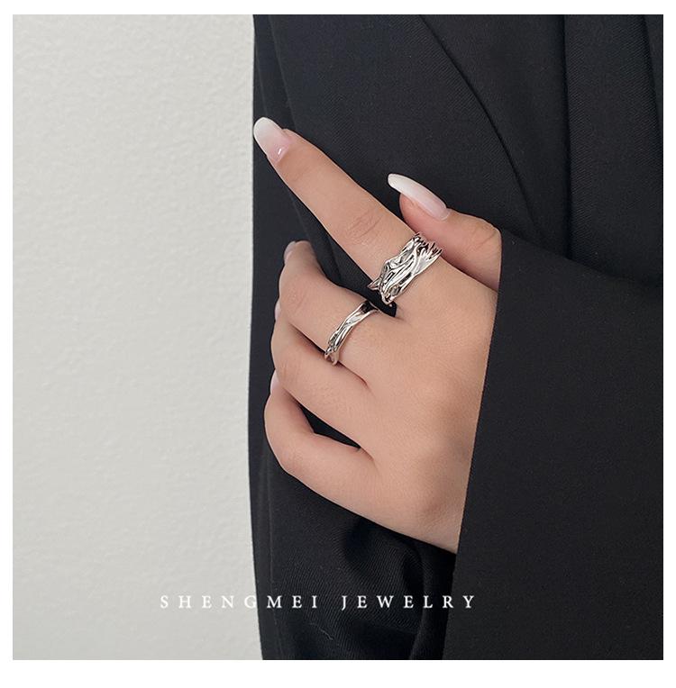 Anillo Geométrico Plisado de Plata S925 Coreana para Mujer Moda Vintage Irregular con Bulto Anillo Abierto Hip-Hop para Dedo