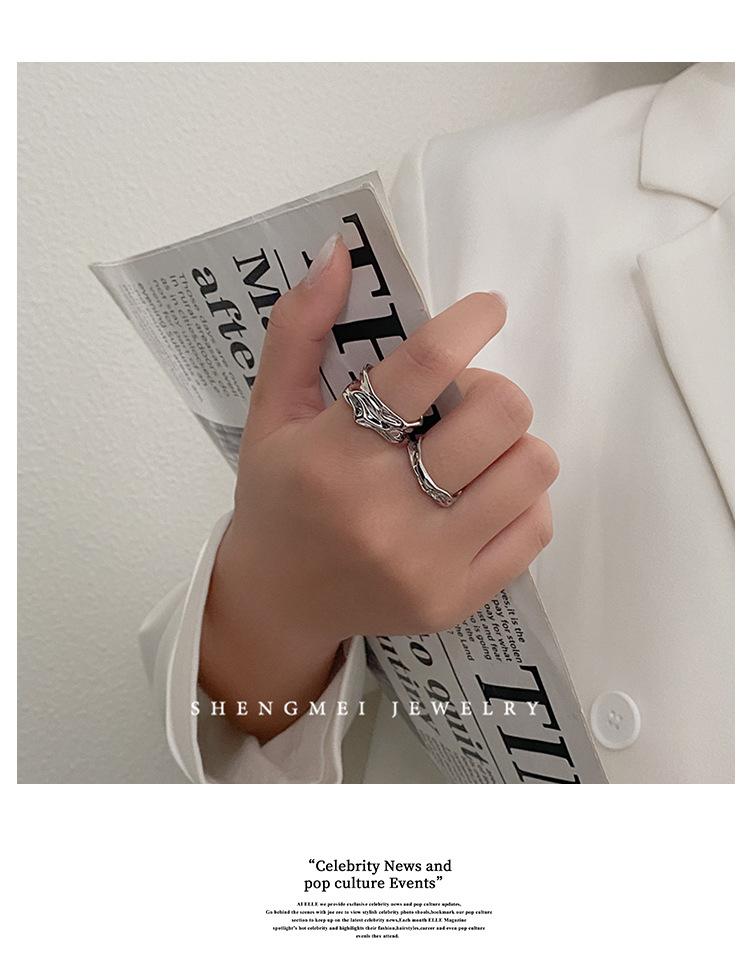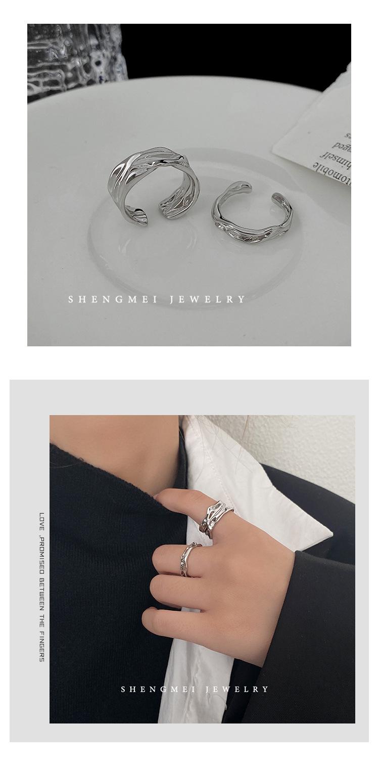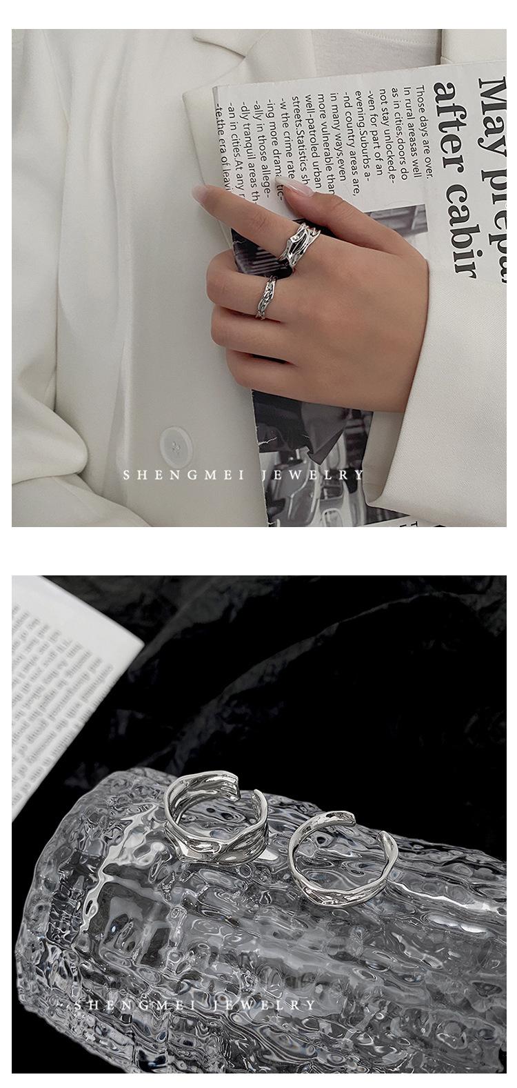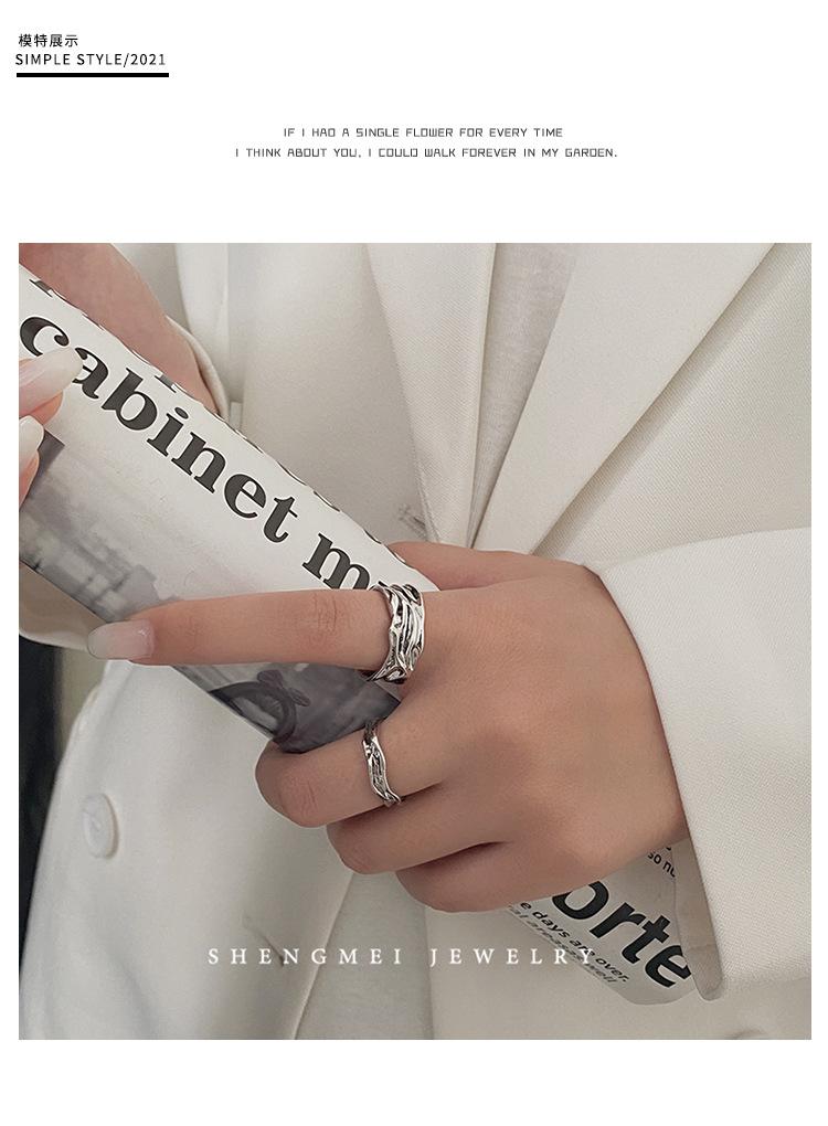 Anillo Geométrico Plisado de Plata S925 Coreana para Mujer Moda Vintage Irregular con Bulto Anillo Abierto Hip-Hop para Dedo