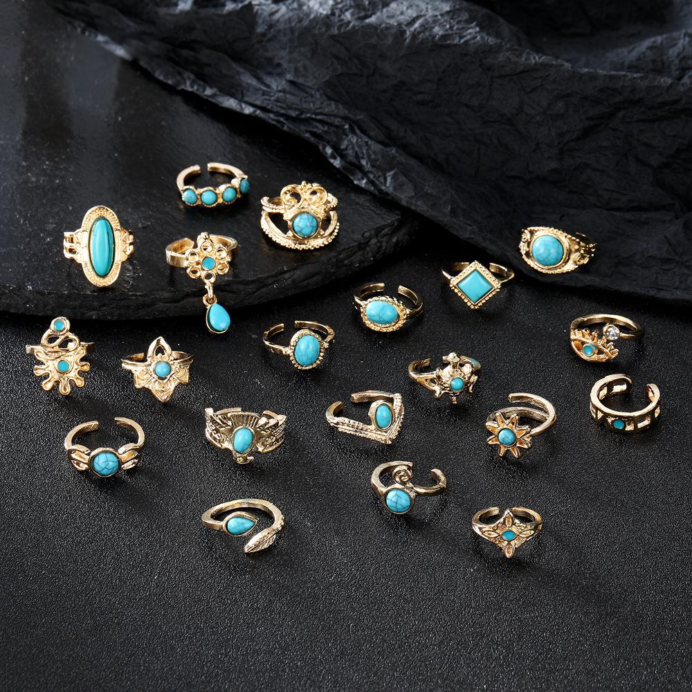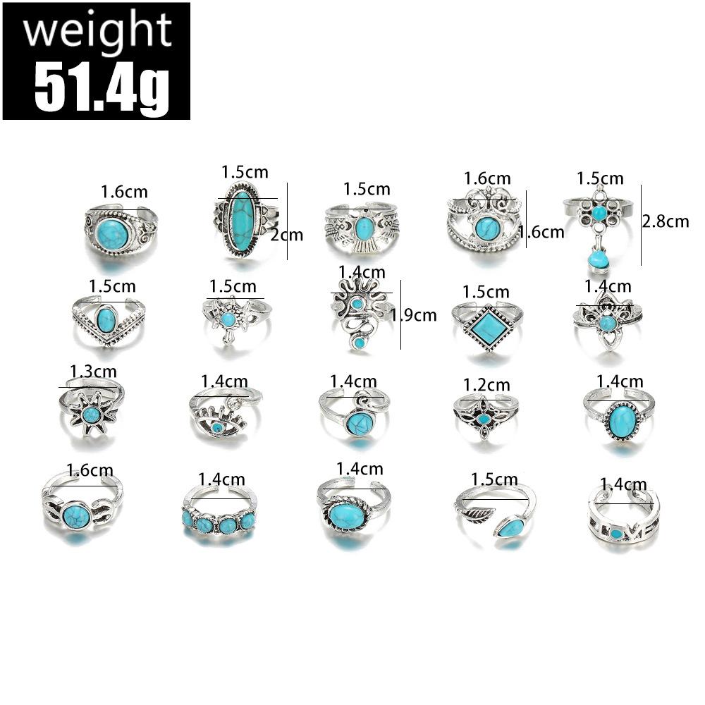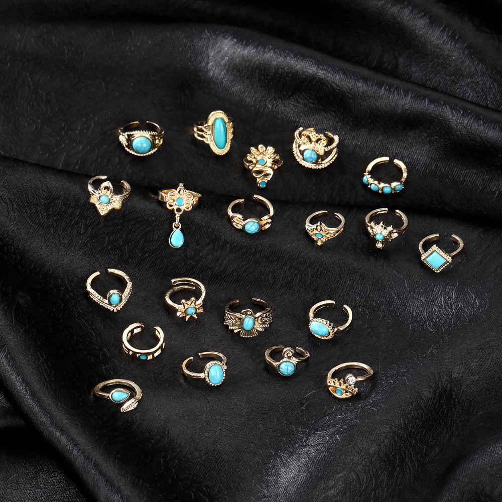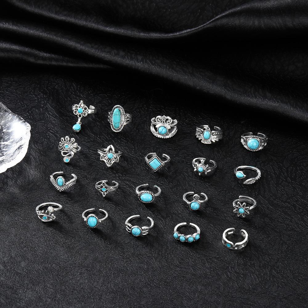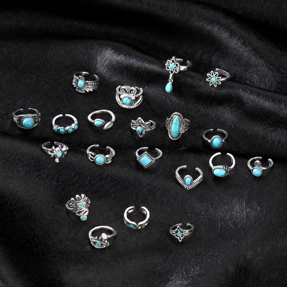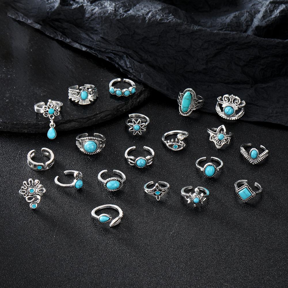 Europeo y Americano Transfronterizo Nuevo Retro Estilo Bohemio Corona Águila Turquesa Apertura Juego de 20 Piezas Anillo Venta al por Mayor