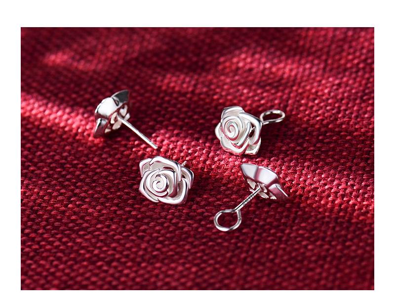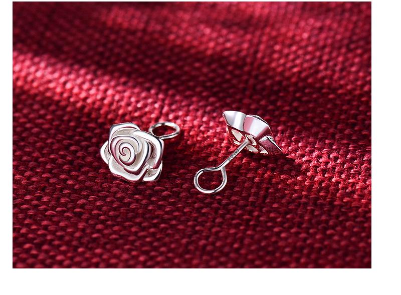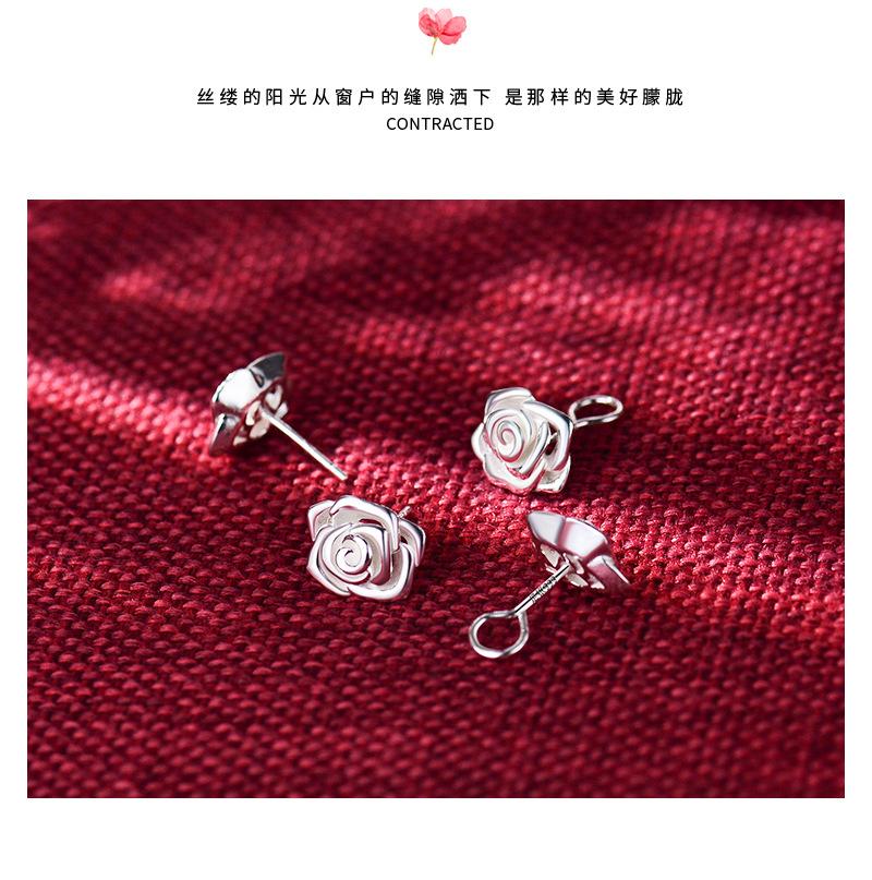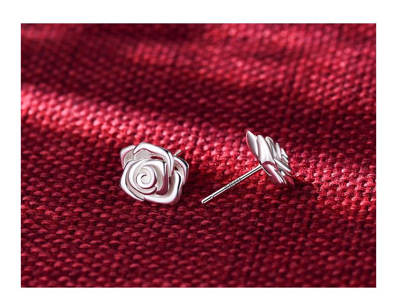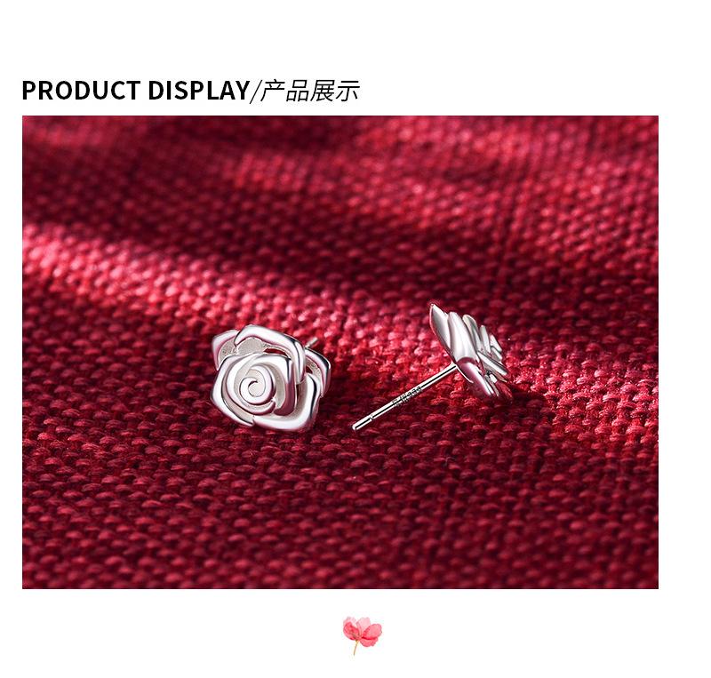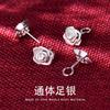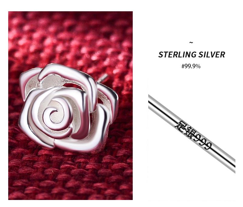 Pendientes sencillos con forma de flor para mujer, con forma de rosa, de plata pura 999, con agujero para la oreja y gancho curvo, regalo Qixi