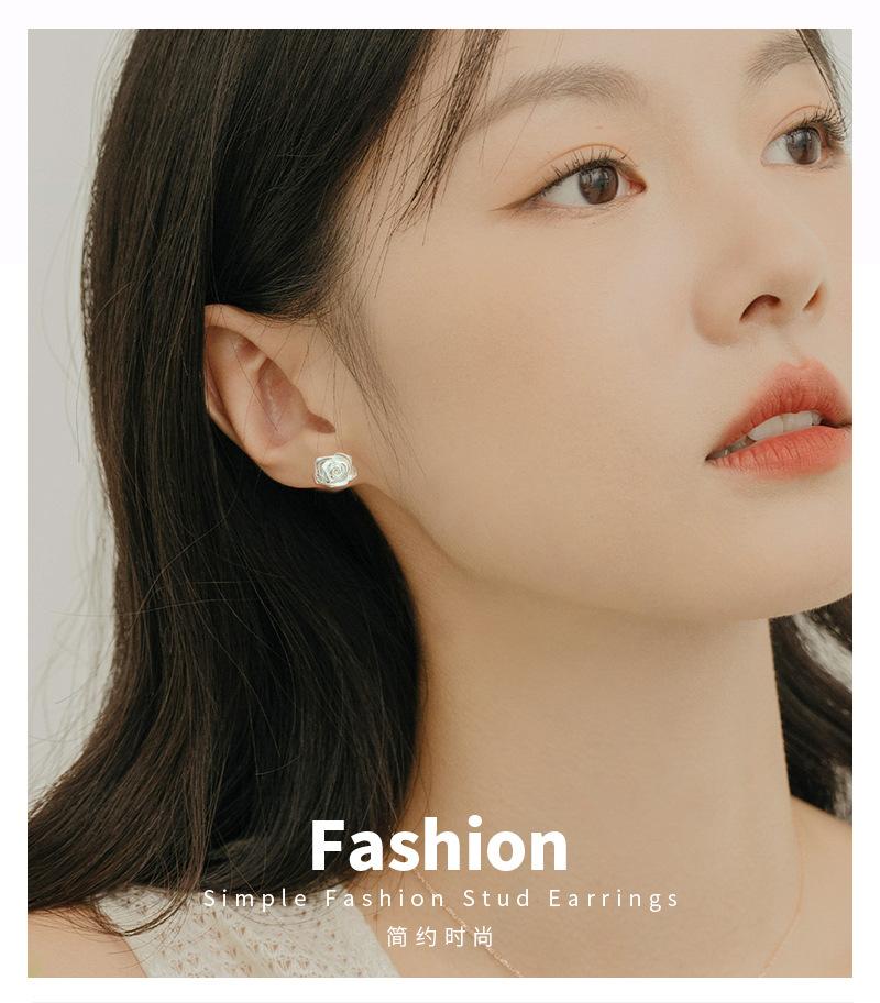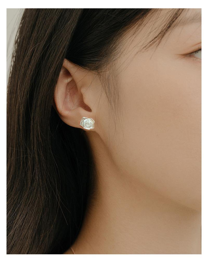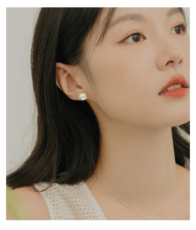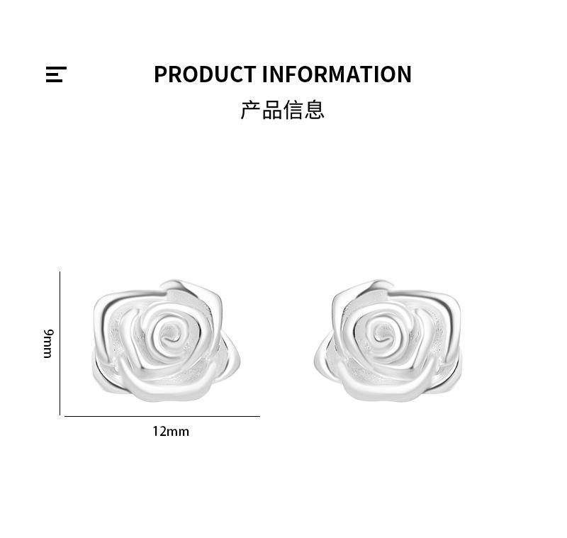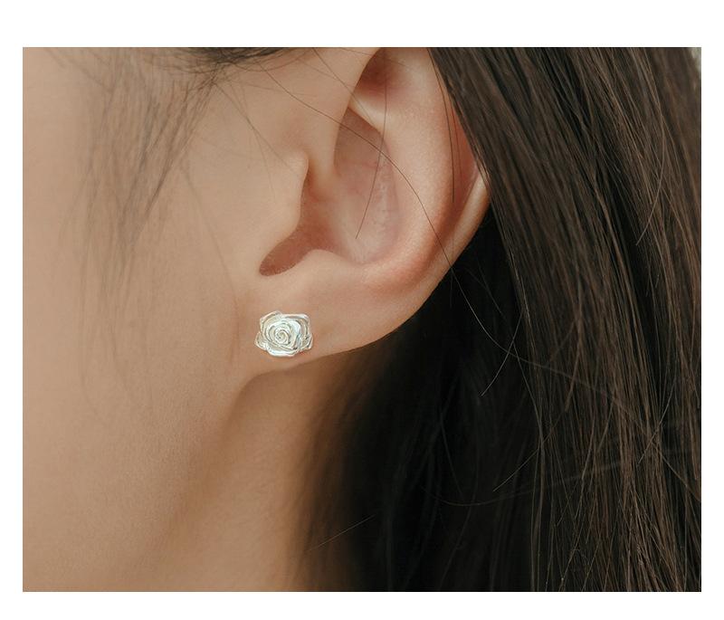 Pendientes sencillos con forma de flor para mujer, con forma de rosa, de plata pura 999, con agujero para la oreja y gancho curvo, regalo Qixi