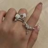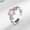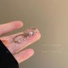 Hermoso anillo abierto con diseño de nicho de circonita rosa con microincrustaciones, anillo dulce que combina con todo, anillo de dedo índice de moda de alta calidad