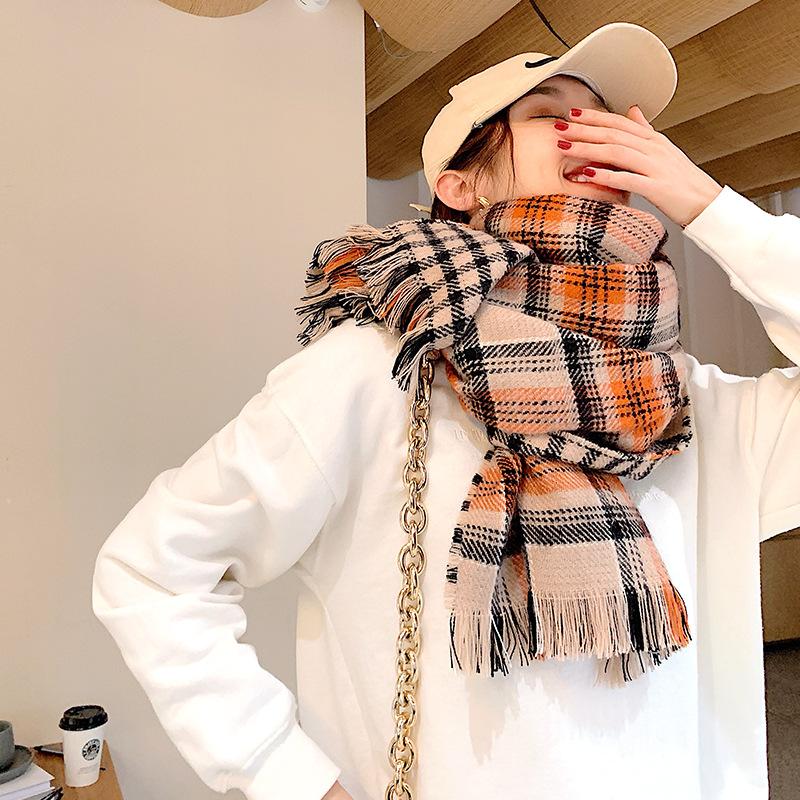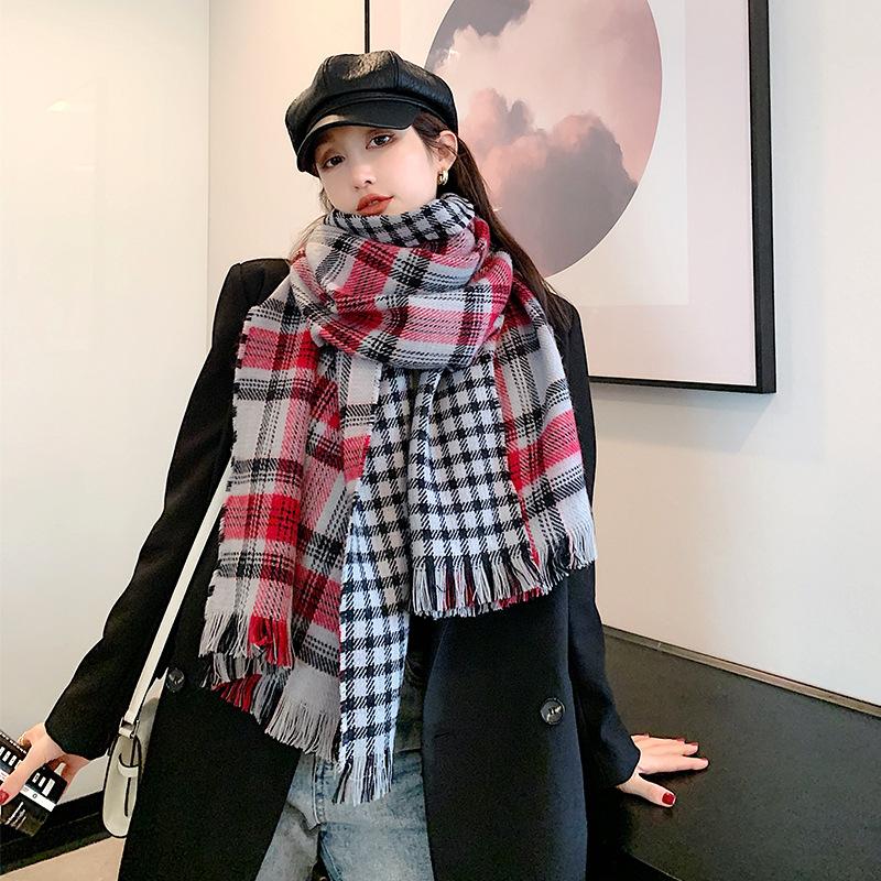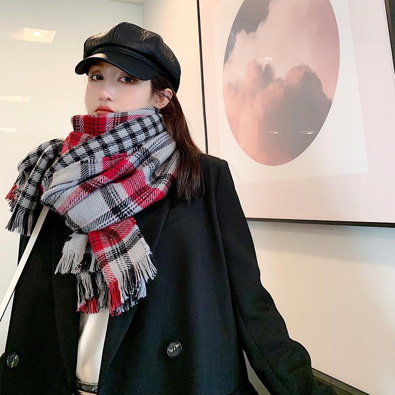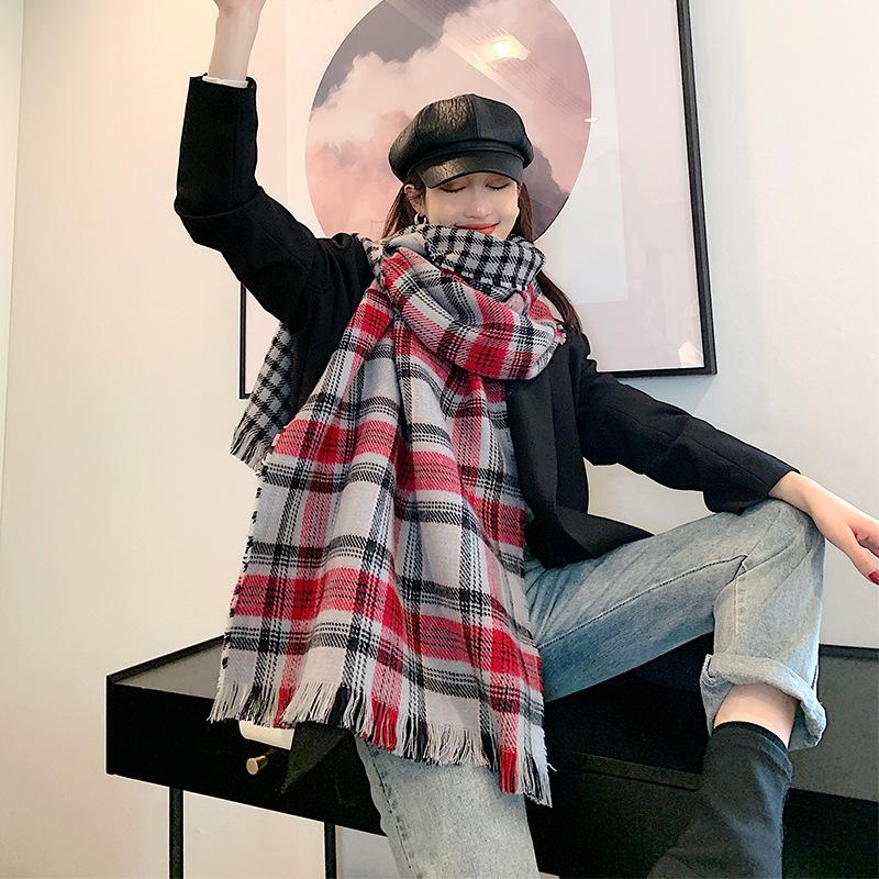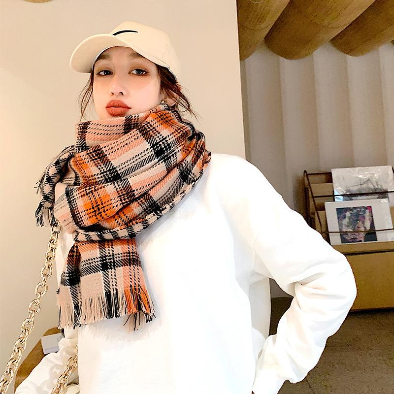 Bufanda a cuadros británica de estilo coreano para mujer, otoño e invierno de 2023, cálida y acolchada de doble cara, chal para estudiantes