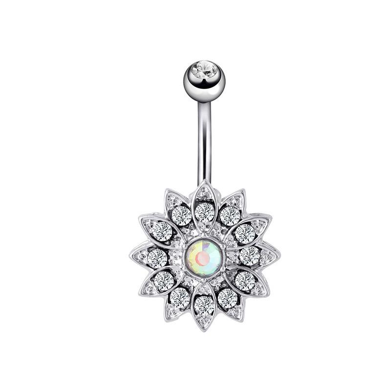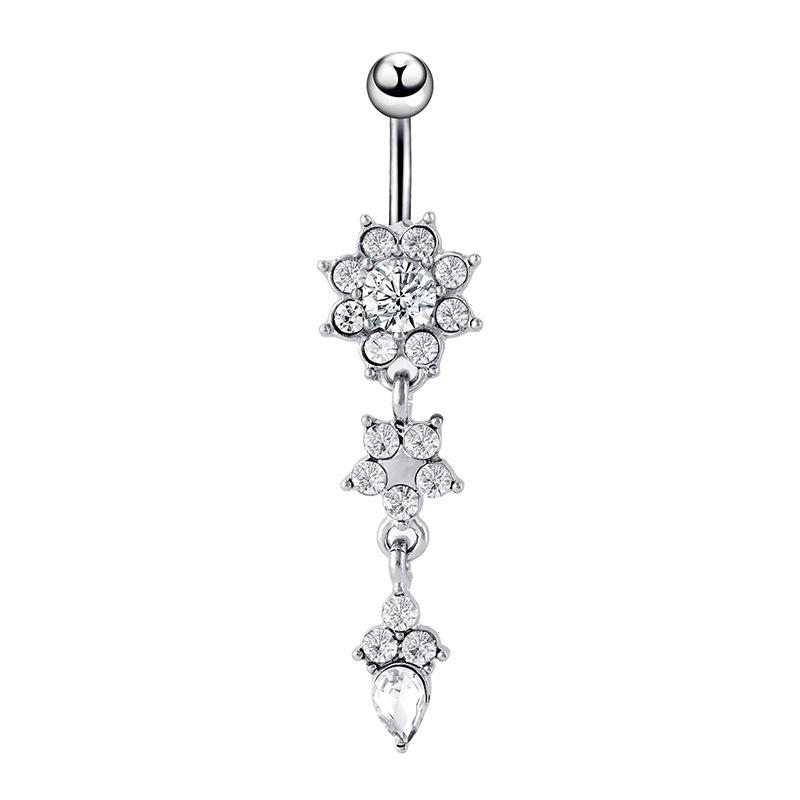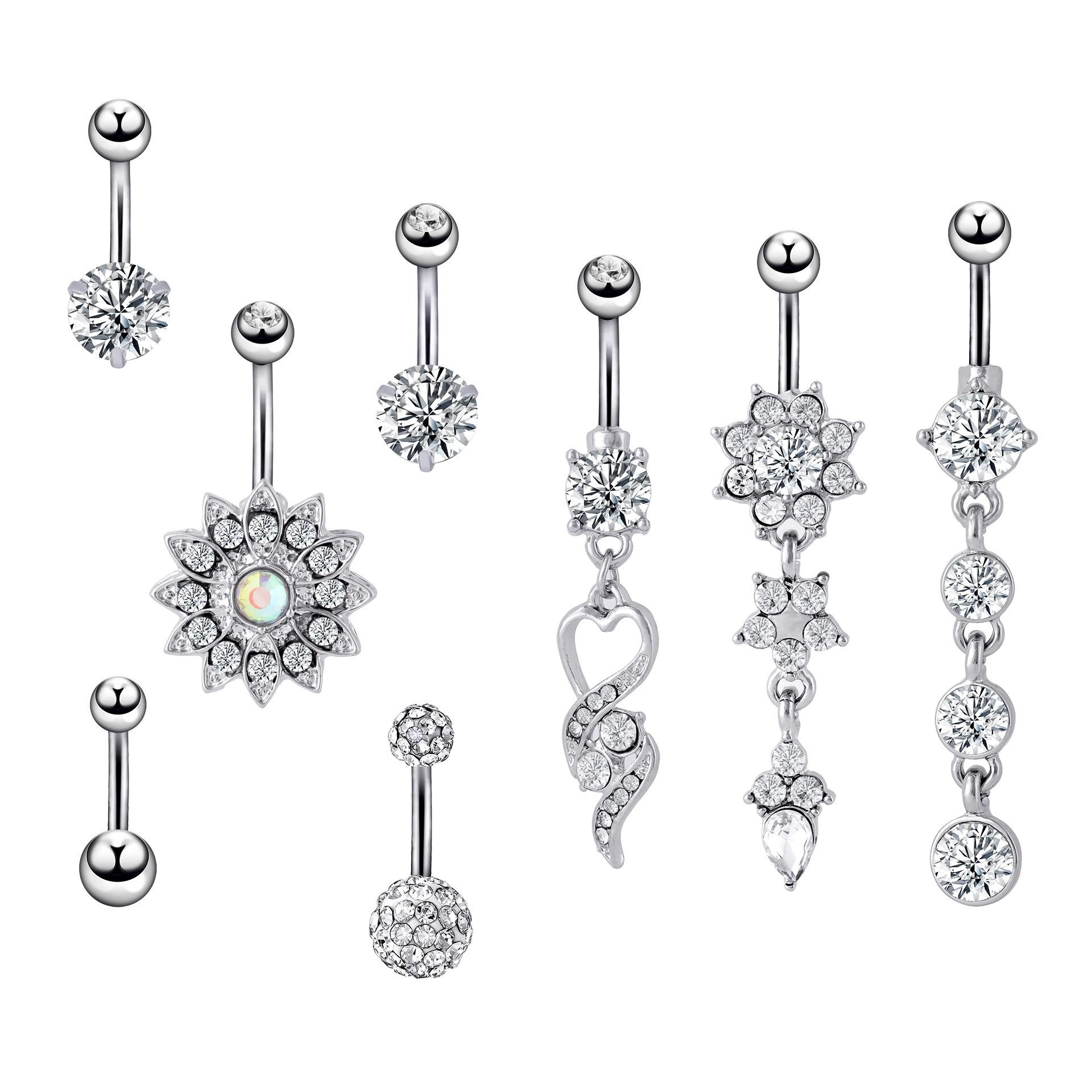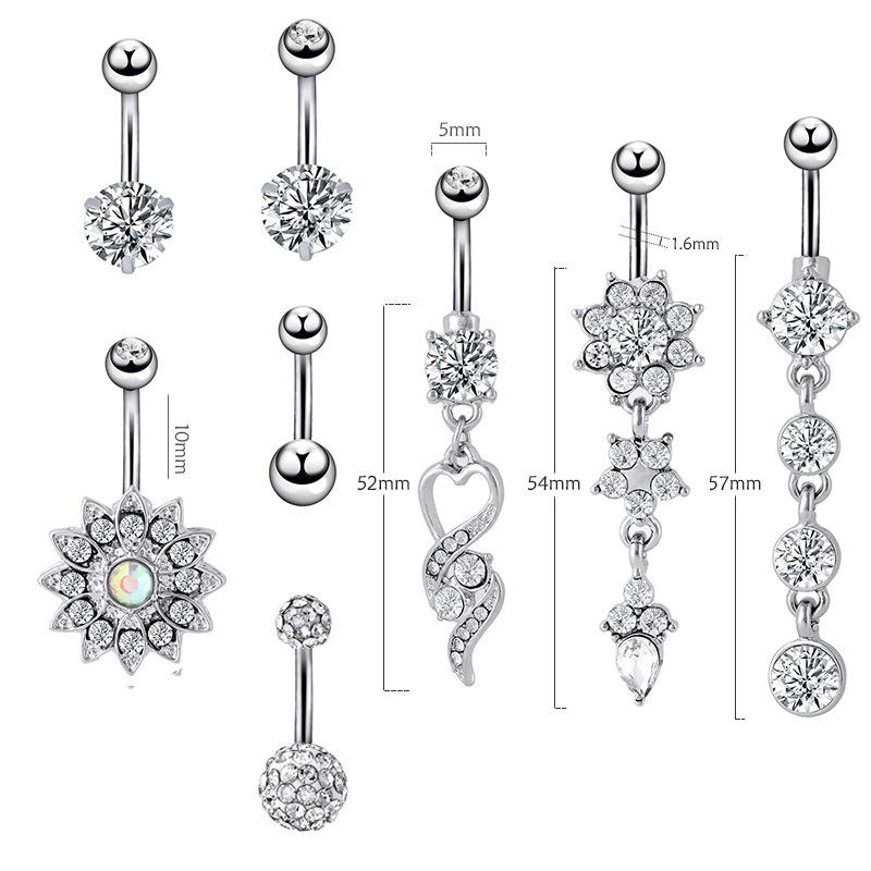 Anillos para el Ombligo Europeos y Americanos de Acero Inoxidable con Incrustaciones de Diamantes, Aretes para el Ombligo, Joyería para Perforaciones Corporales, Accesorios para Mujeres con un Toque de Alta Gama