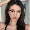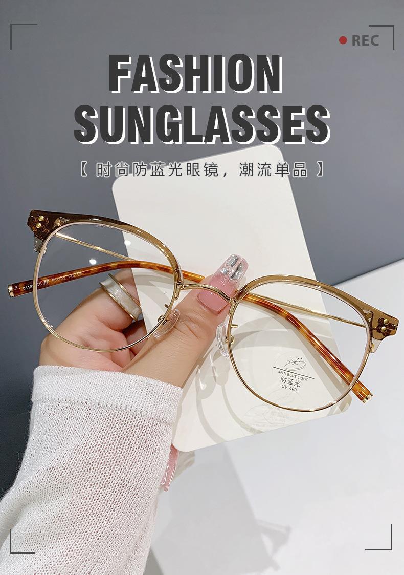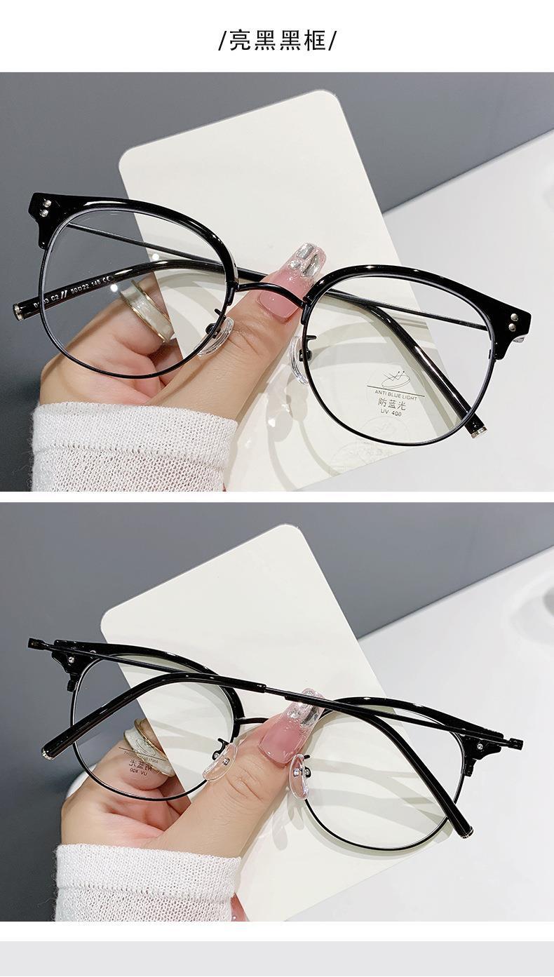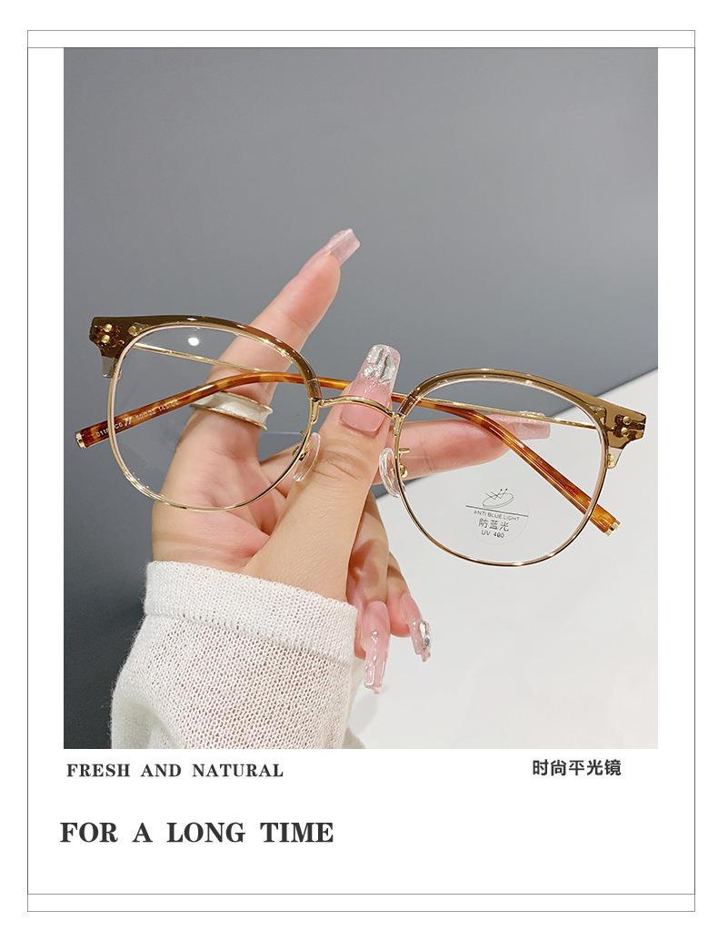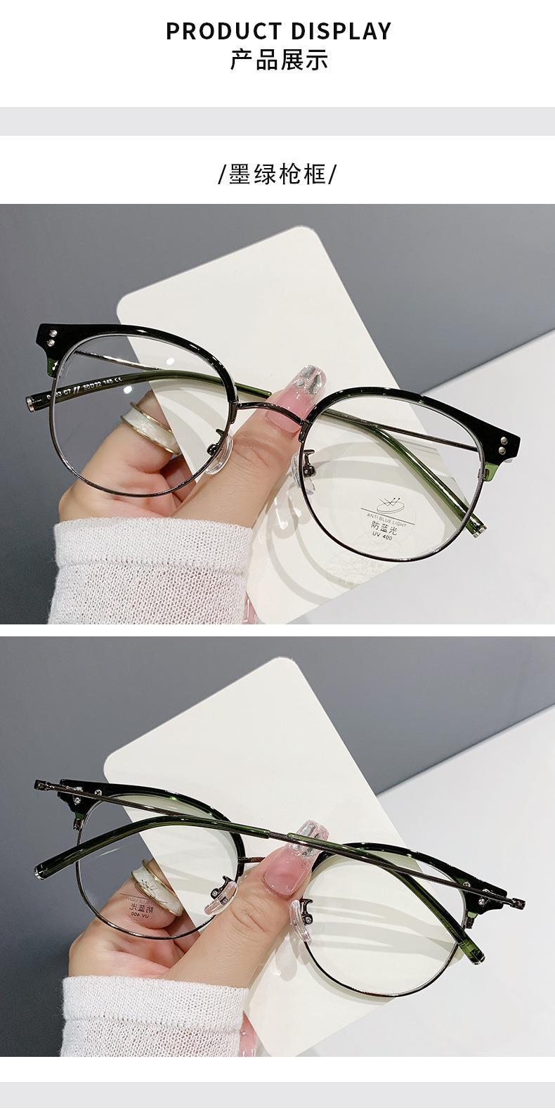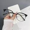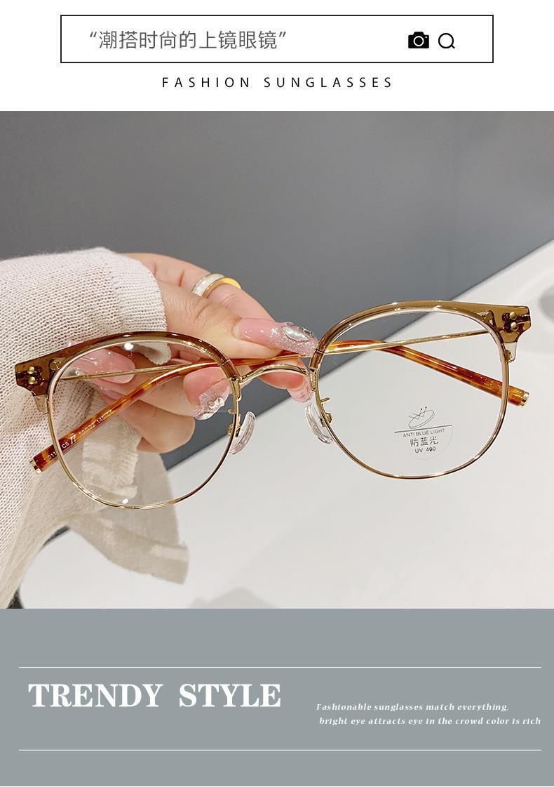 Gafas lisas de media montura con orejas de gato y luz anti-azul, libro rojo pequeño TR90 marrón frío retro, montura ovalada para mujer