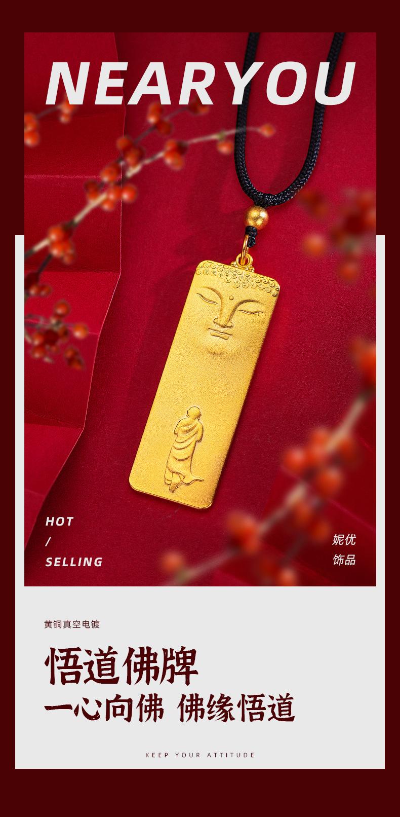 Colgante vietnamita de oro arena Un Corazón hacia Buda para hombre, estilo étnico, zen, amuleto de Buda de la Iluminación chapado en oro antiguo