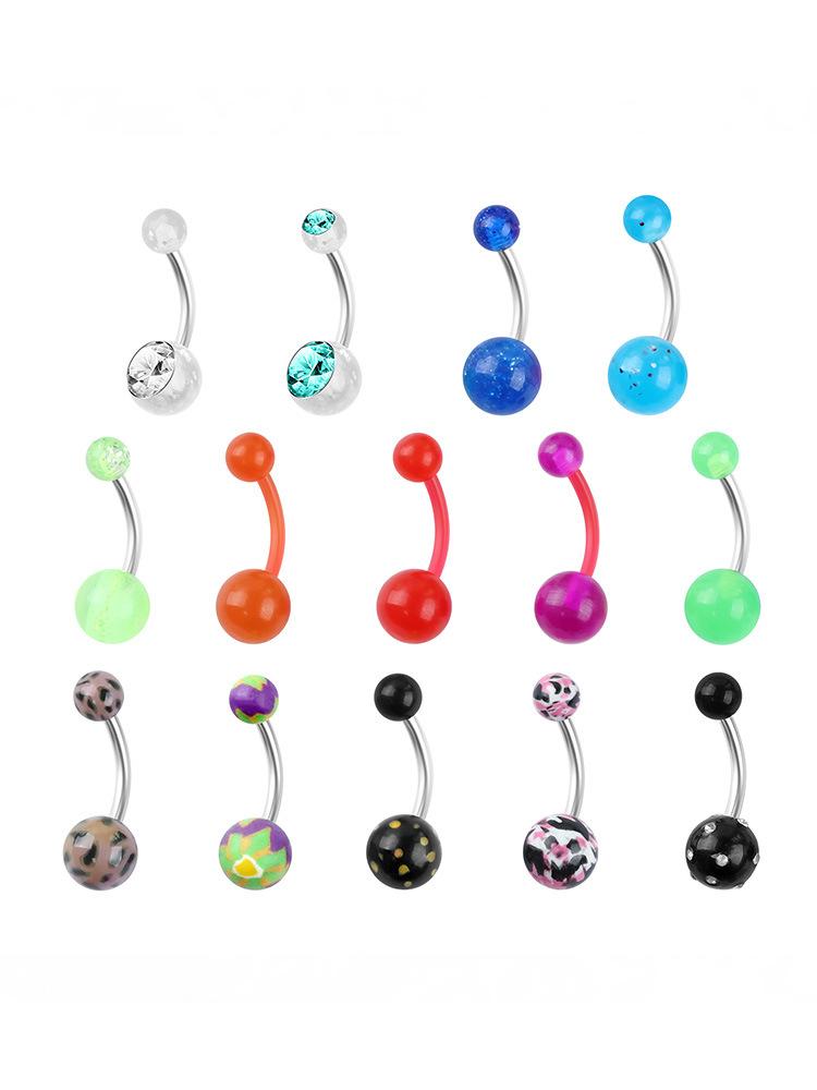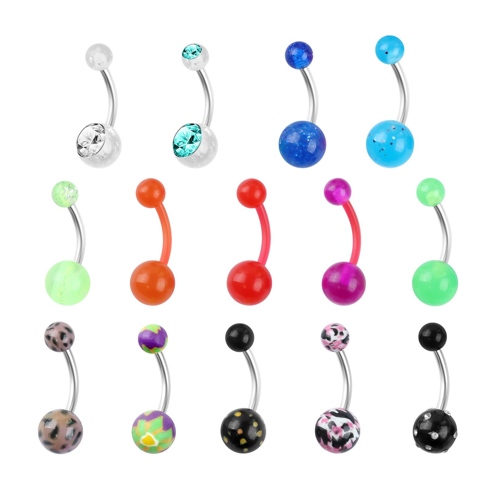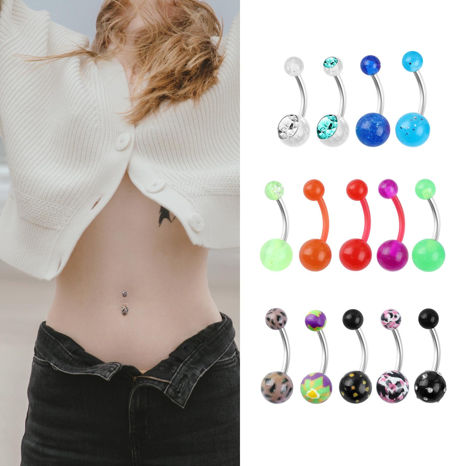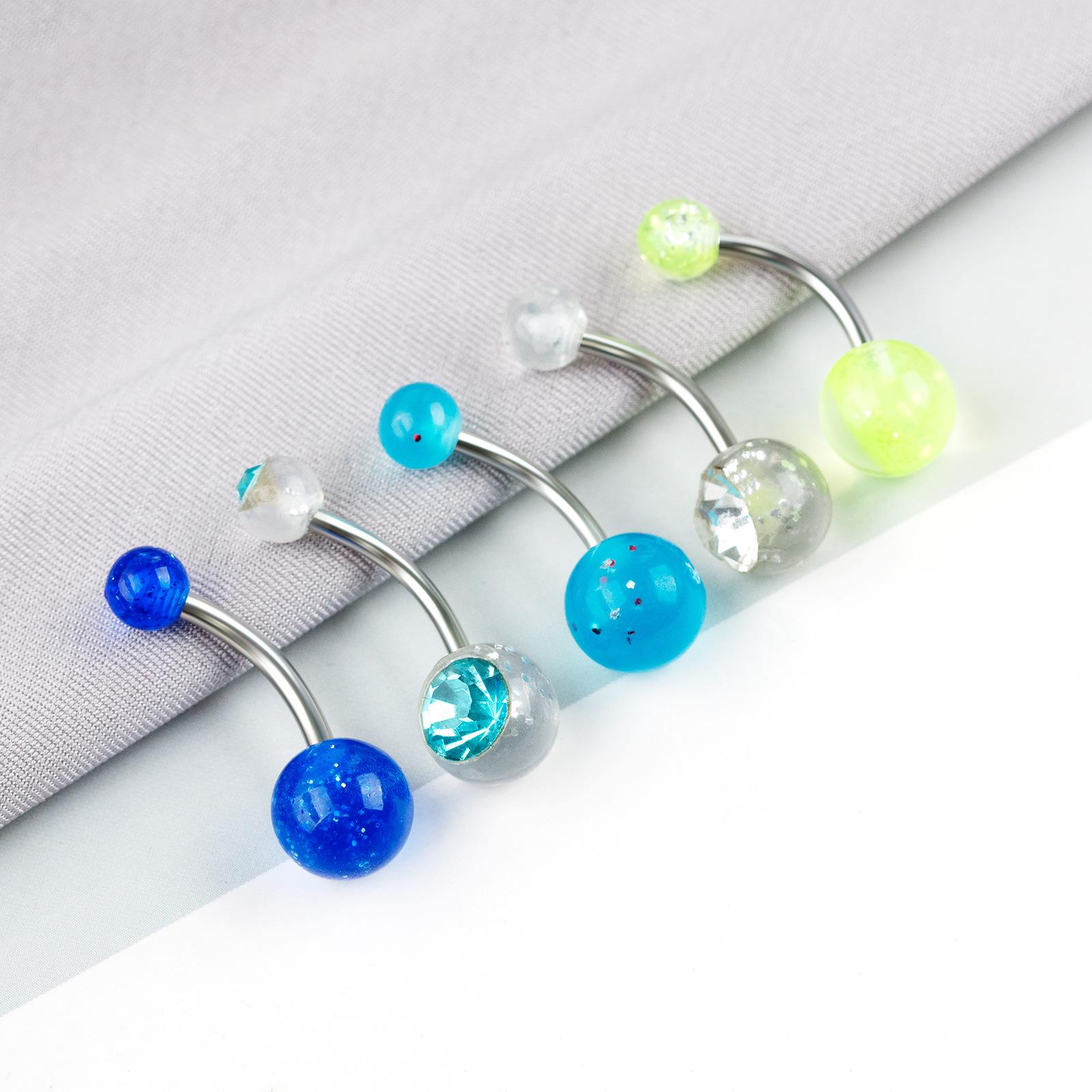 Piercing para ombligo acrílico con incrustaciones de diamantes de acero inoxidable, disponible en Amazon y AliExpress.