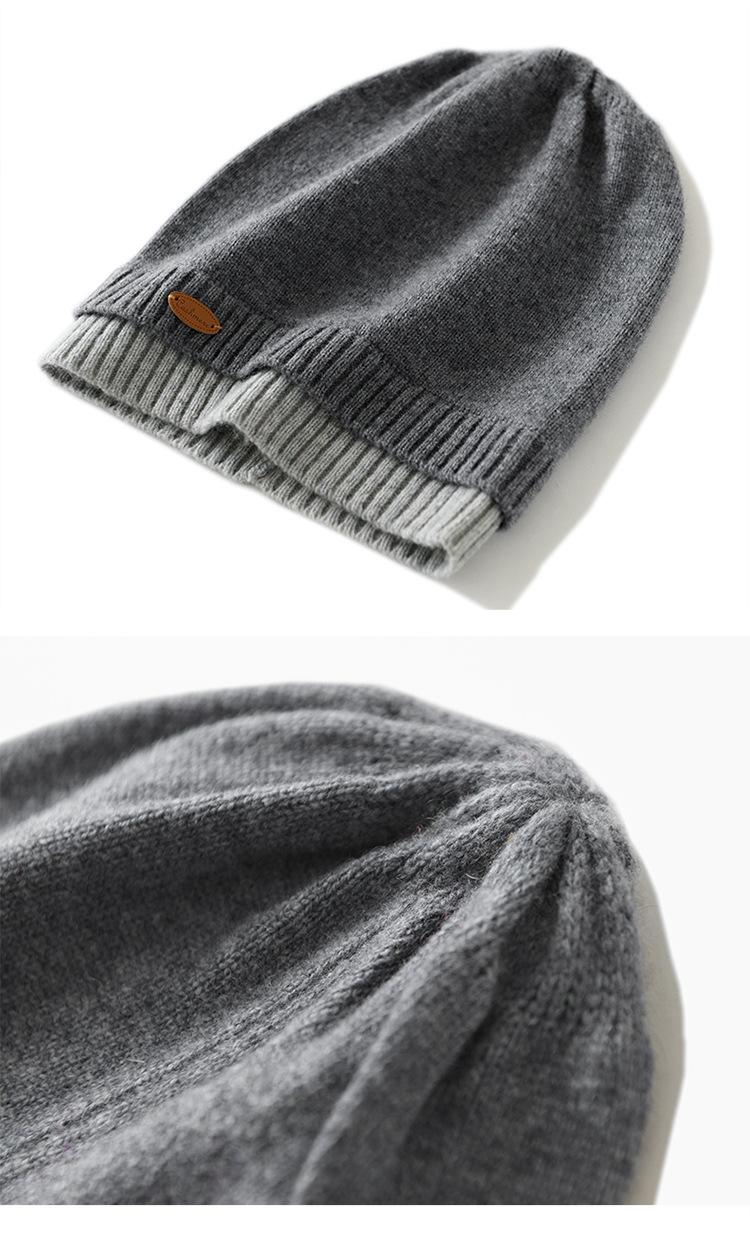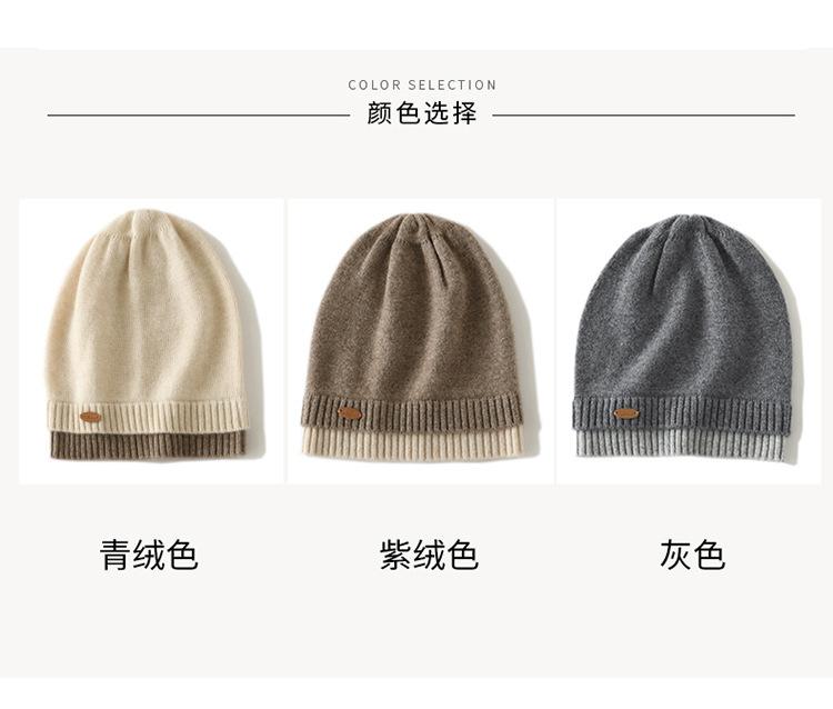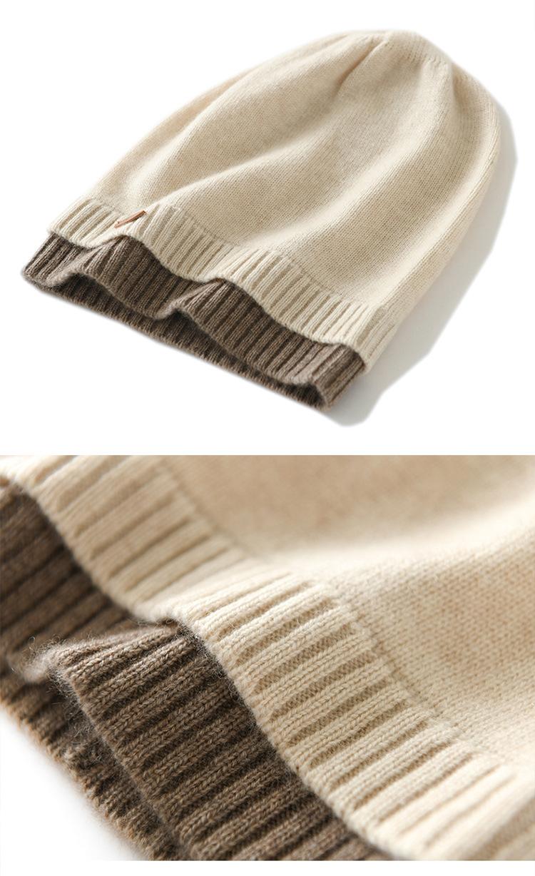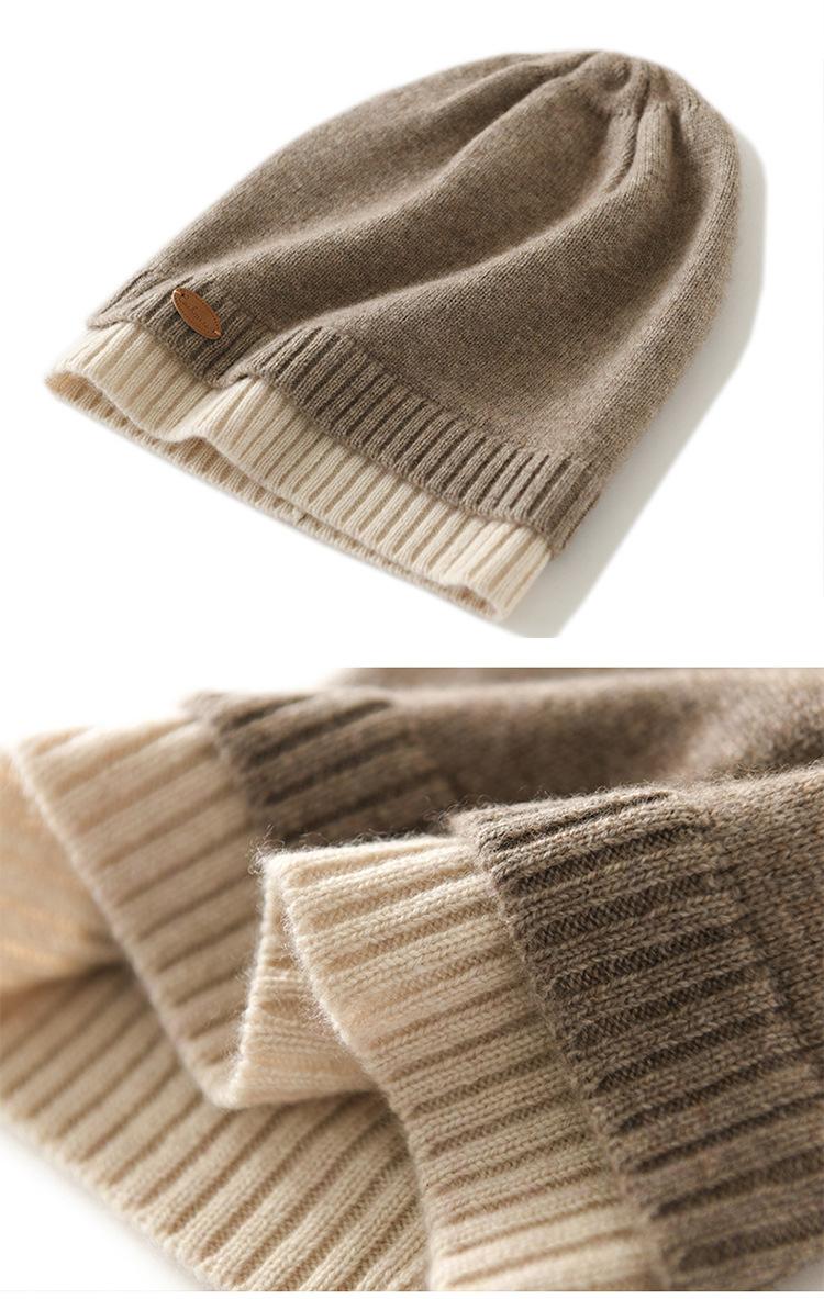 Gorro de cachemira con costuras a juego, gorro de punto grueso de invierno para mujer, gorro de lana con pelo de cachemira, gorro con puntera cálido