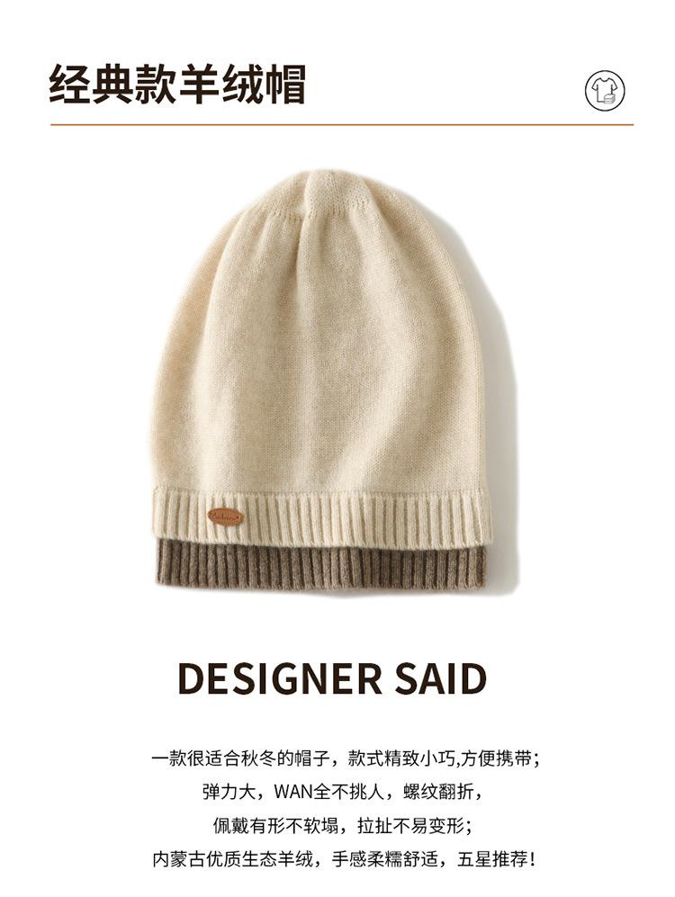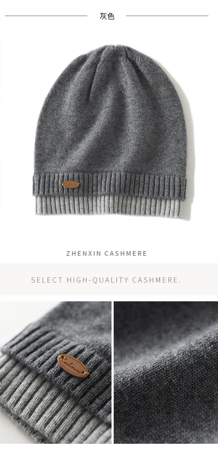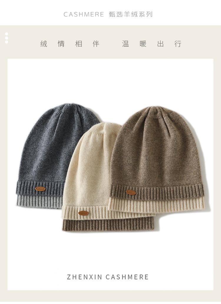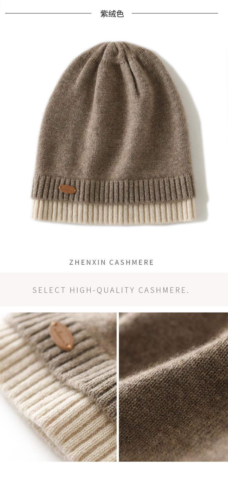 Gorro de cachemira con costuras a juego, gorro de punto grueso de invierno para mujer, gorro de lana con pelo de cachemira, gorro con puntera cálido