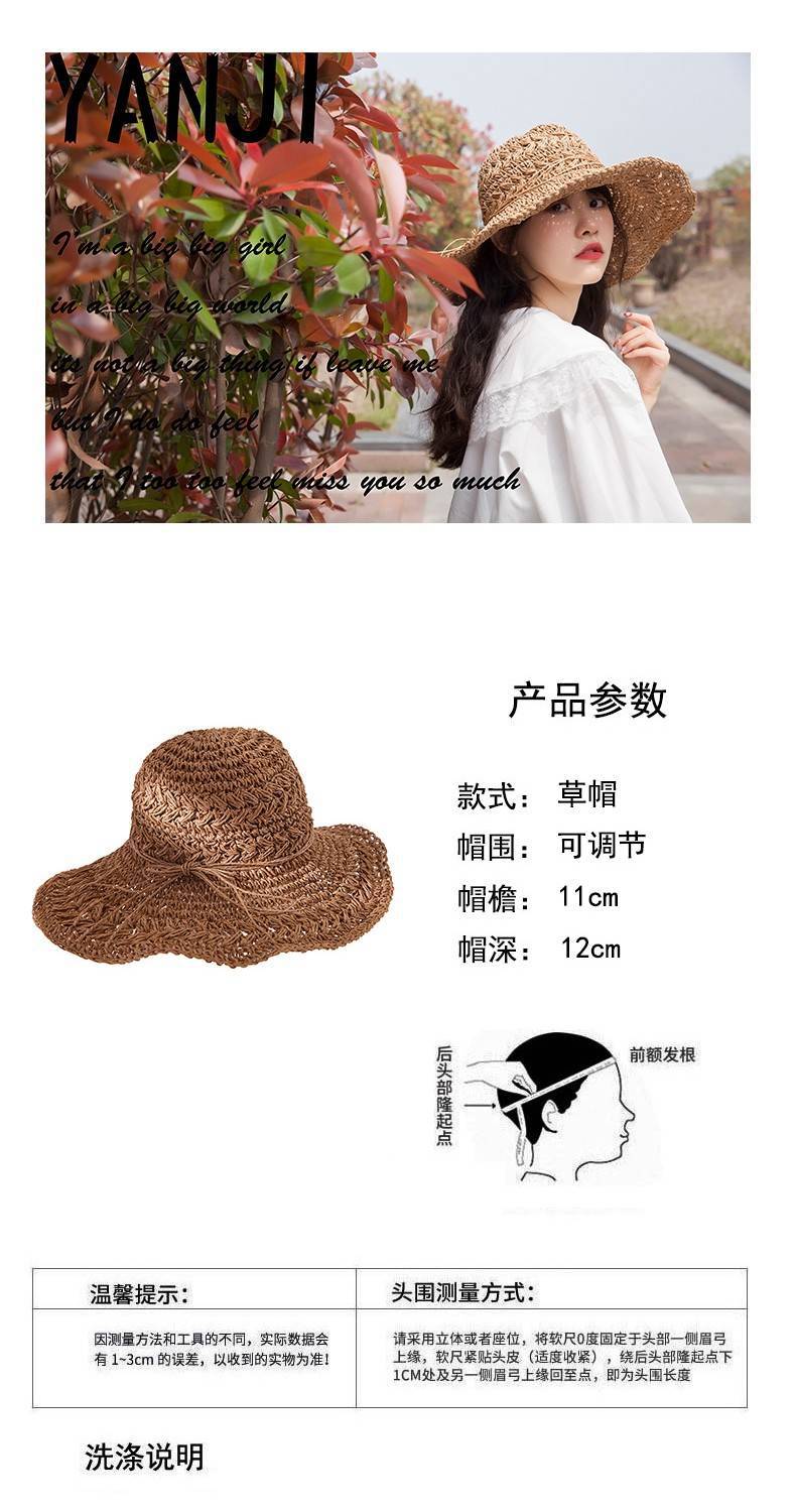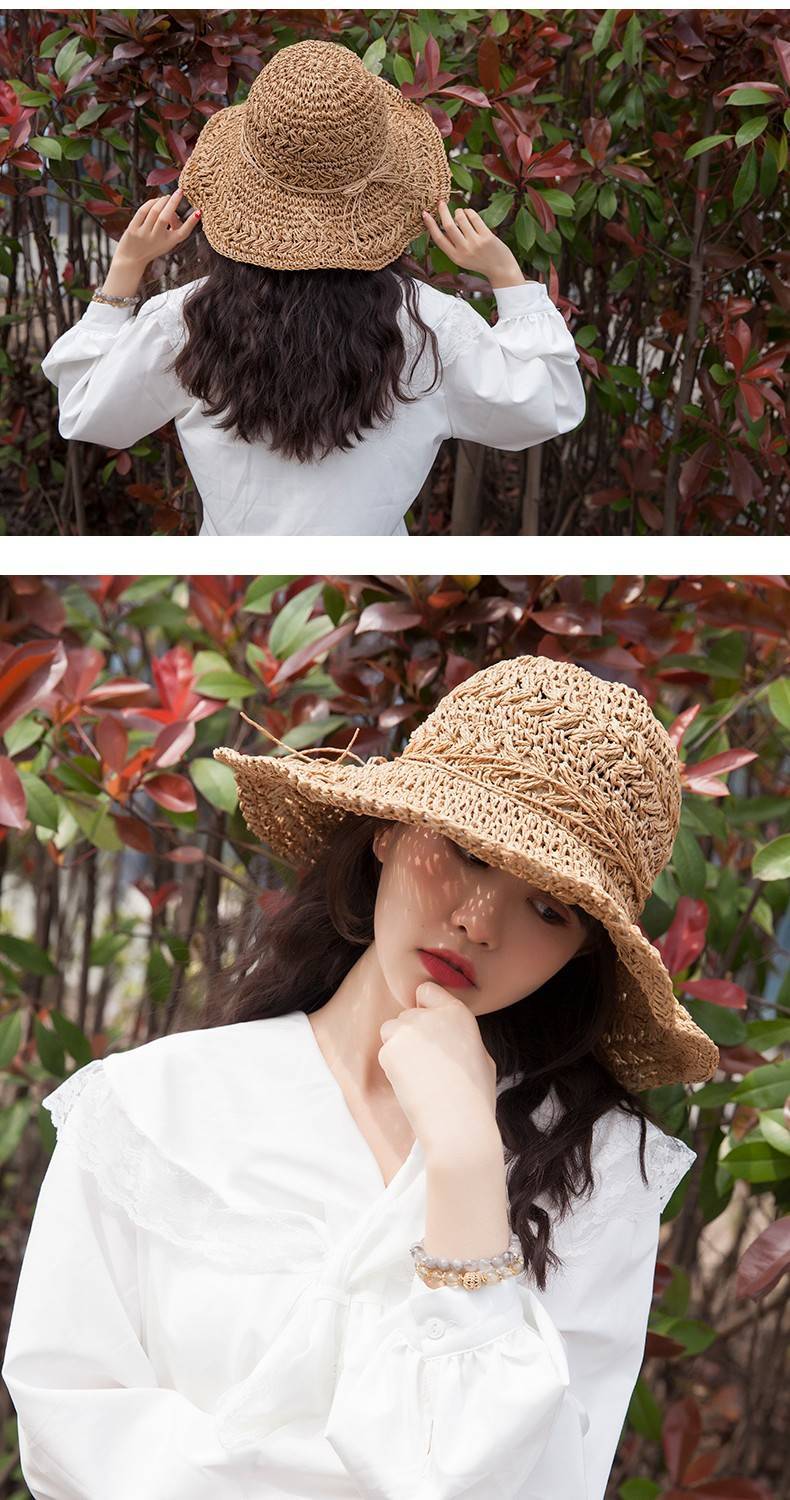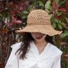 Sombrero de paja grande plegable hecho a mano de estilo coreano para mujer, sombrero de playa de verano con protección solar que combina con todo.