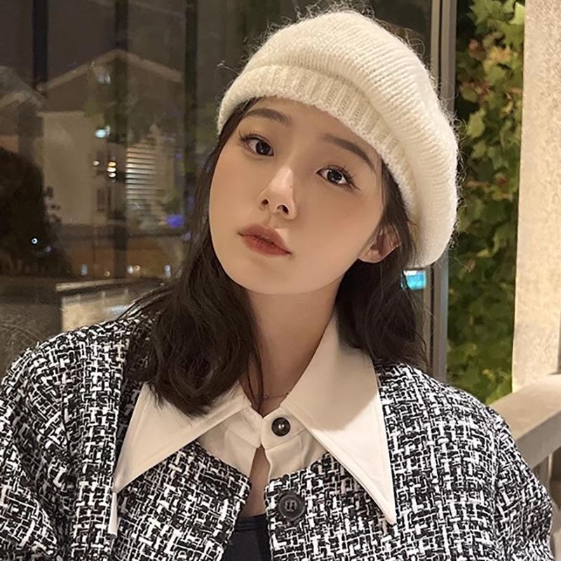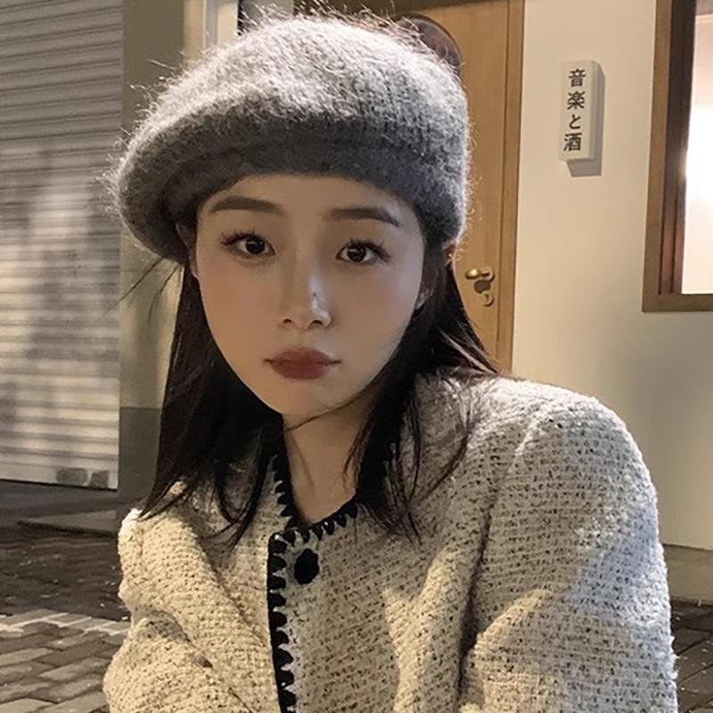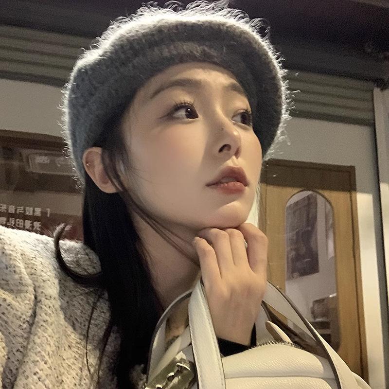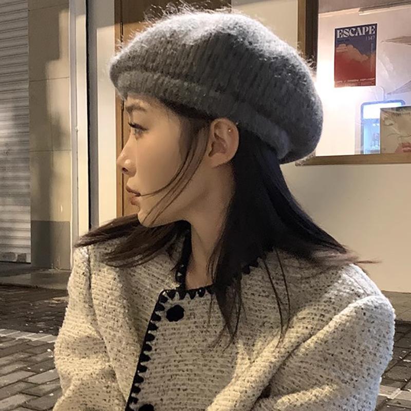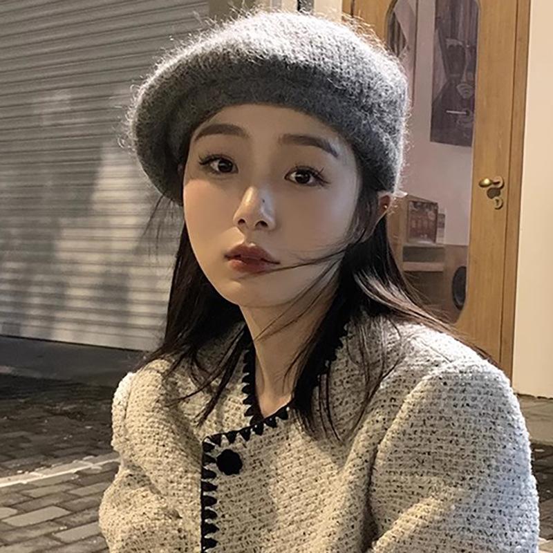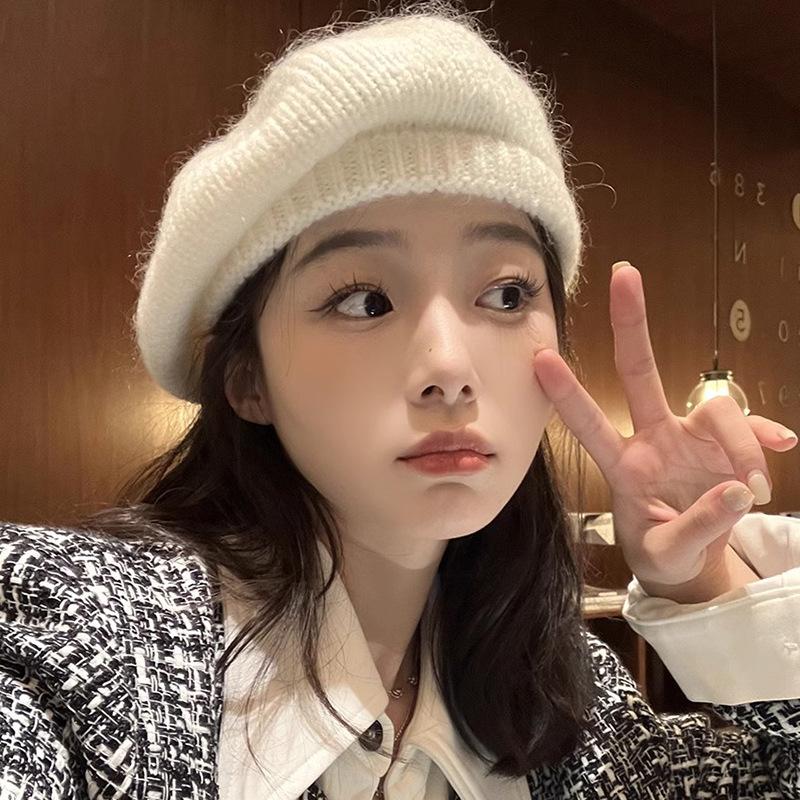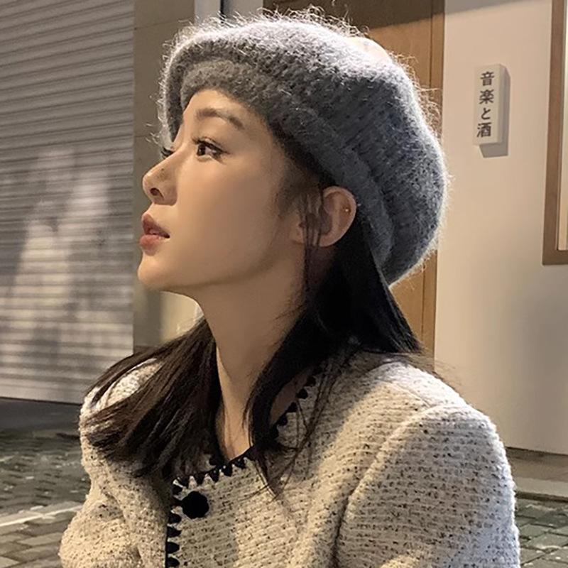 Gorro de punto de mohair suave, gorro de pintor de felpa para mujer, boina cálida y gruesa de invierno, gorro de lana con circunferencia de cabeza grande para mujer