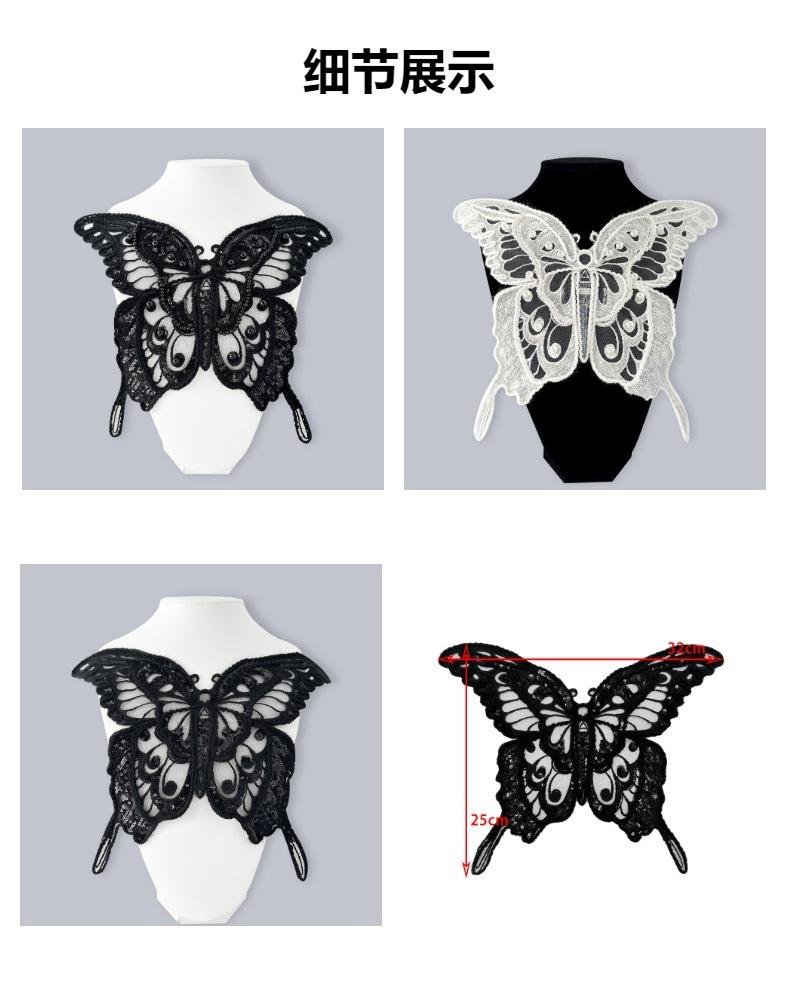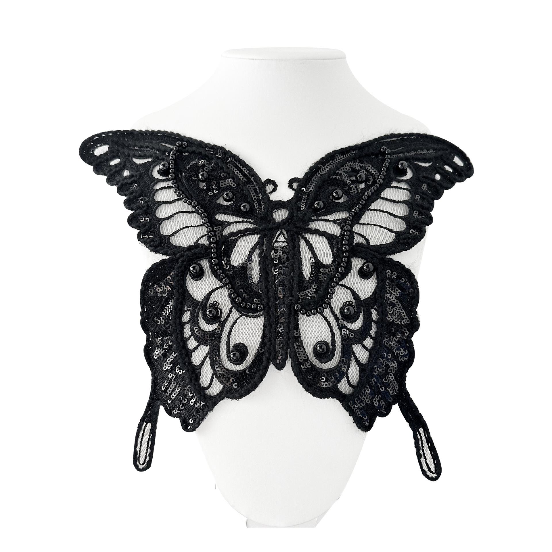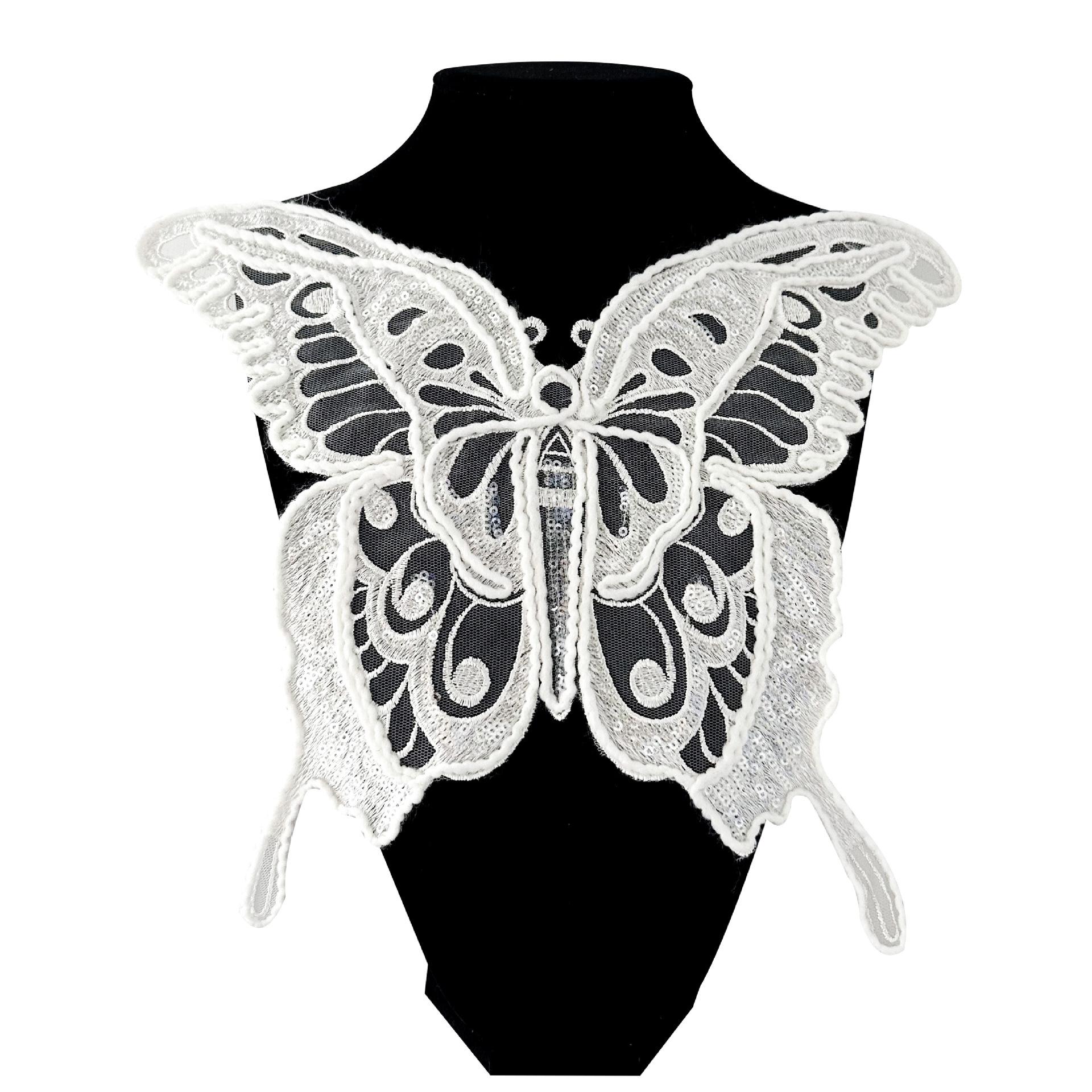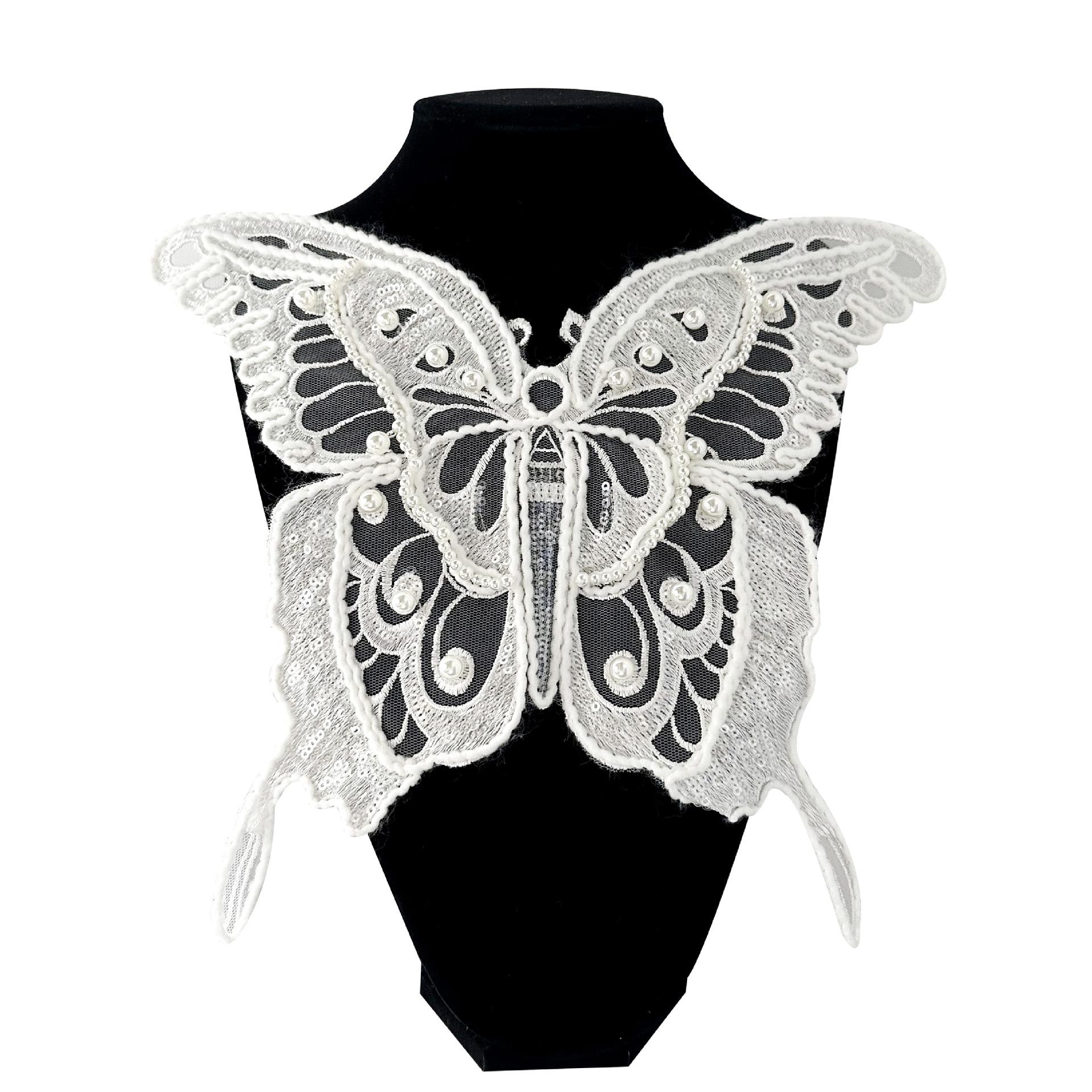 Parche de tela con mariposa de encaje bordado, bicolor, blanco y negro, para cuello, flor, accesorios de ropa, suministro de fábrica