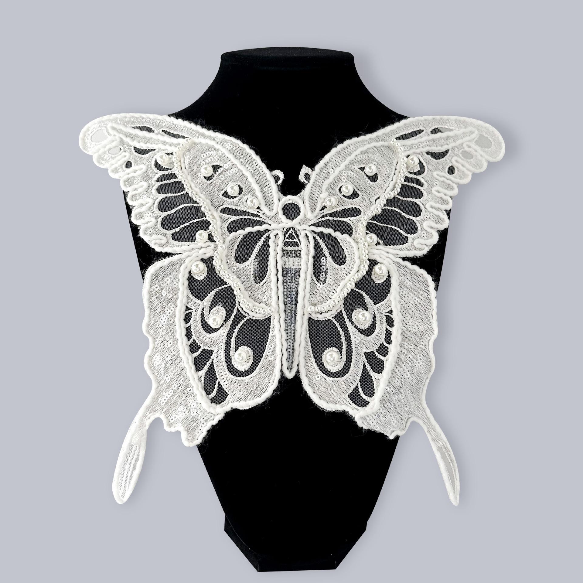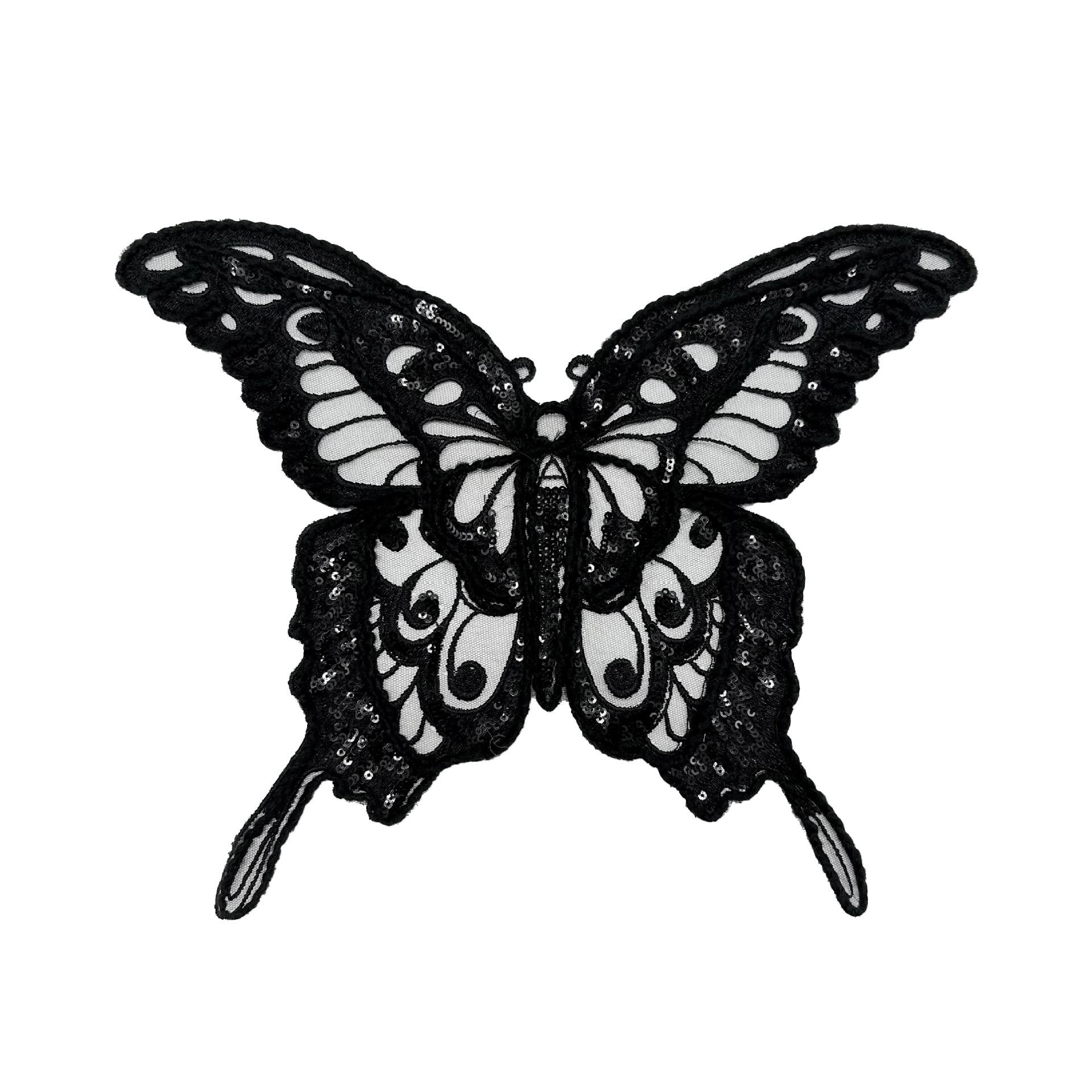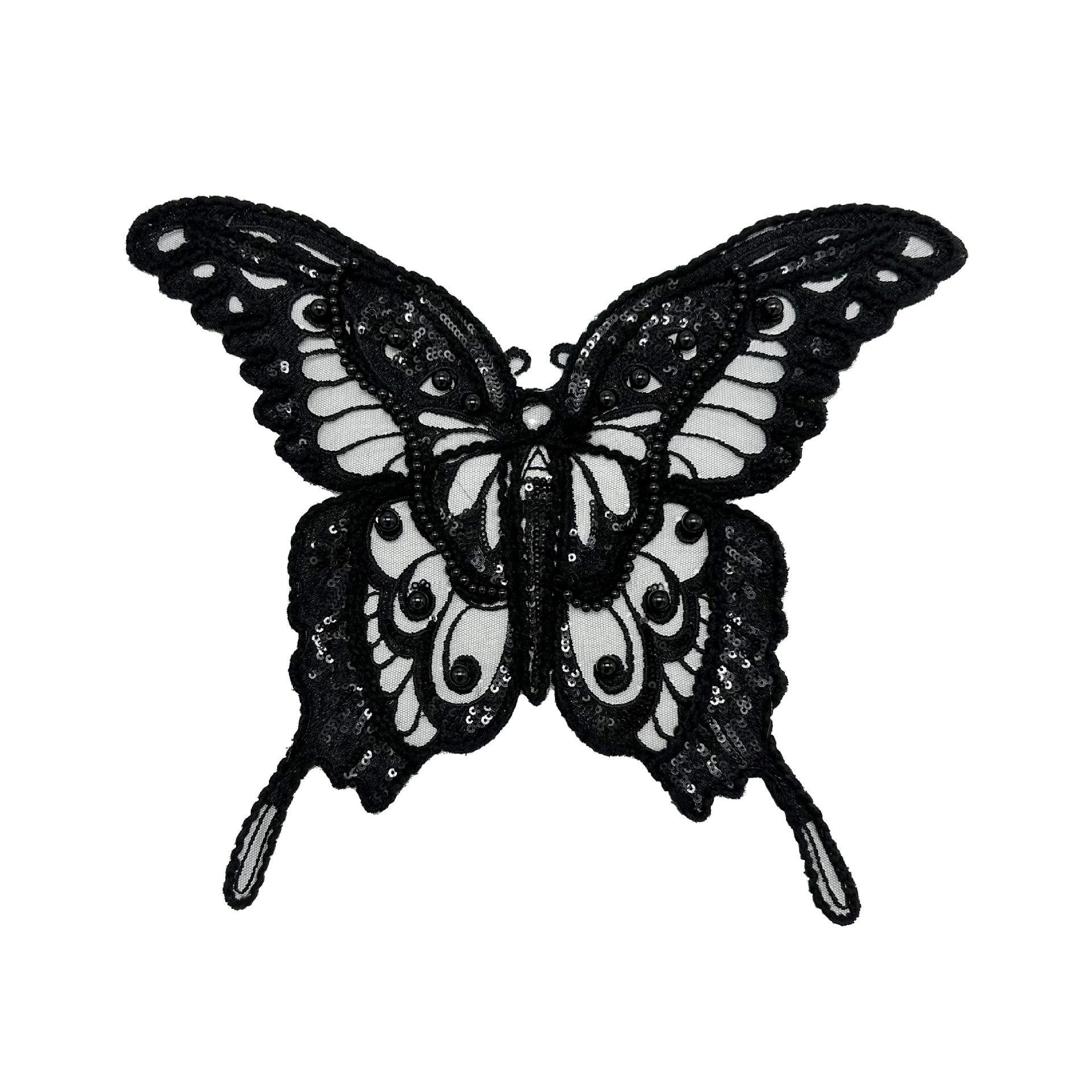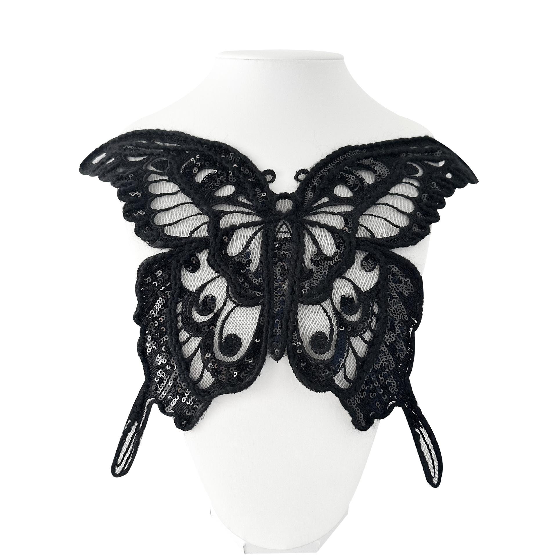Parche de tela con mariposa de encaje bordado, bicolor, blanco y negro, para cuello, flor, accesorios de ropa, suministro de fábrica